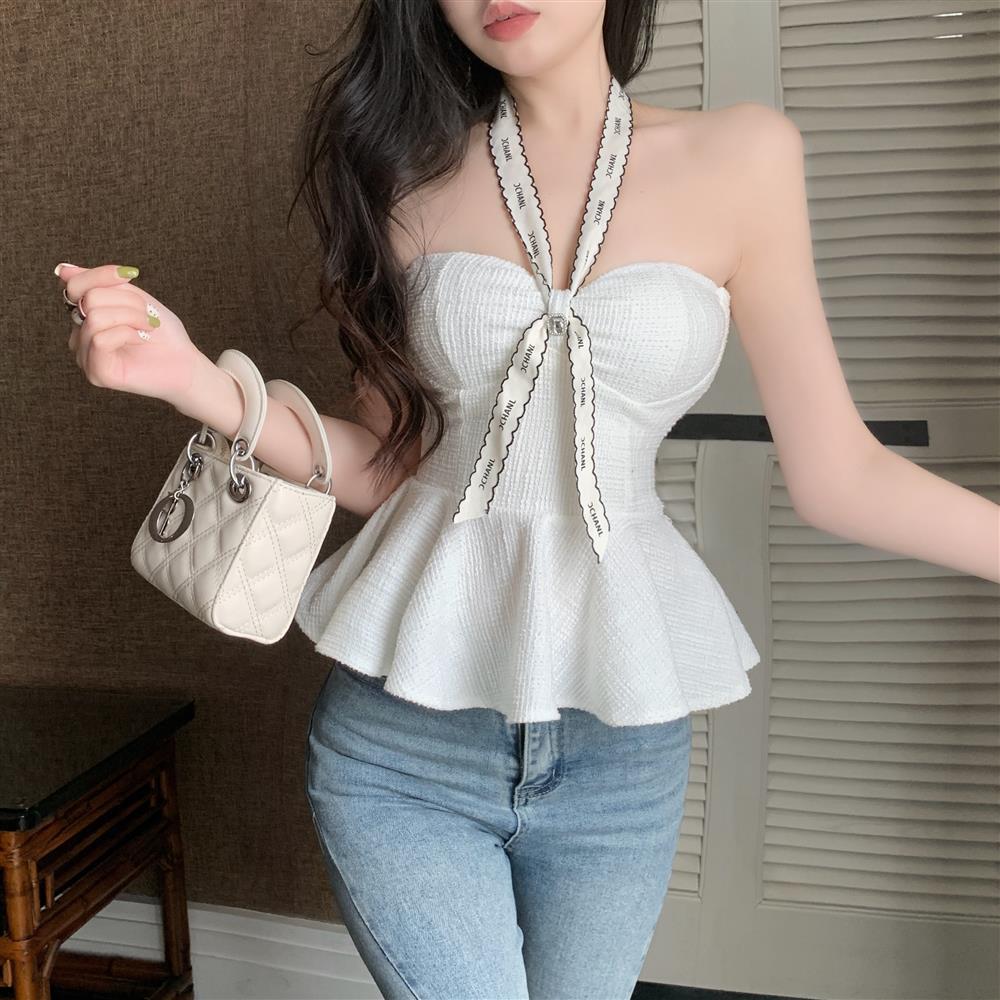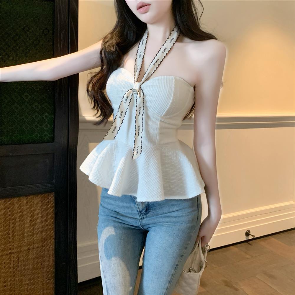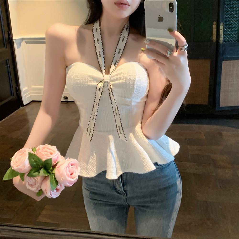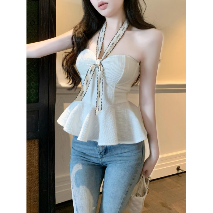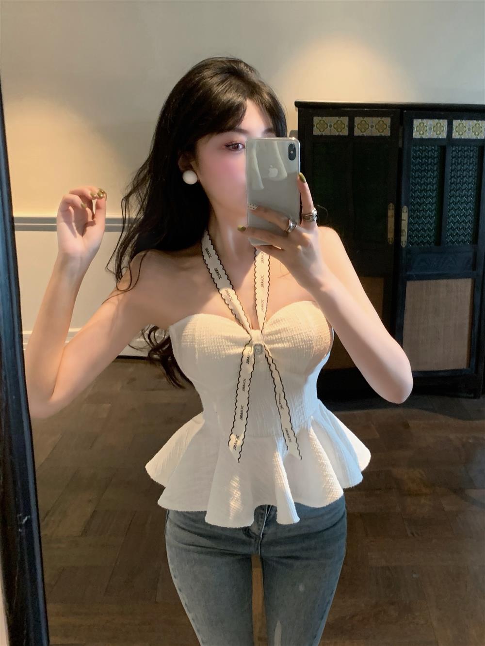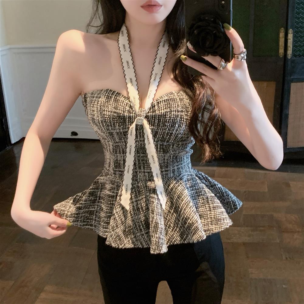 小香風掛脖吊帶背心女外穿夏季泰式純欲甜辣妹性感一字肩抹胸上衣