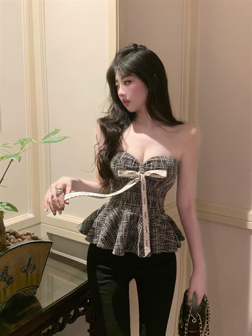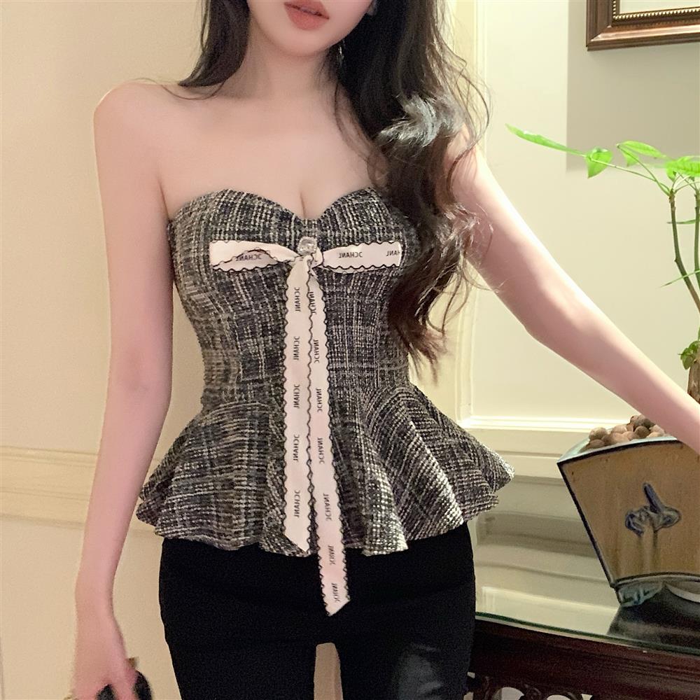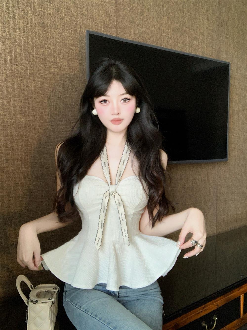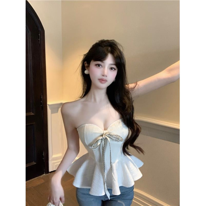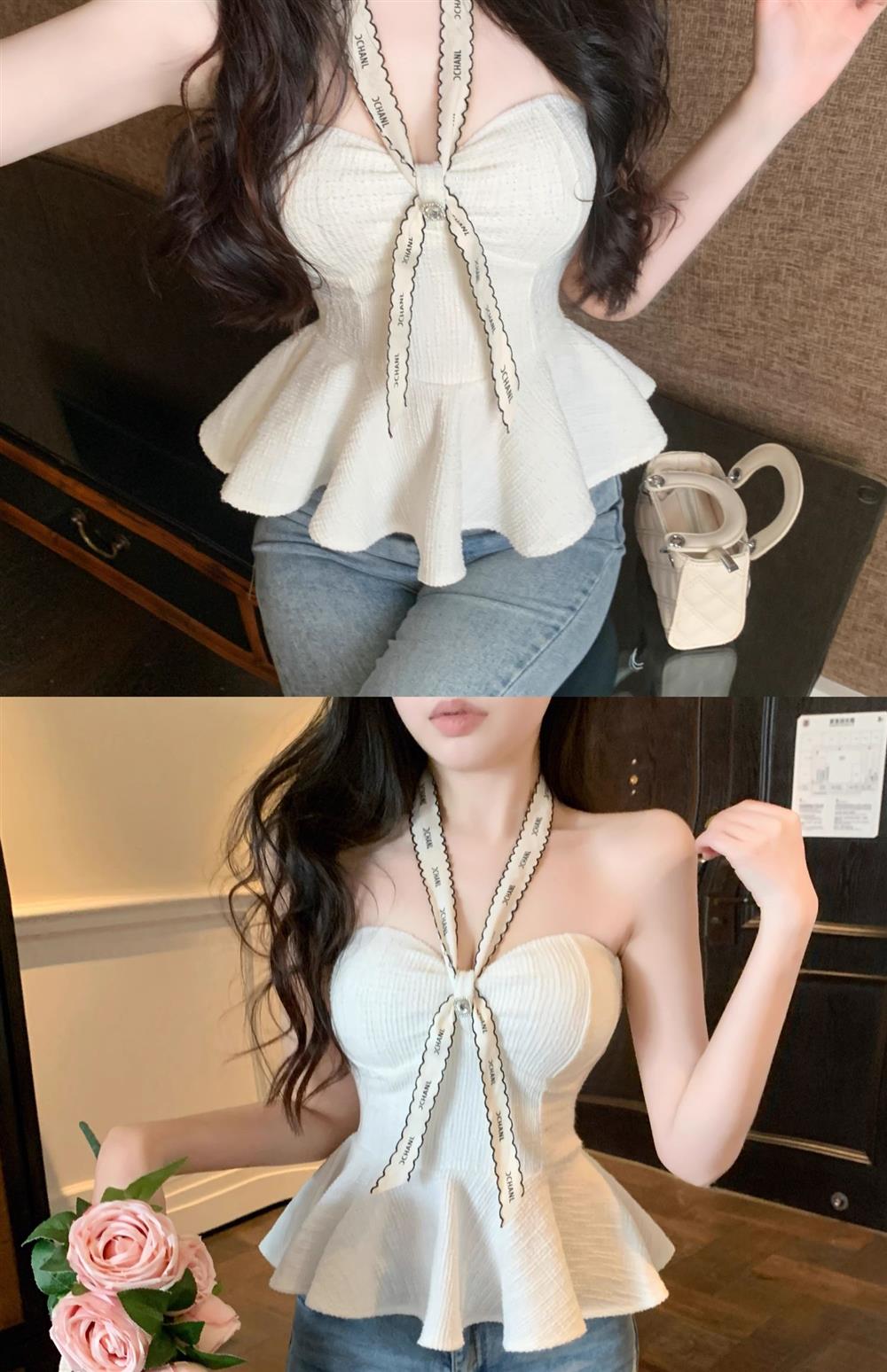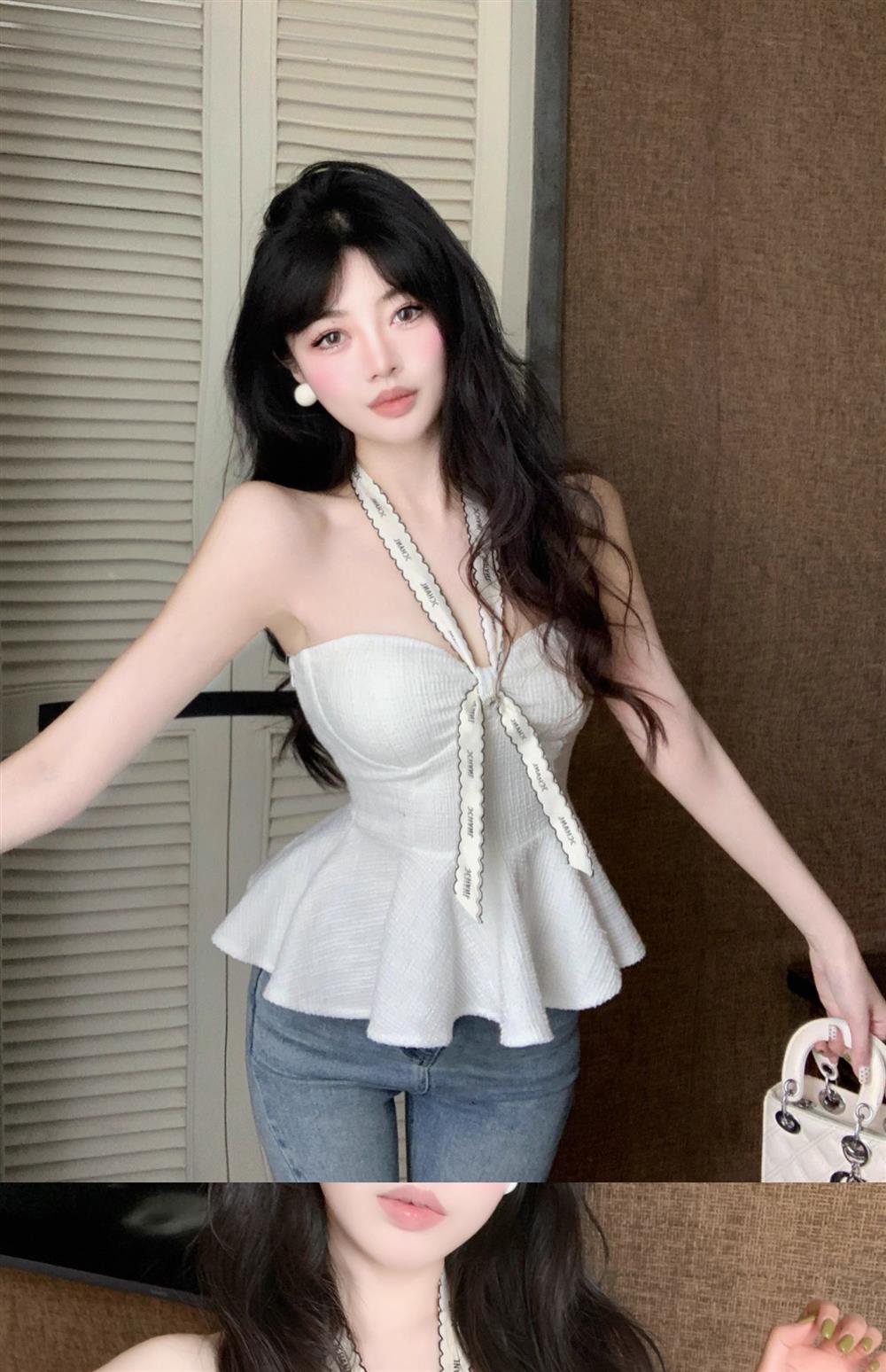 小香風掛脖吊帶背心女外穿夏季泰式純欲甜辣妹性感一字肩抹胸上衣