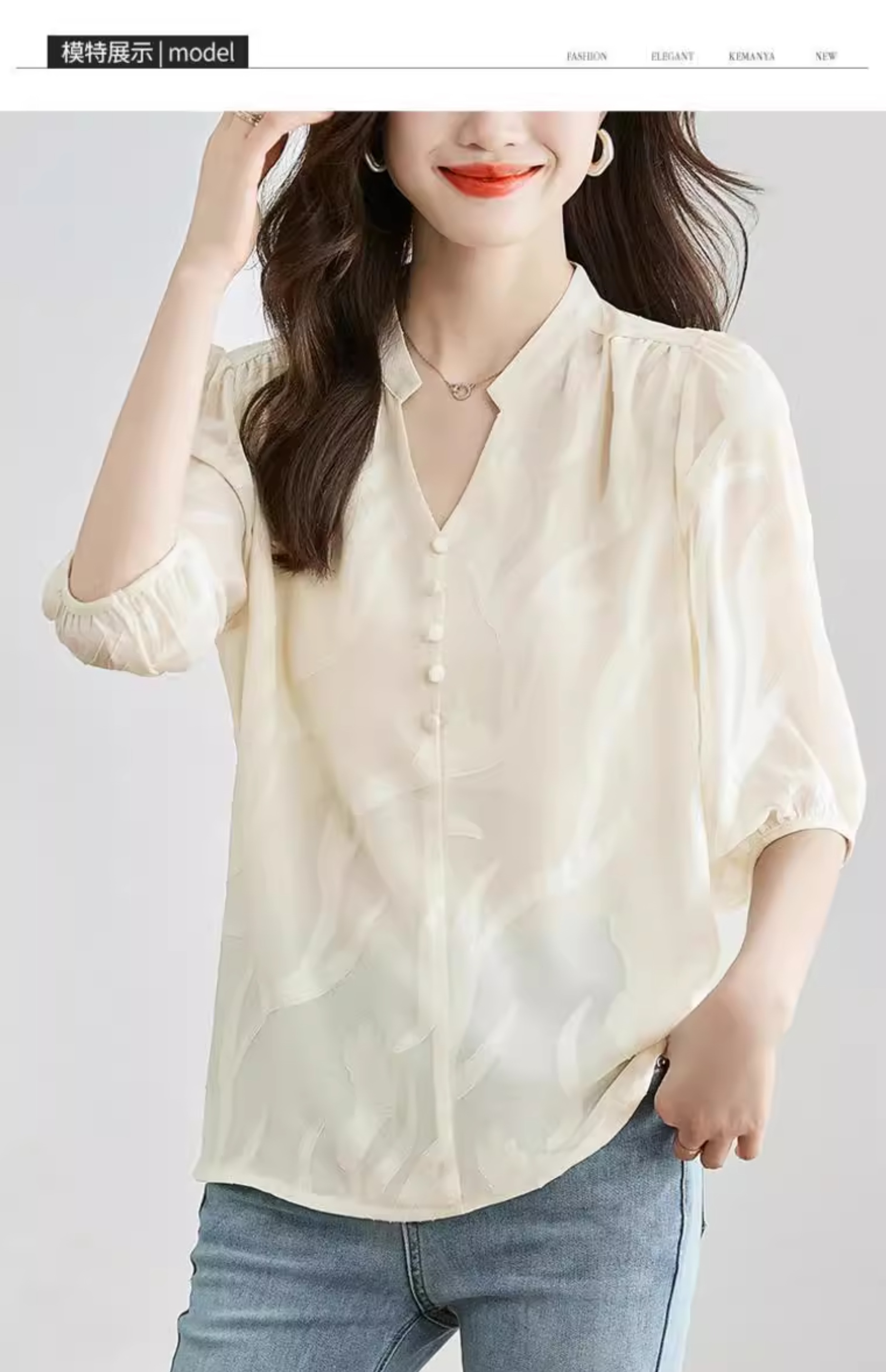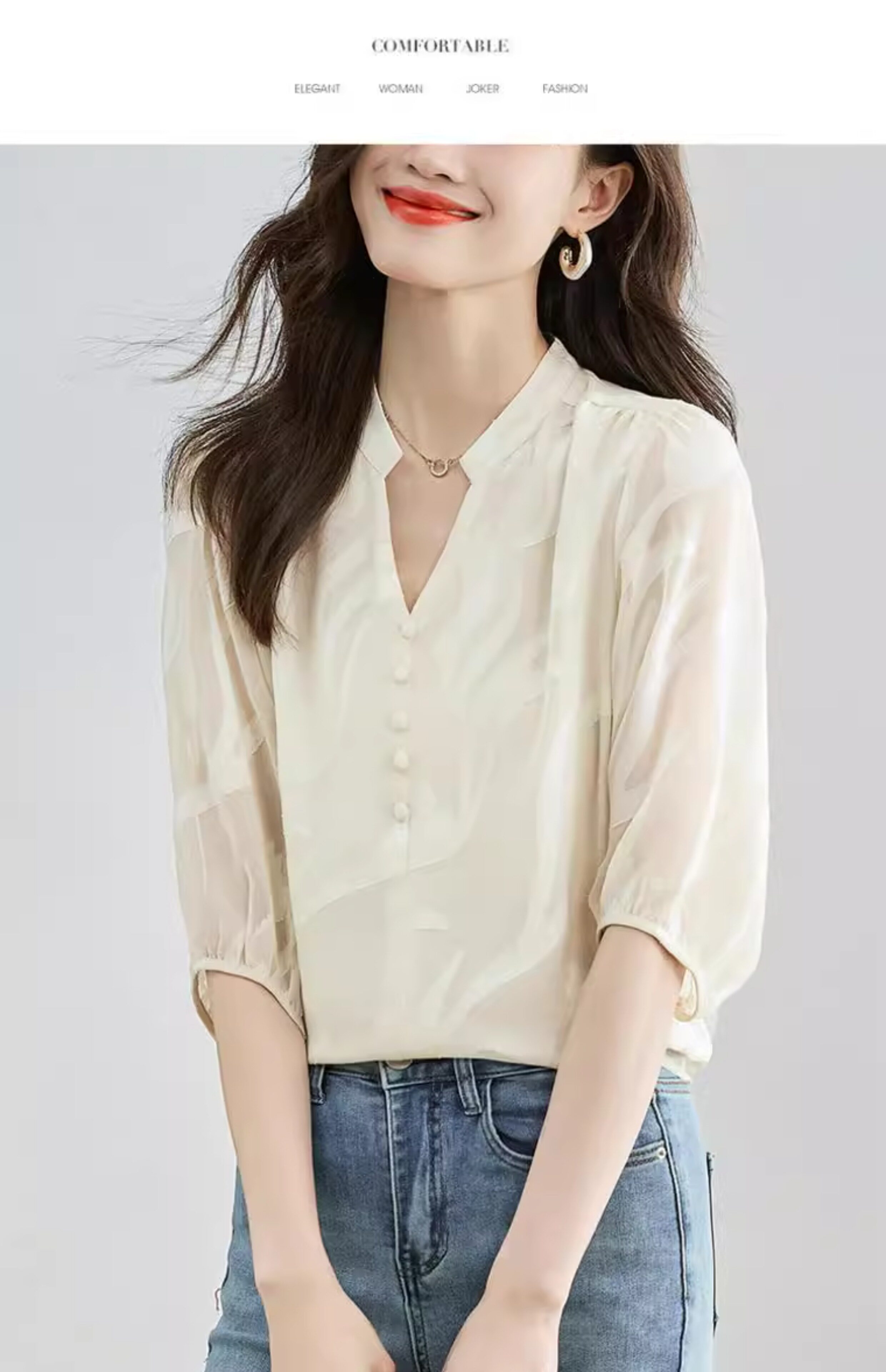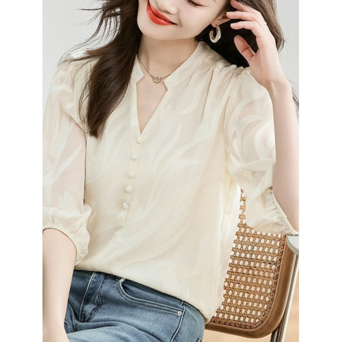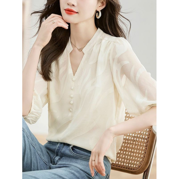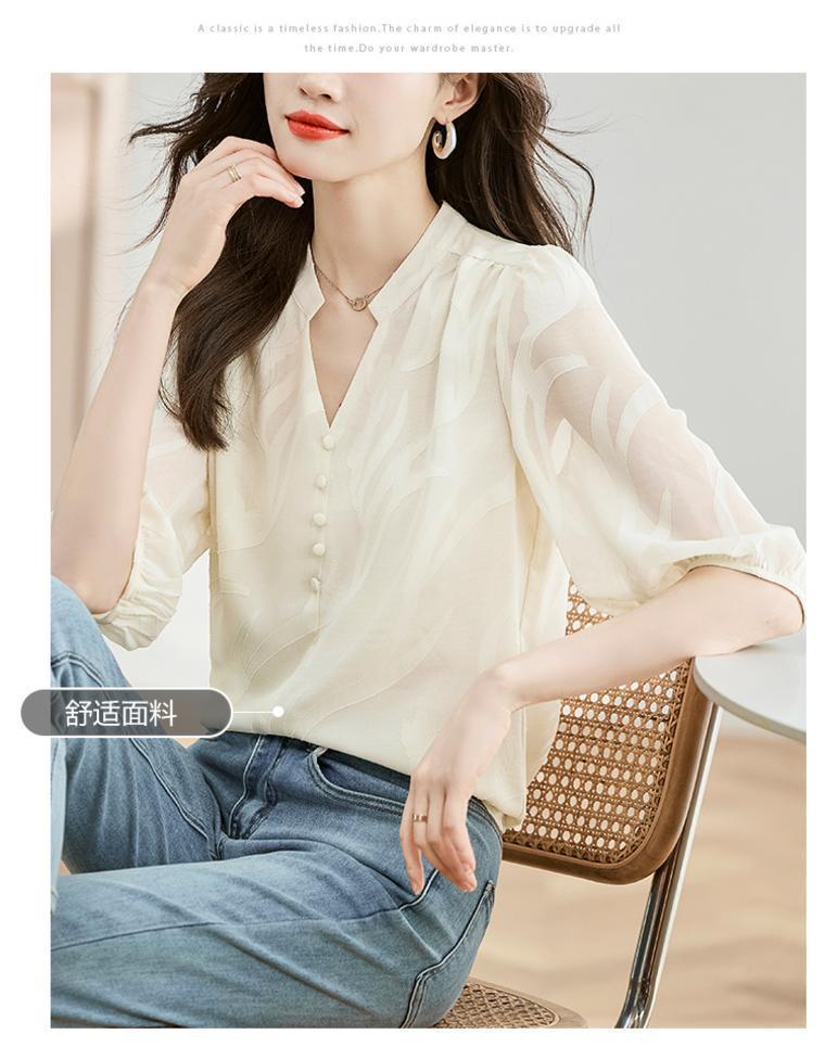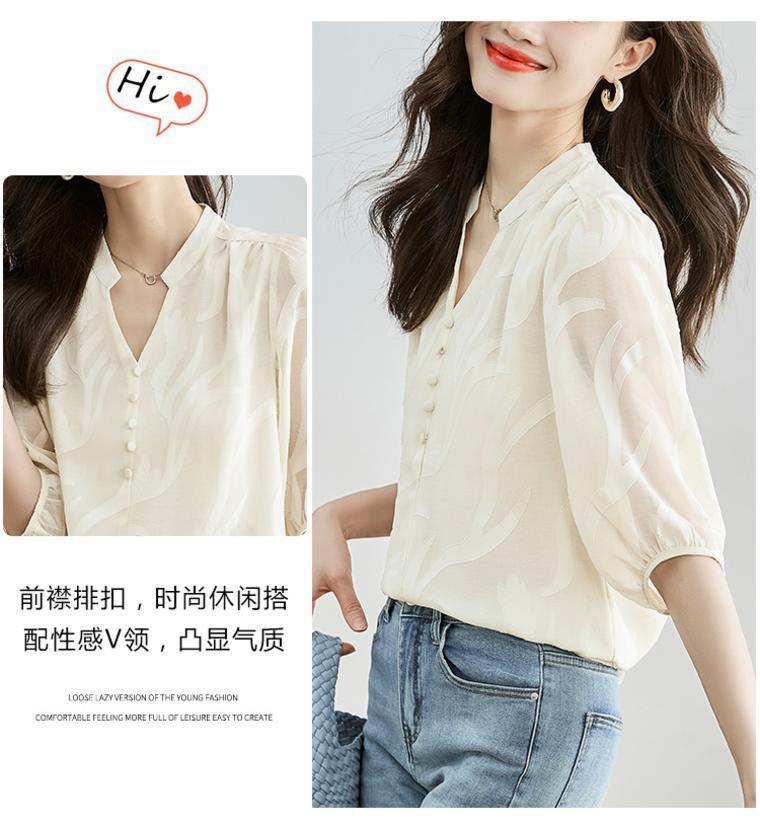 薄款黑色短袖雪紡衫女夏季新款時尚洋氣拼接蕾絲襯衫寬松遮肚上衣