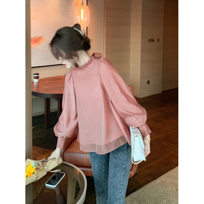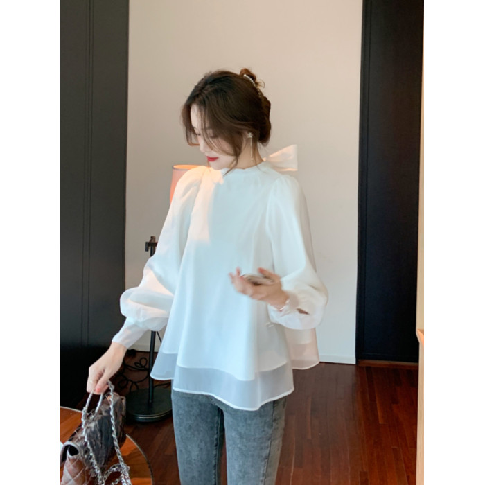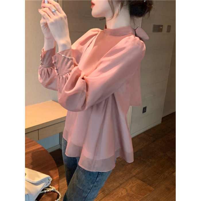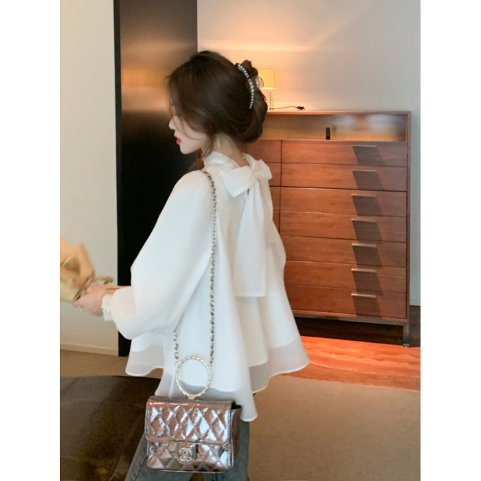 2025春秋新款法式時尚小衫長袖上衣女遮肚甜美洋氣設計感雪紡襯衫