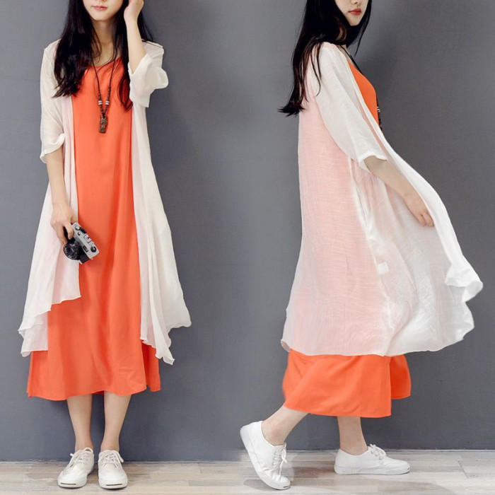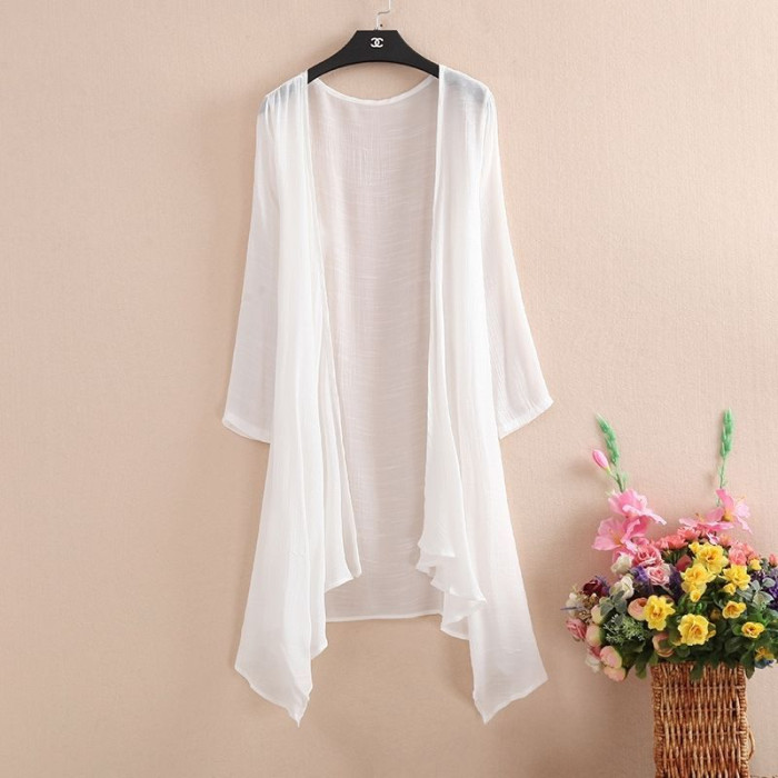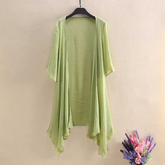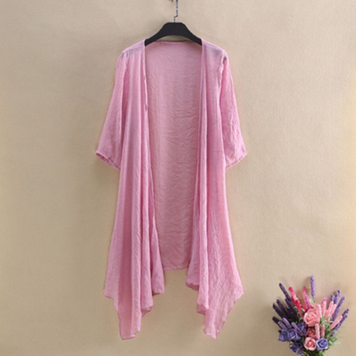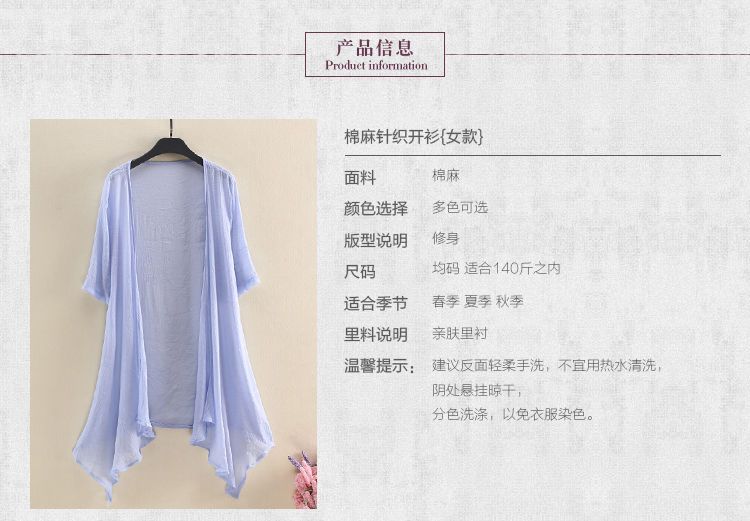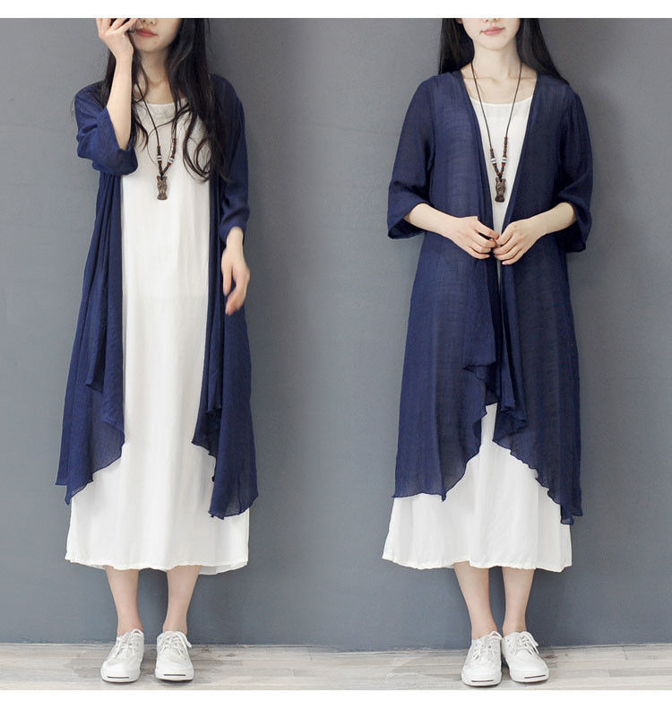 棉麻民族風防曬衣外搭開衫可臘染紥染新款女中長款薄款寬松搭裙子
