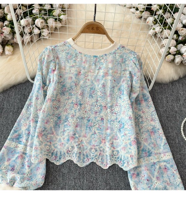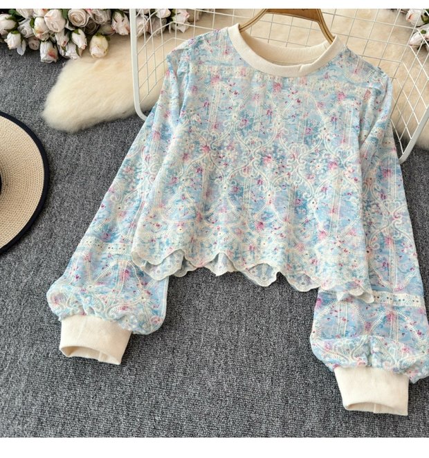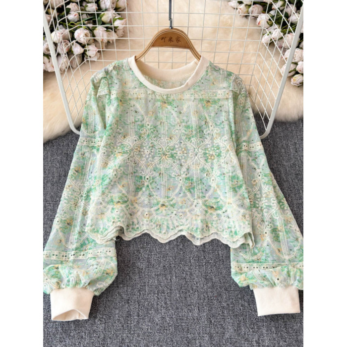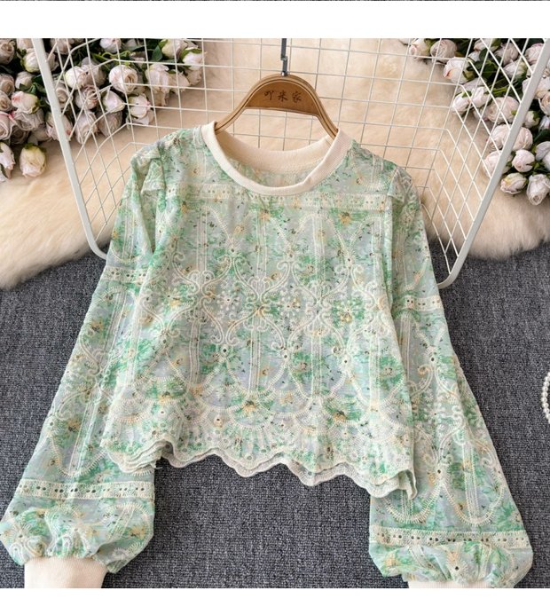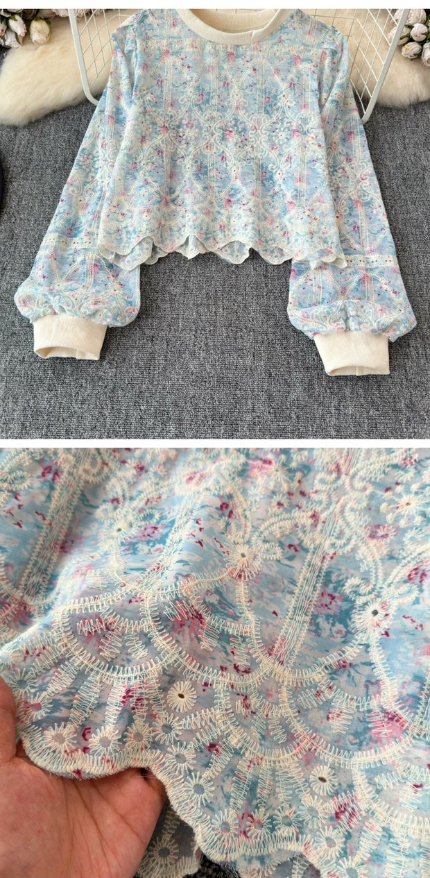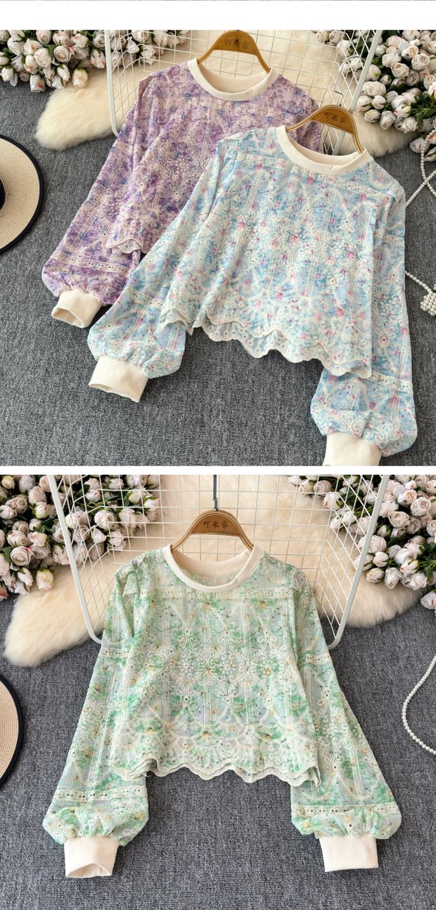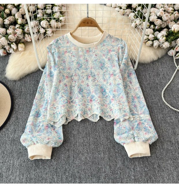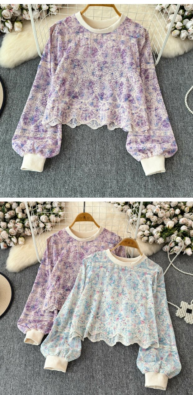 2025秋季新款法式復古圓領蕾絲拼接長袖衛衣女設計感小衆短款上衣