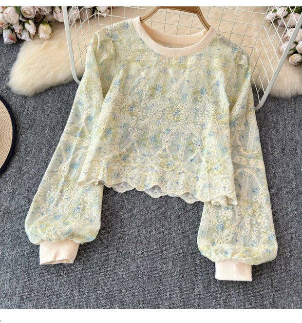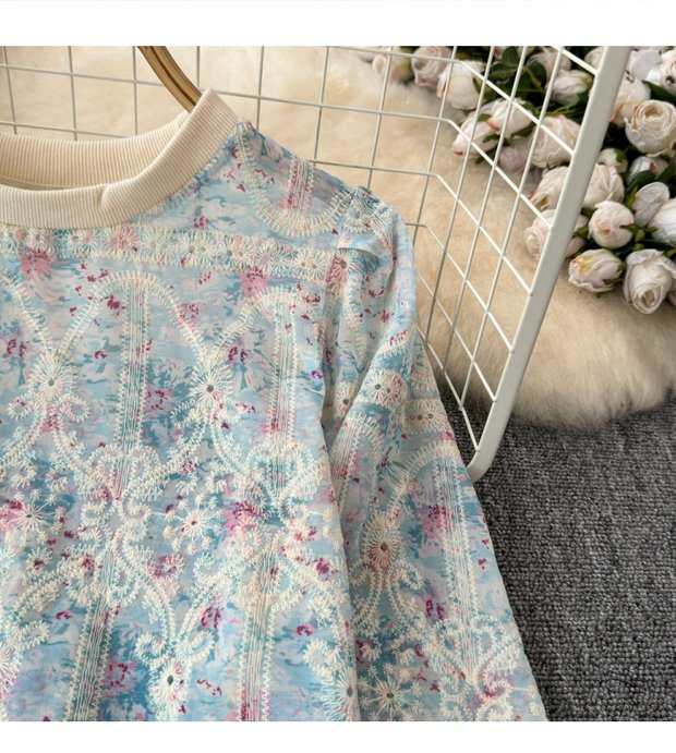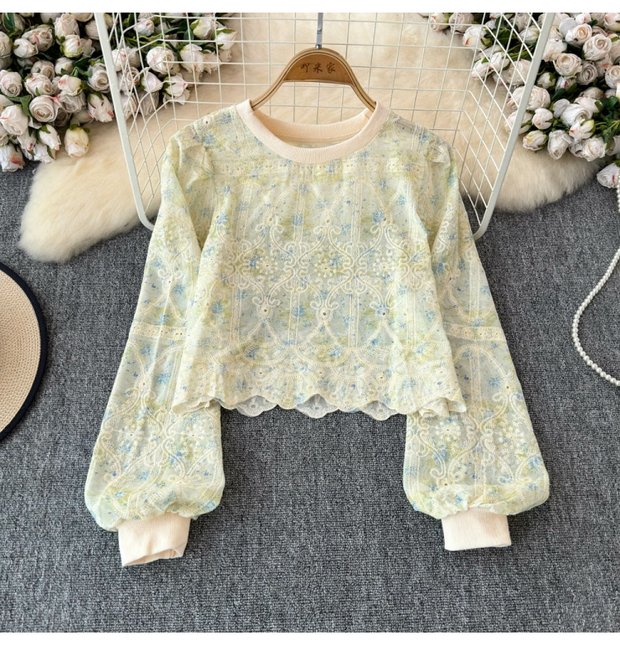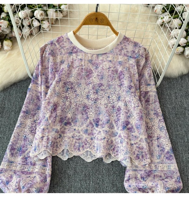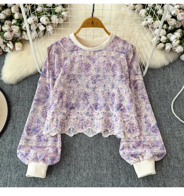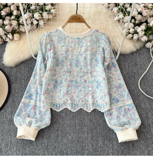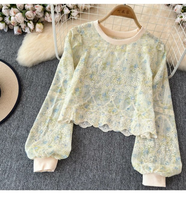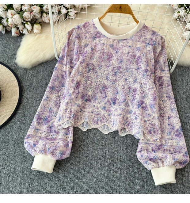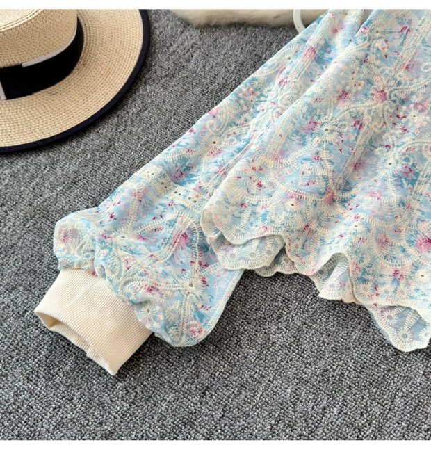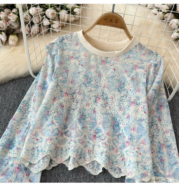 2025秋季新款法式復古圓領蕾絲拼接長袖衛衣女設計感小衆短款上衣