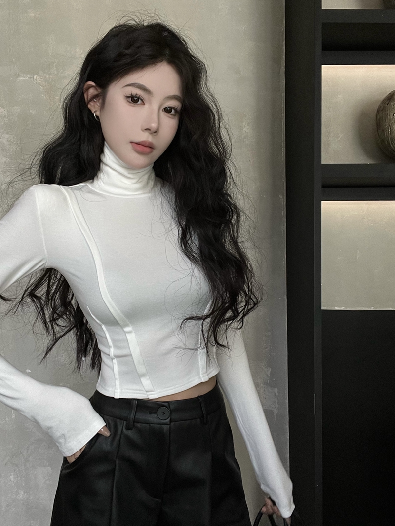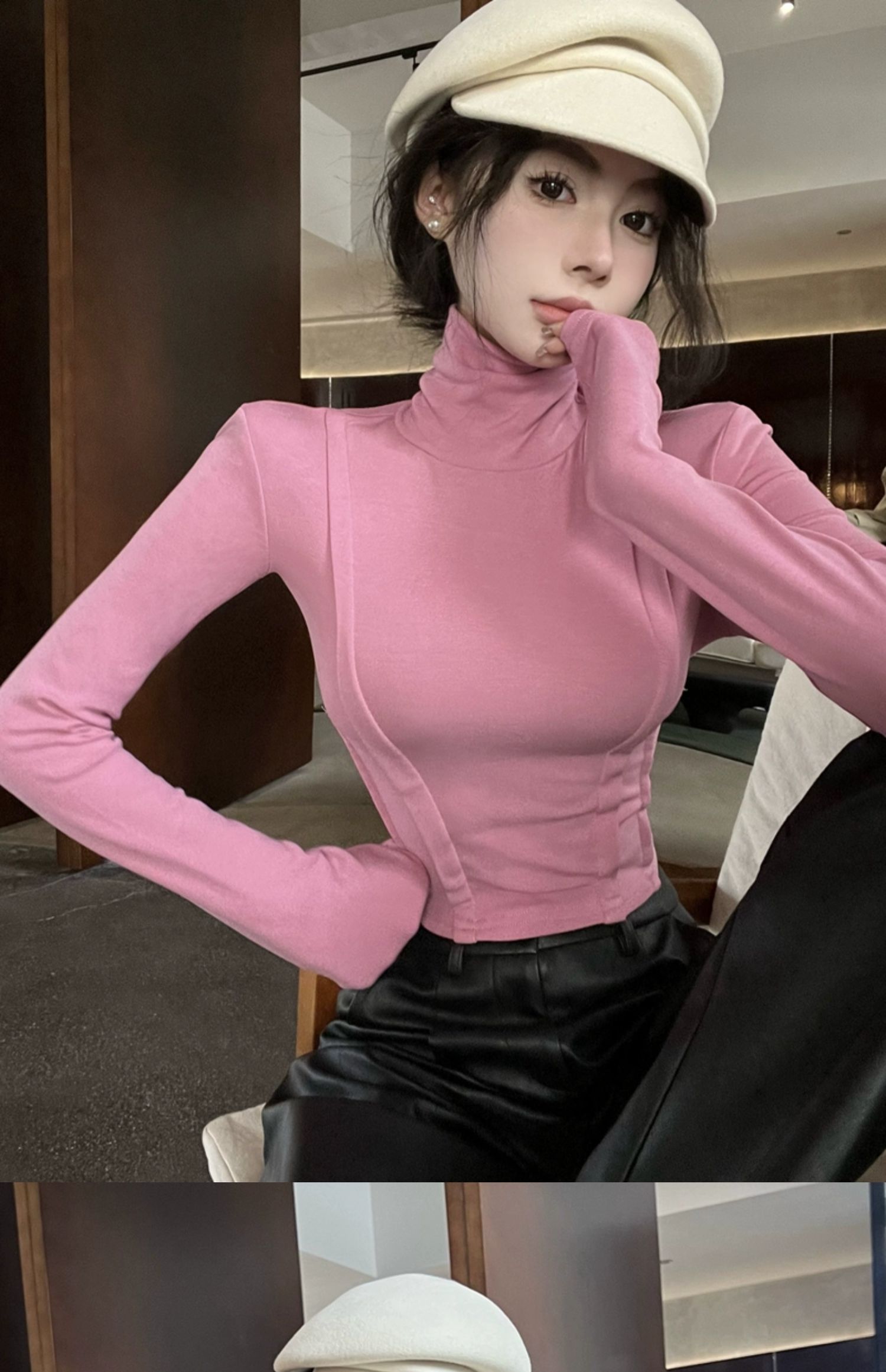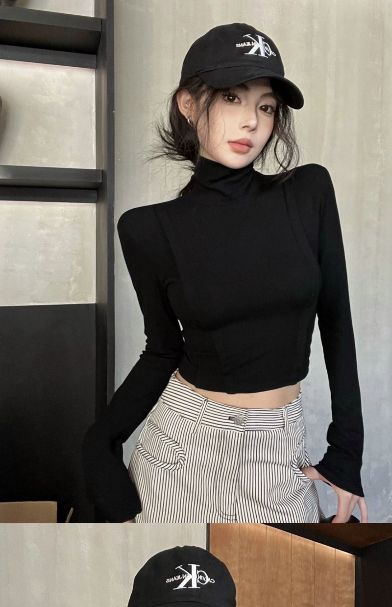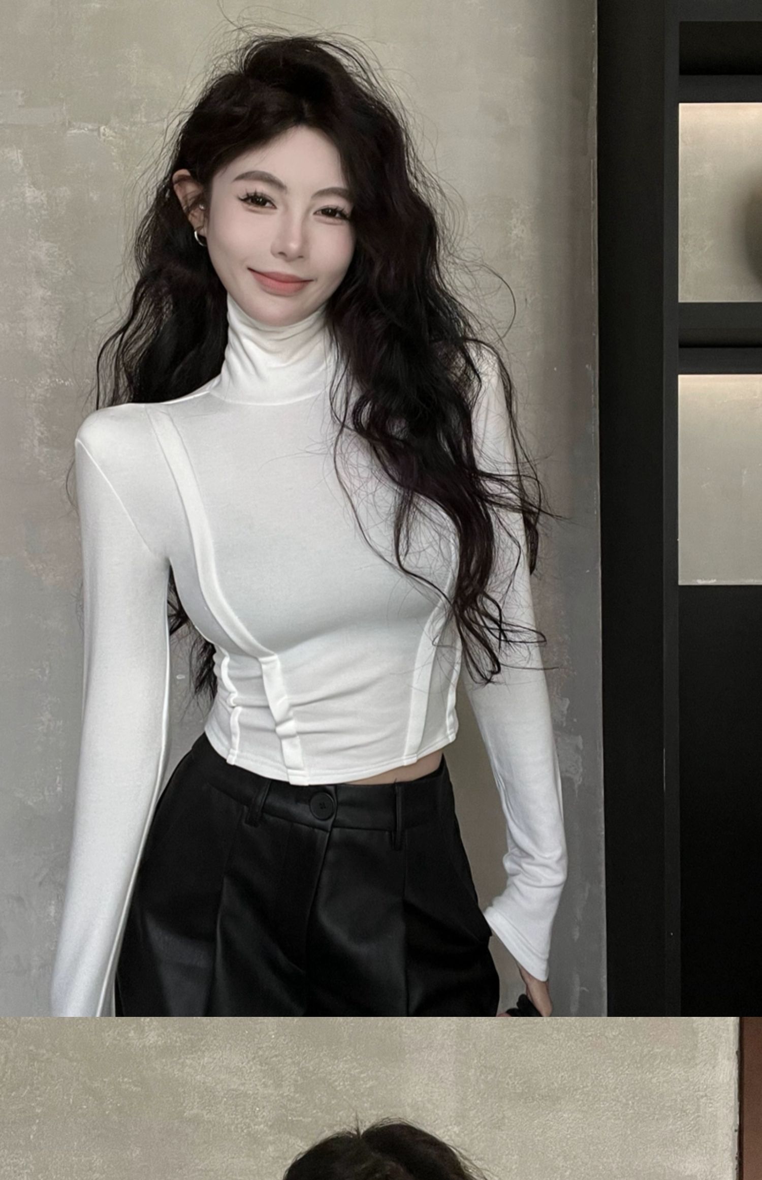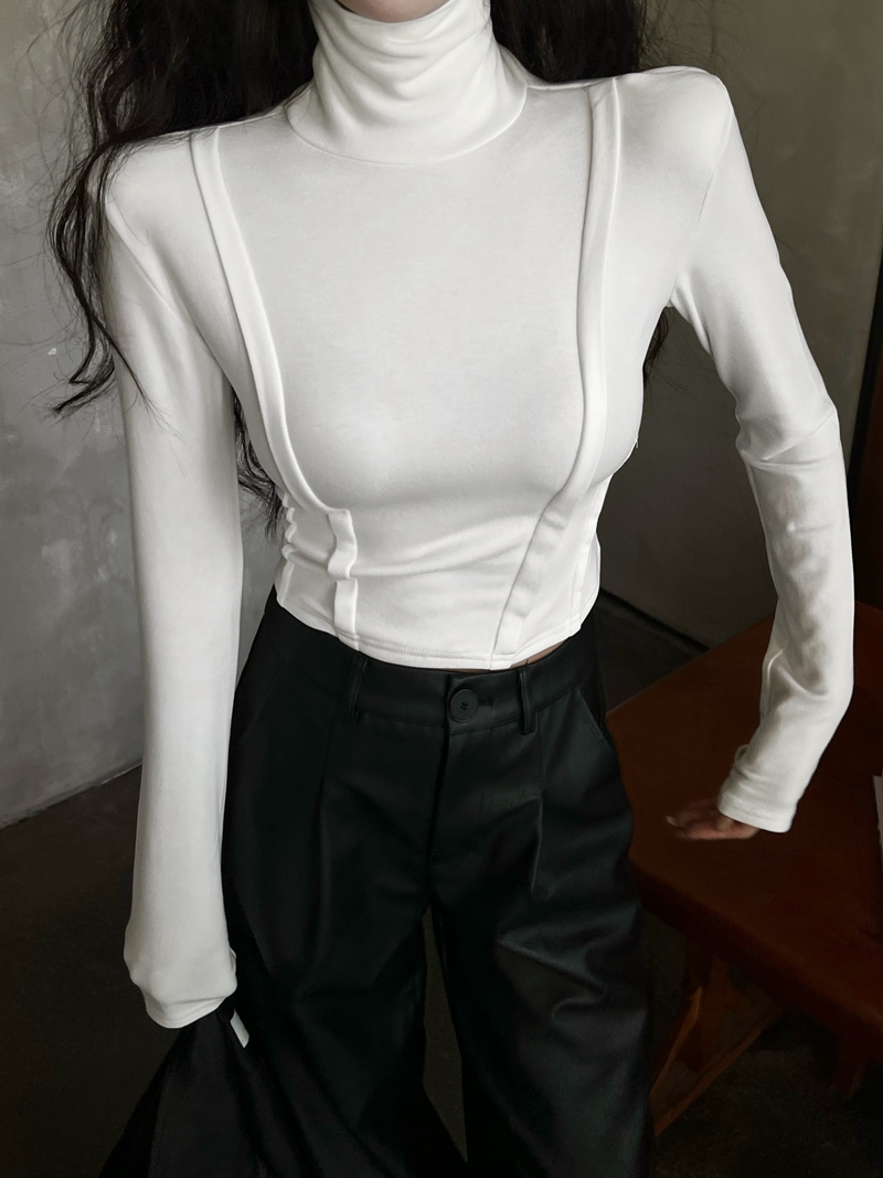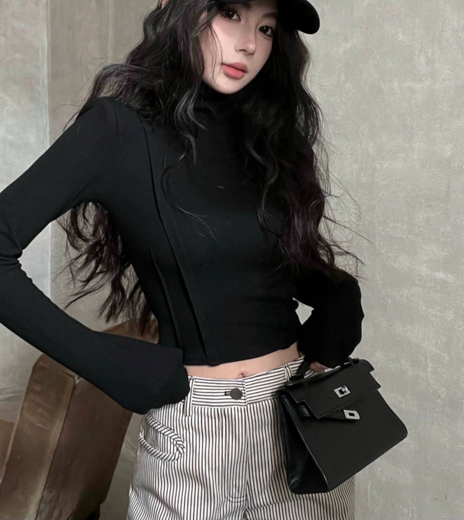 純欲辣妹y2k美拉德魚骨上衣女秋冬墊肩長袖t恤高領加絨打底衫內搭