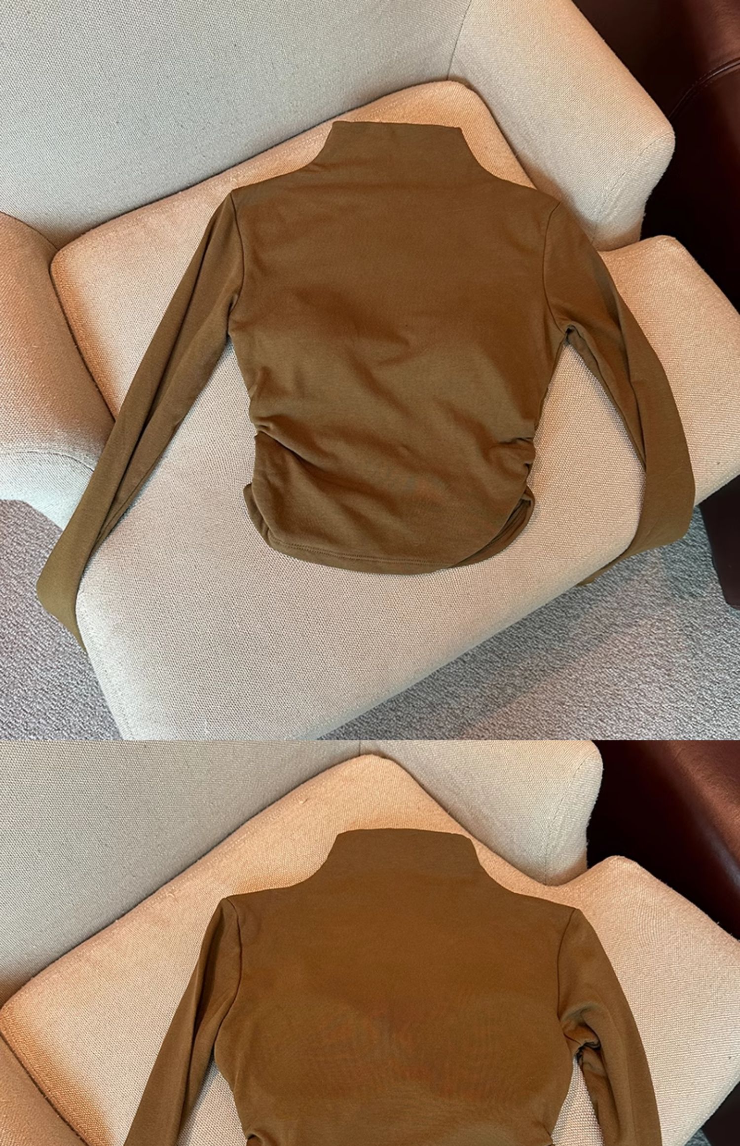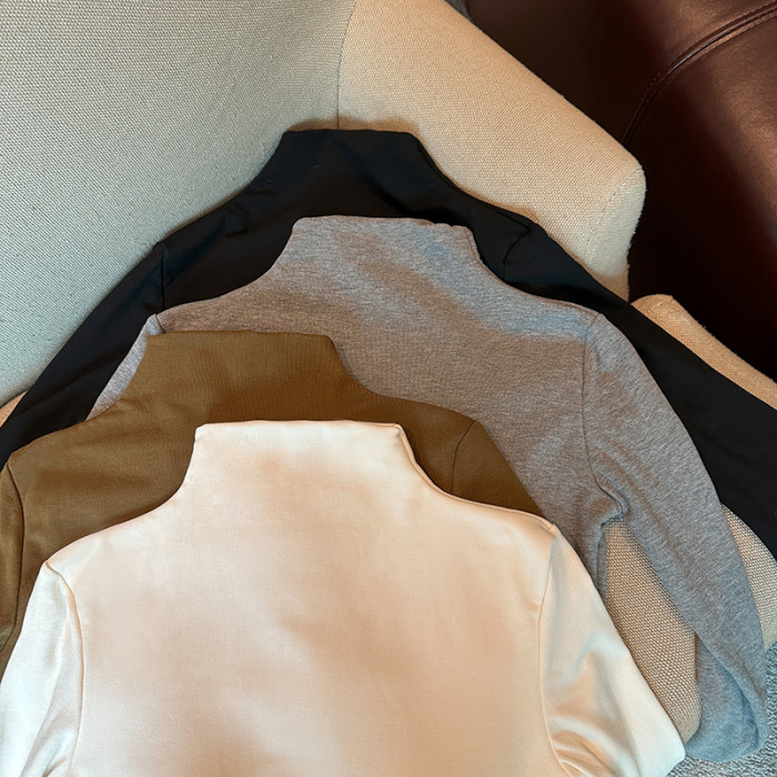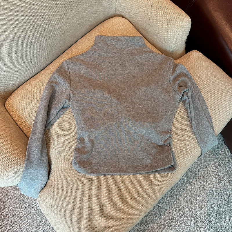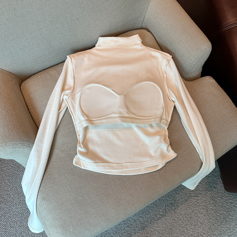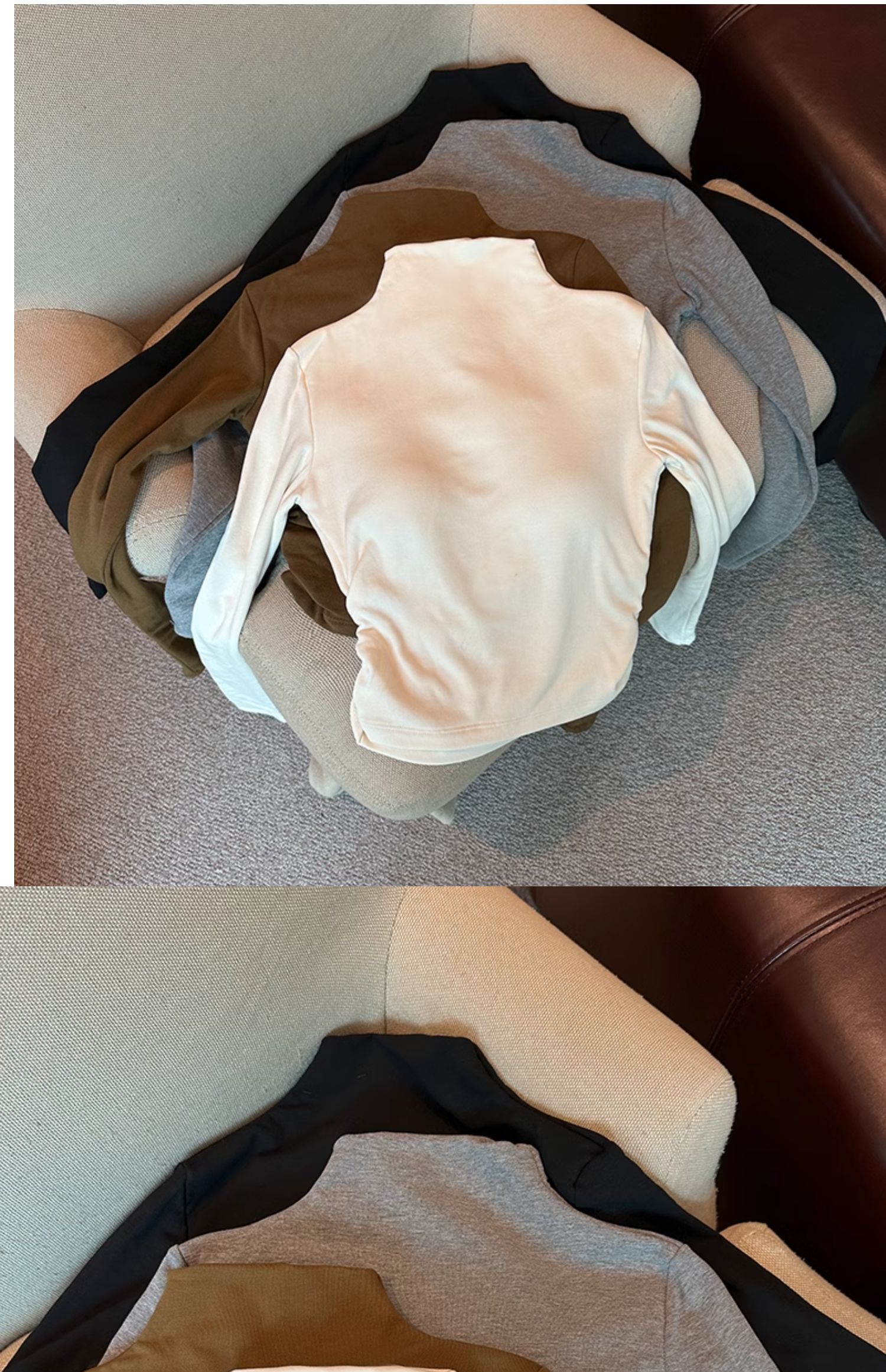 磨毛加絨加厚打底衫女內搭秋冬保暖內衣上衣半高領帶胸墊長袖t恤