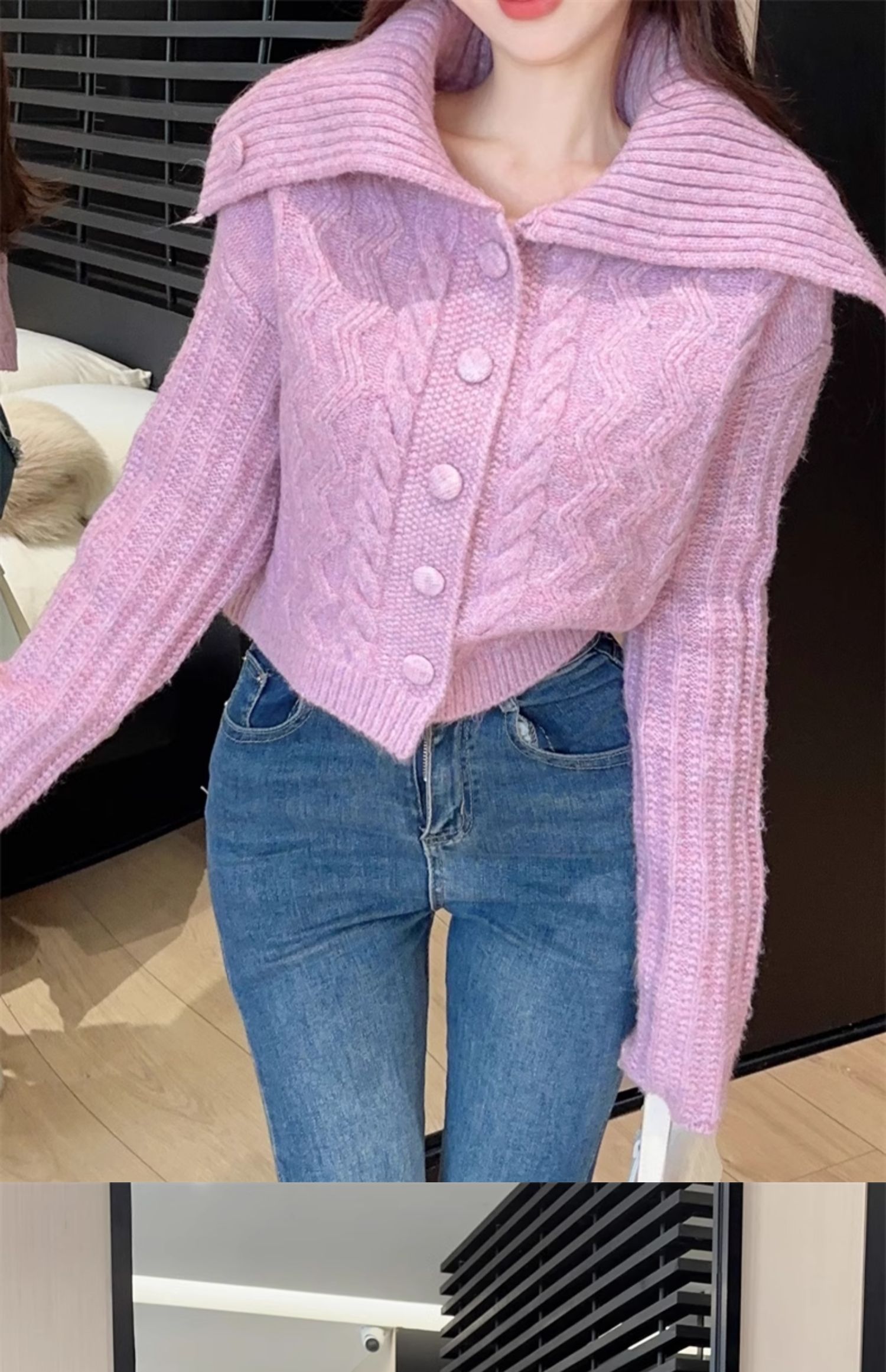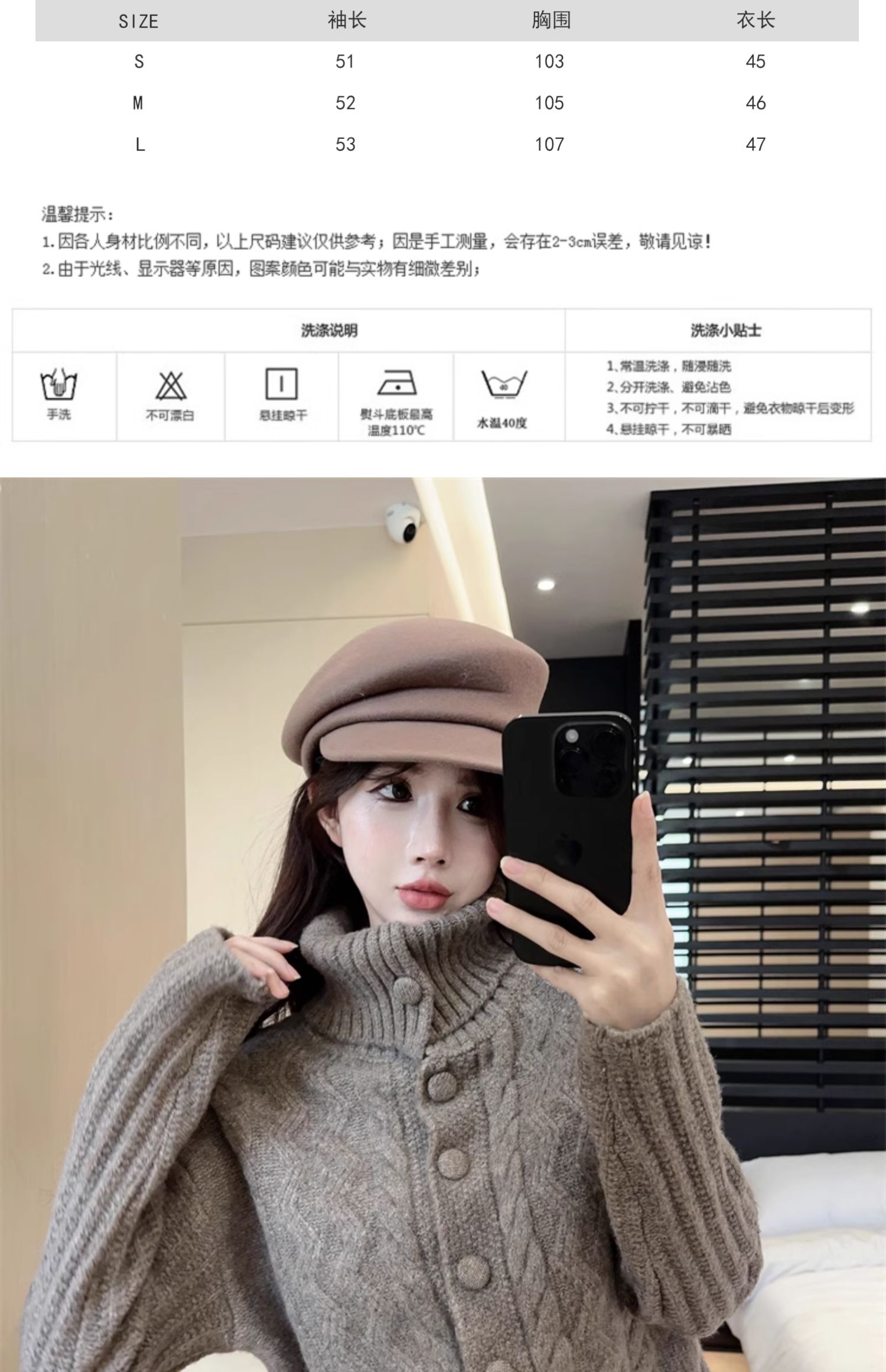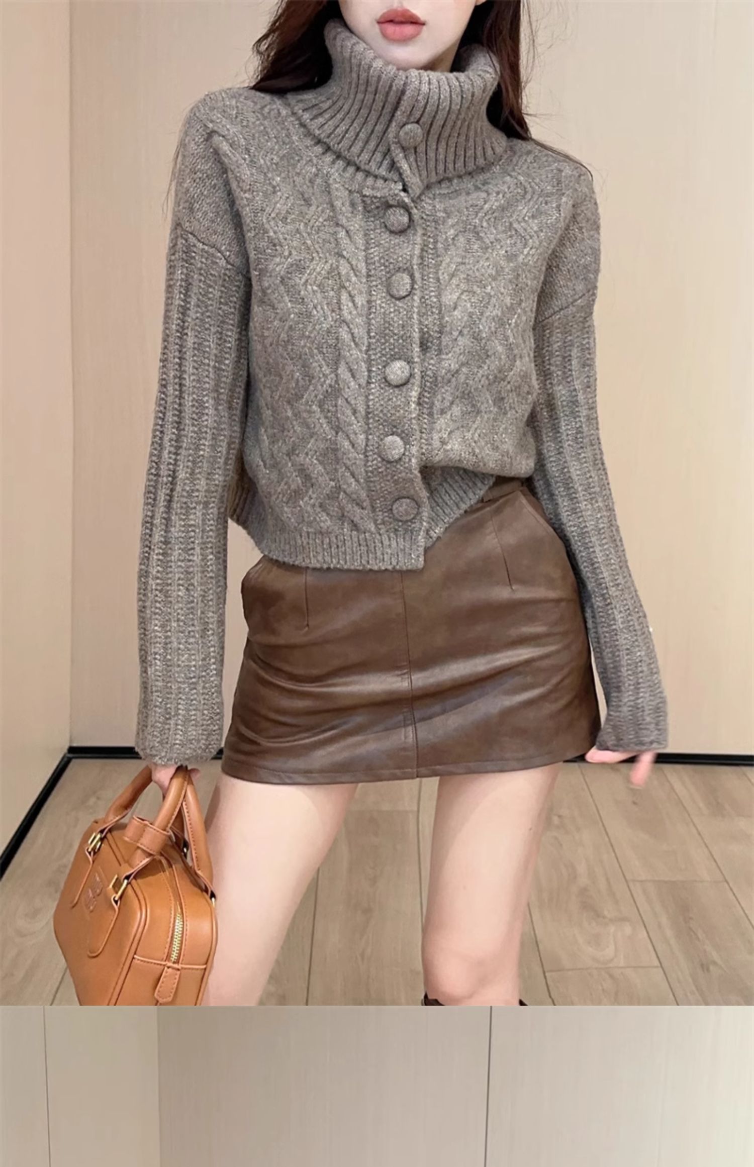 美拉德慵懶風高領毛衣女秋冬外穿高級感加厚短款針織開衫外套上衣