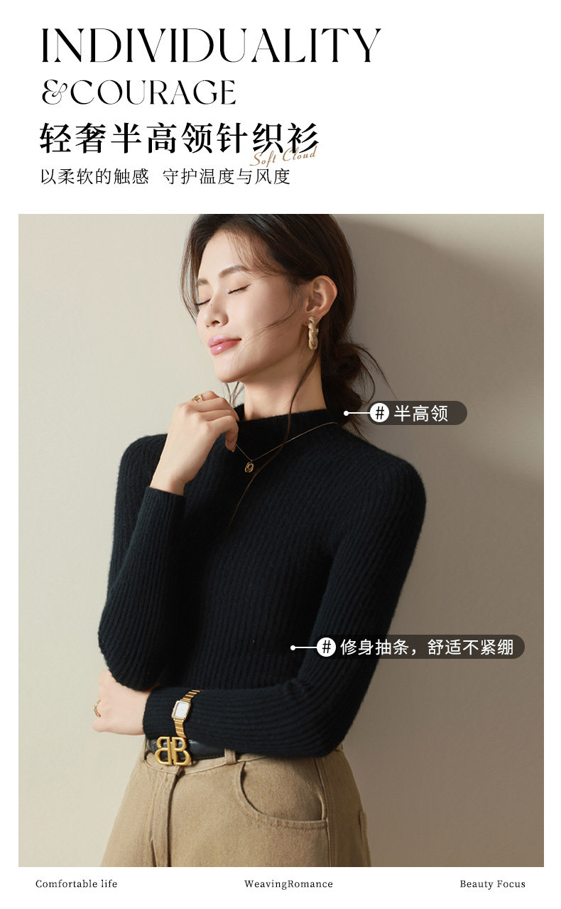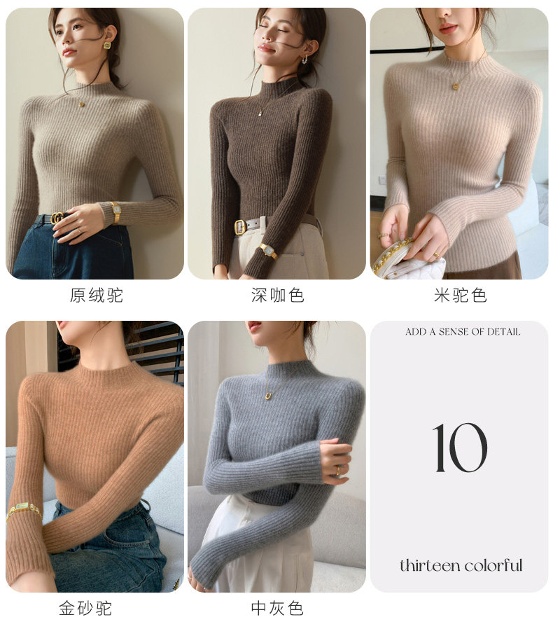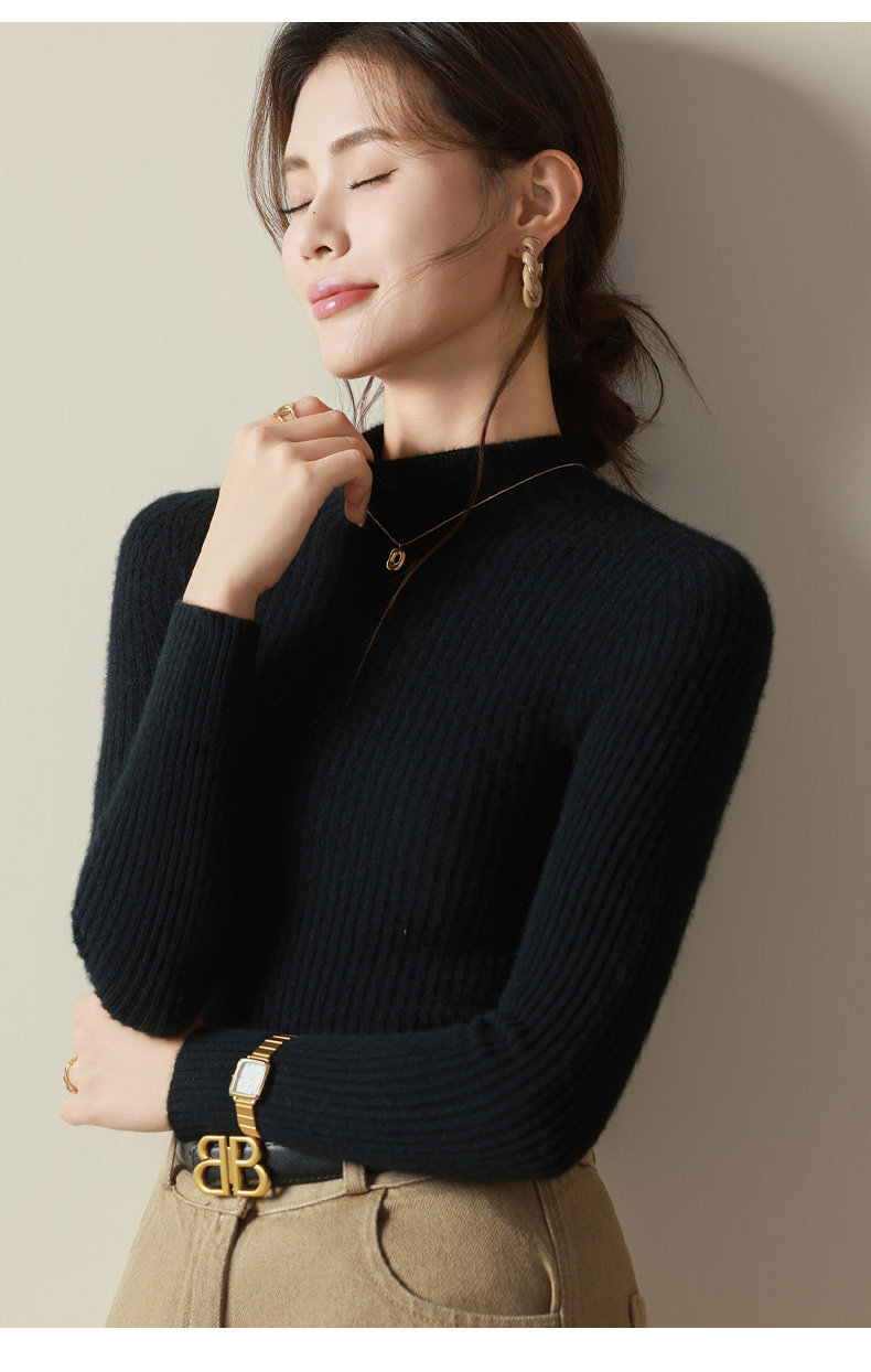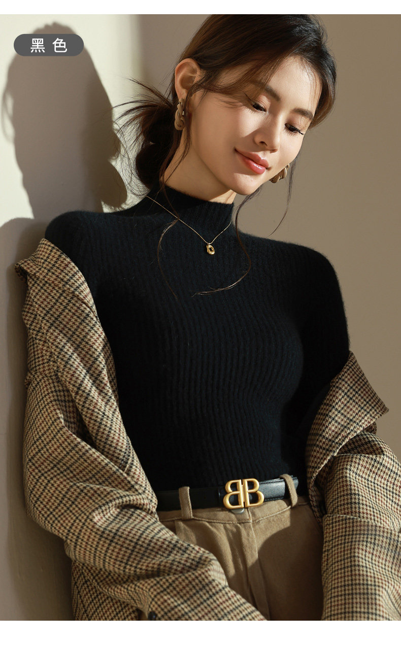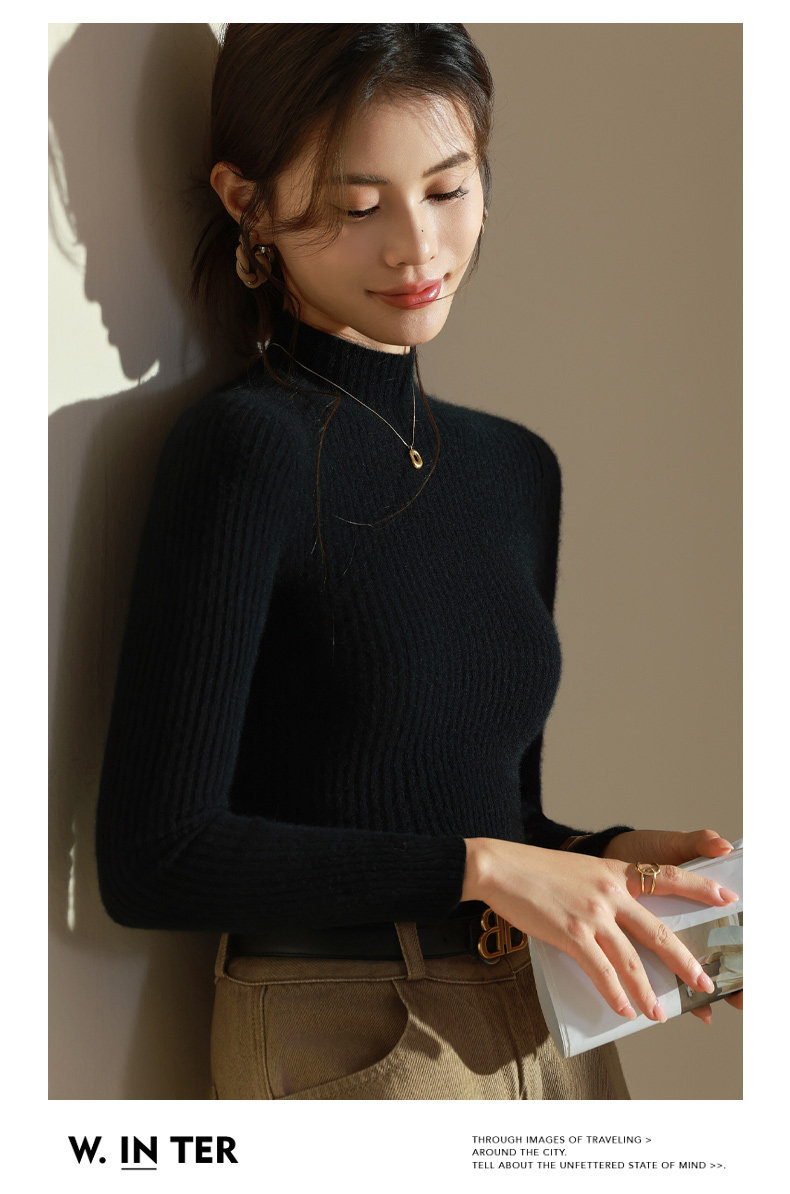 2025新款半高領黑色打底衫女秋冬內搭加厚中領毛衣羊毛針織長袖