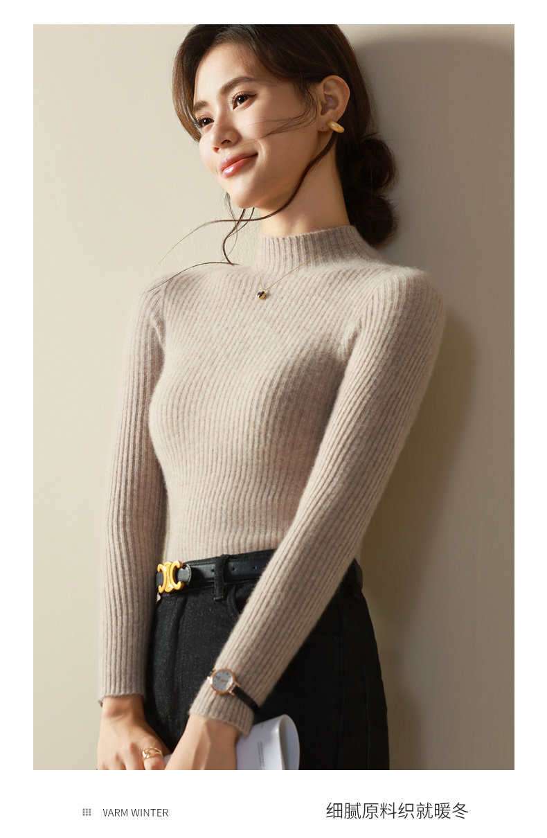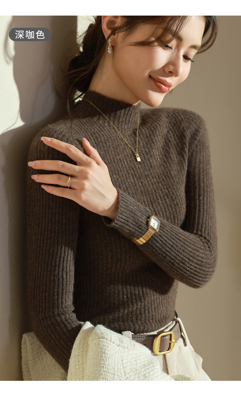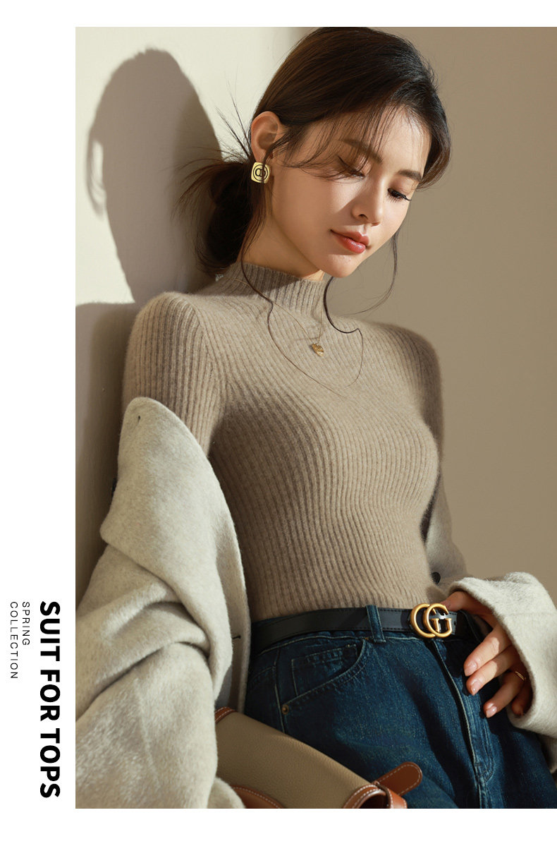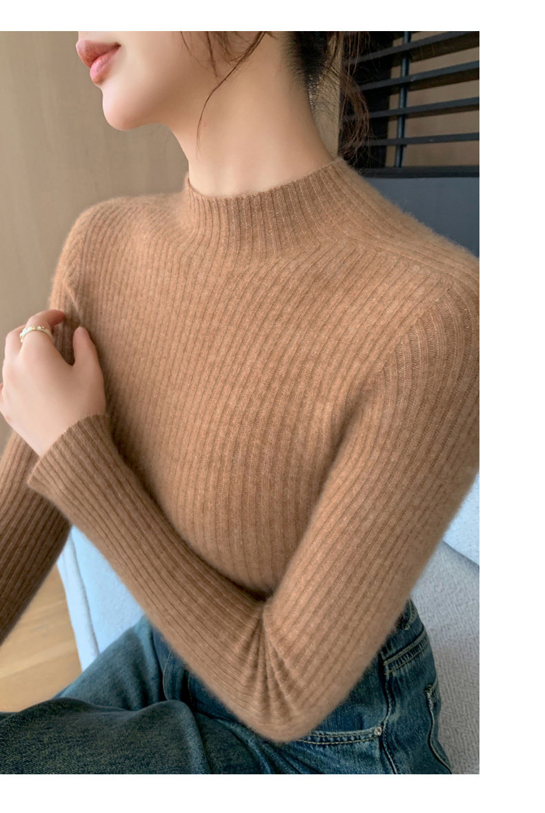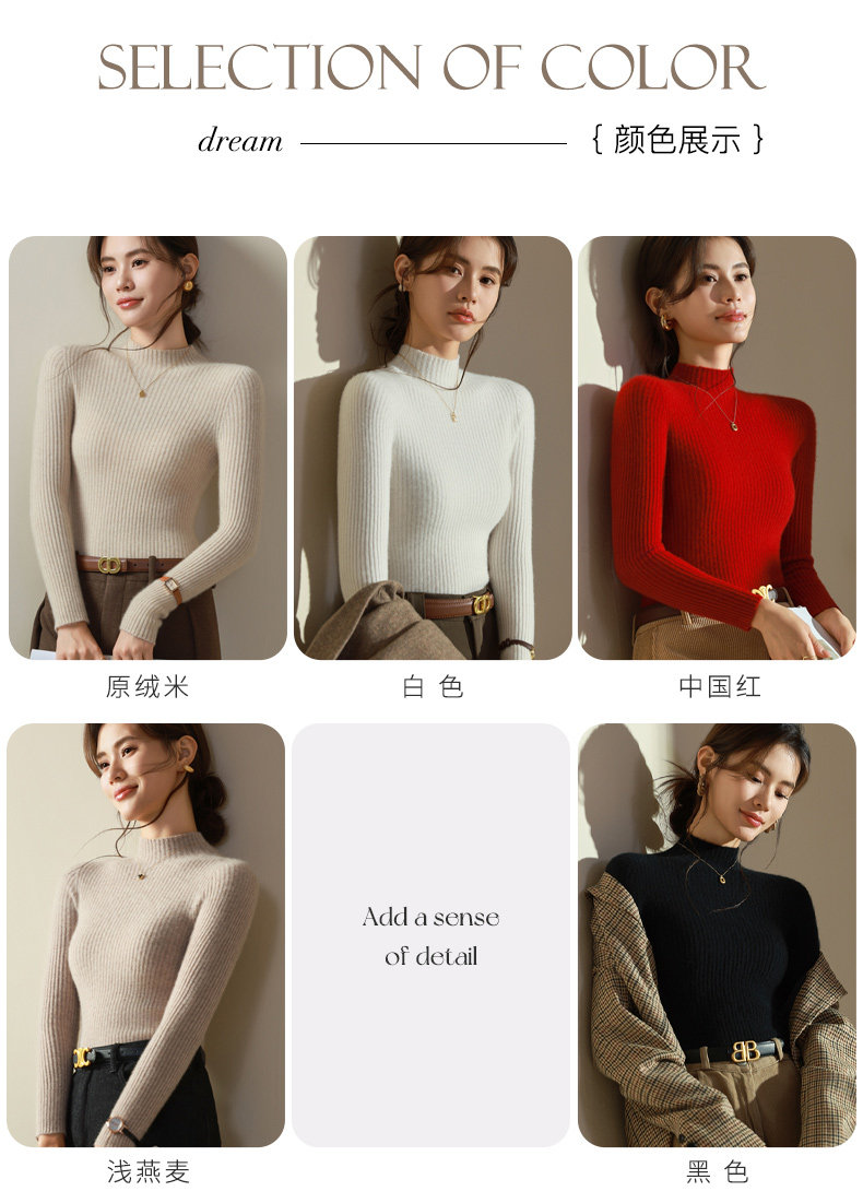 2025新款半高領黑色打底衫女秋冬內搭加厚中領毛衣羊毛針織長袖