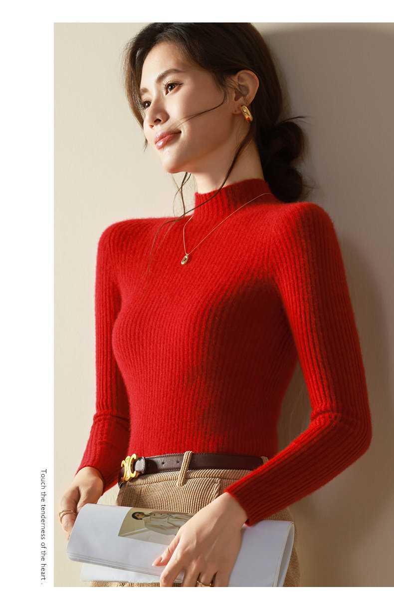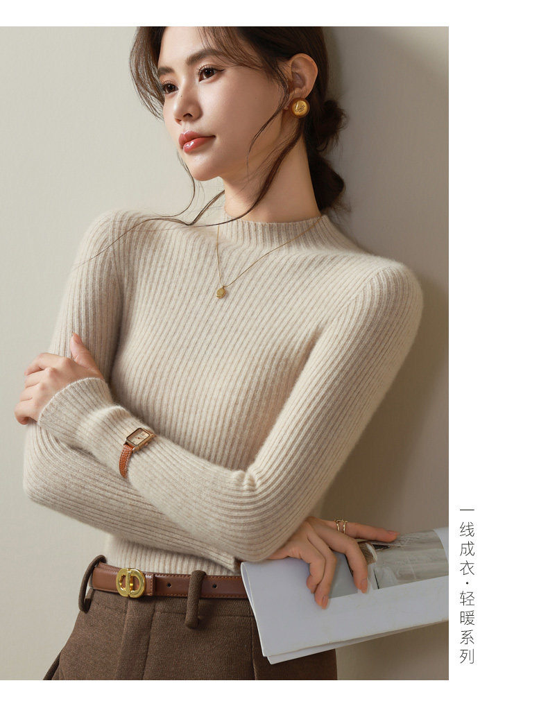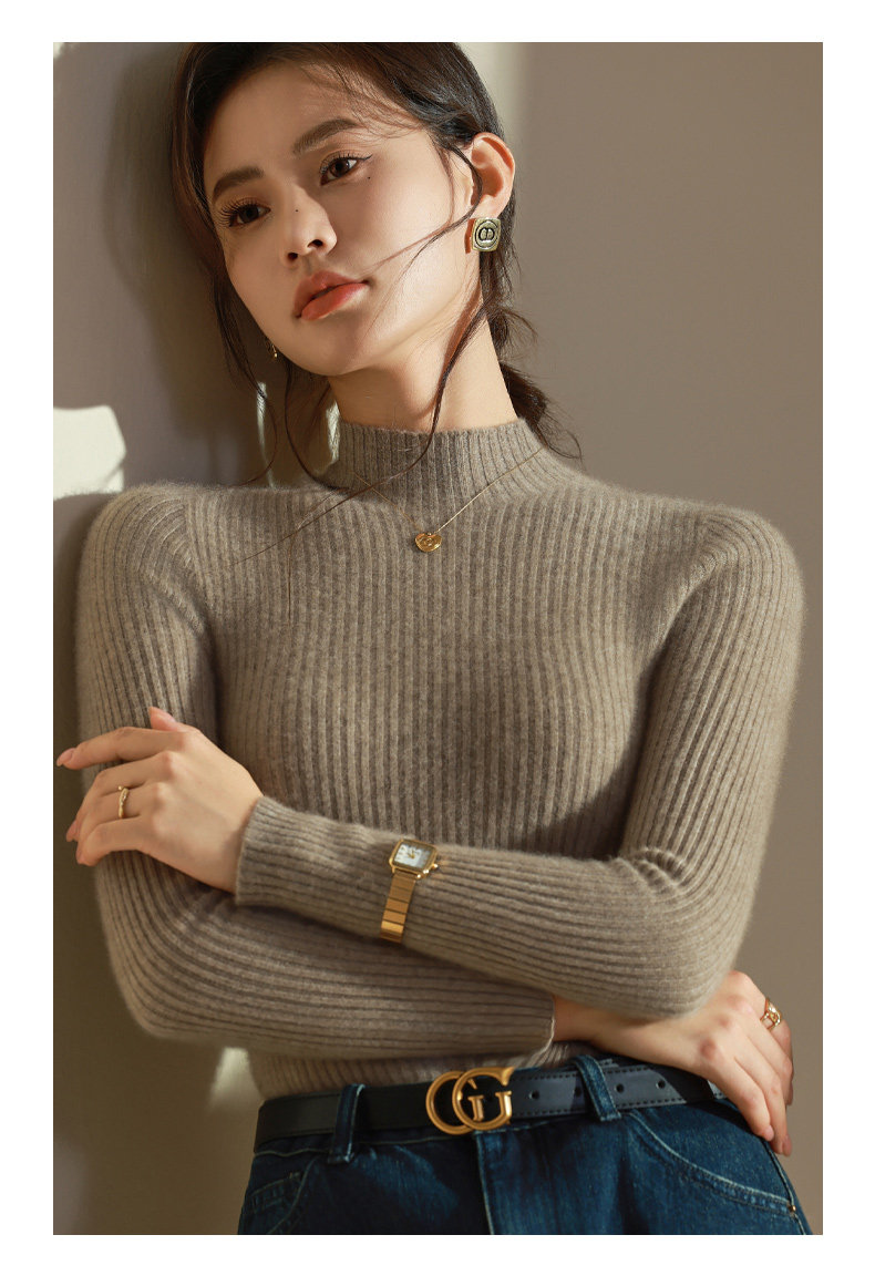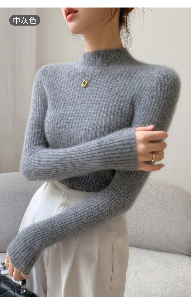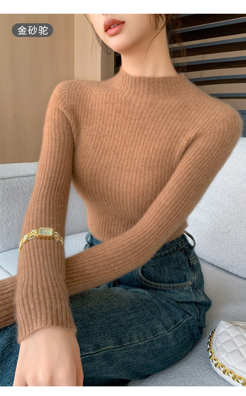 2025新款半高領黑色打底衫女秋冬內搭加厚中領毛衣羊毛針織長袖