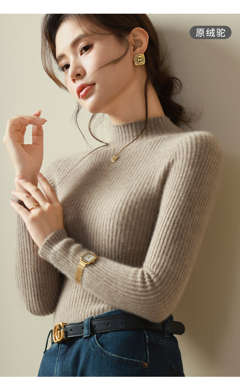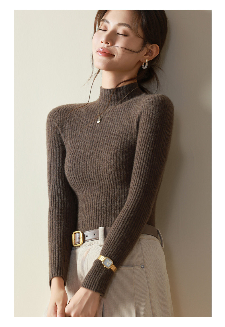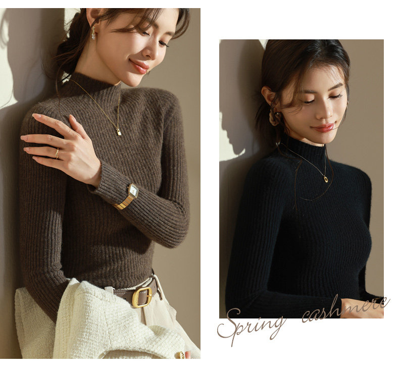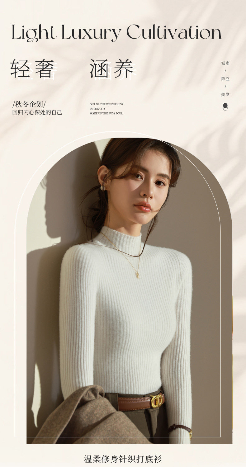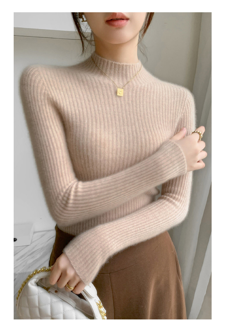 2025新款半高領黑色打底衫女秋冬內搭加厚中領毛衣羊毛針織長袖