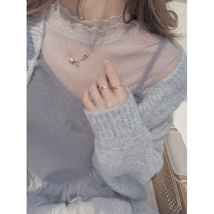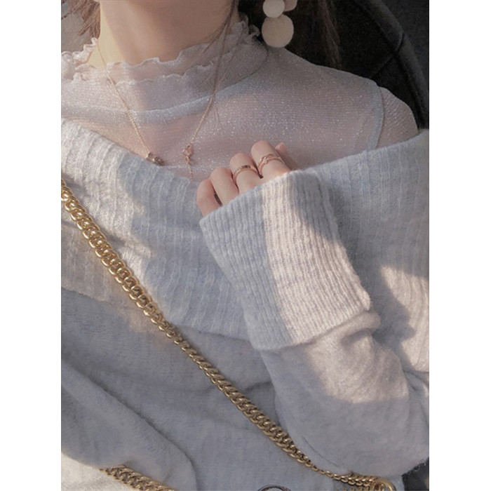 半高領蕾絲打底衫女早秋新款吊帶內搭洋氣紗衣高級感上衣網紗小衫