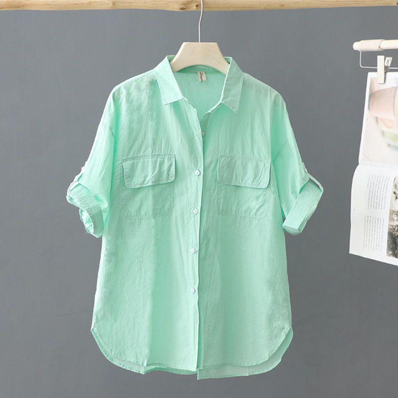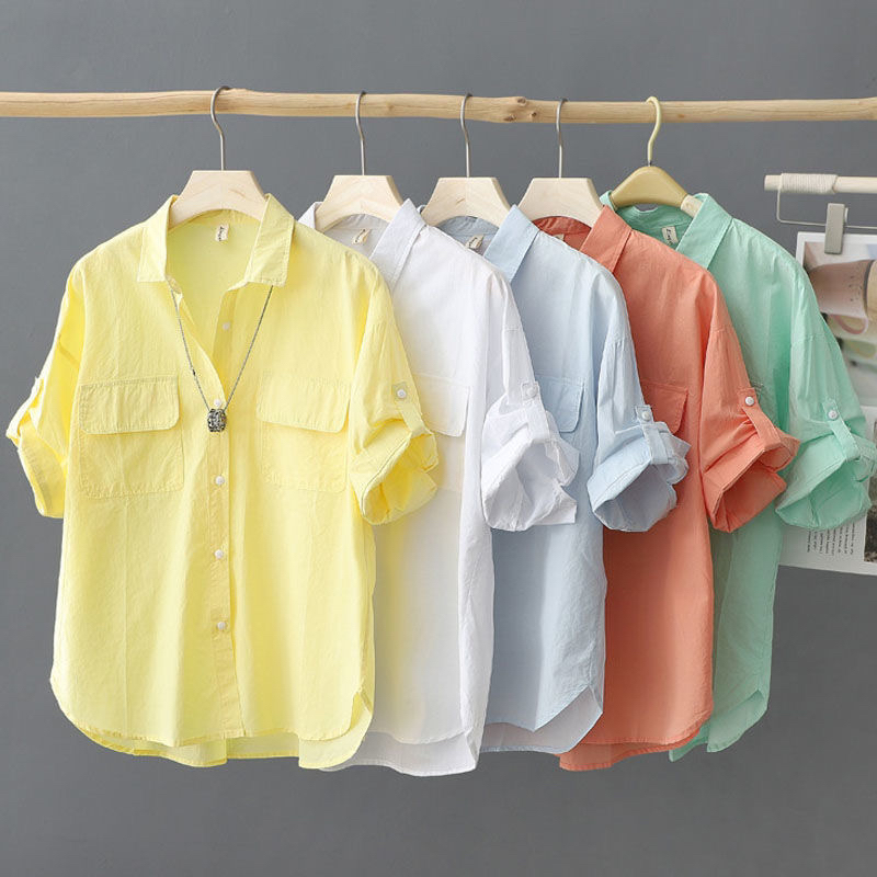 短袖純色休閒襯衫女2025年夏季新款韓版純棉減齡襯衣寬松顯瘦上衣