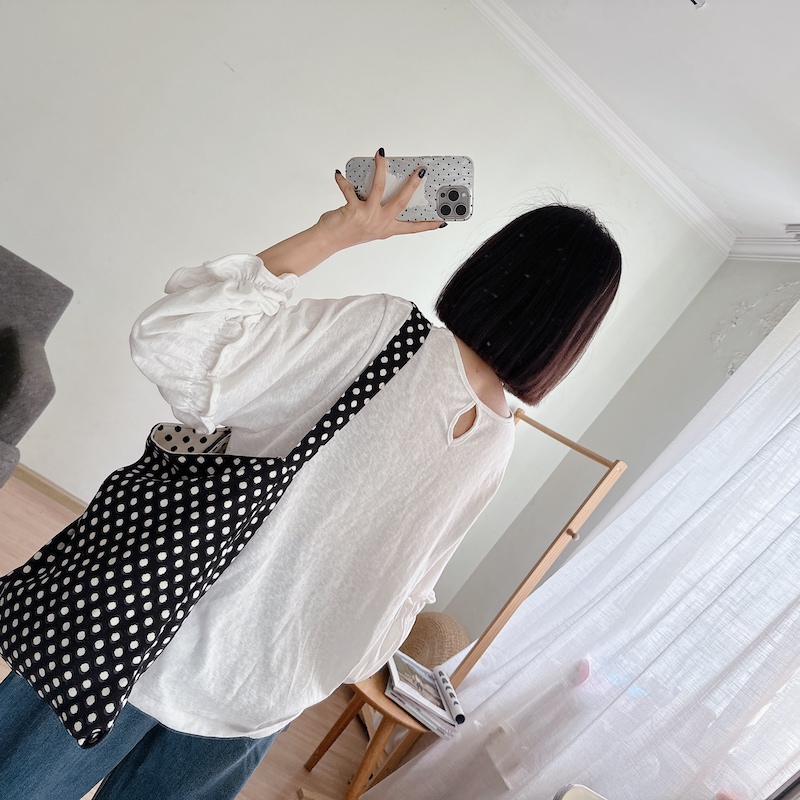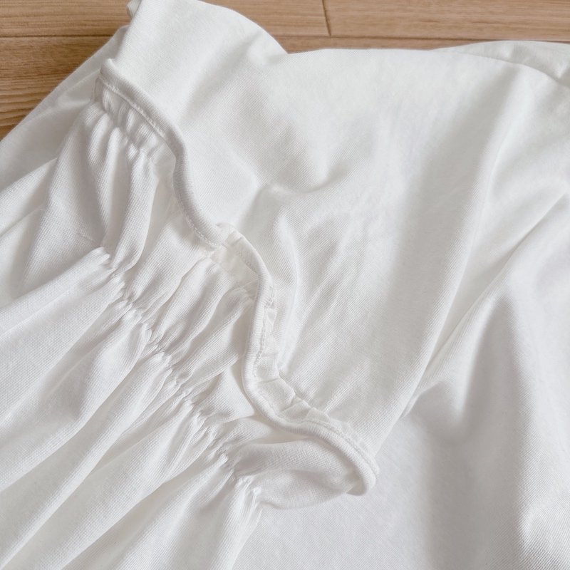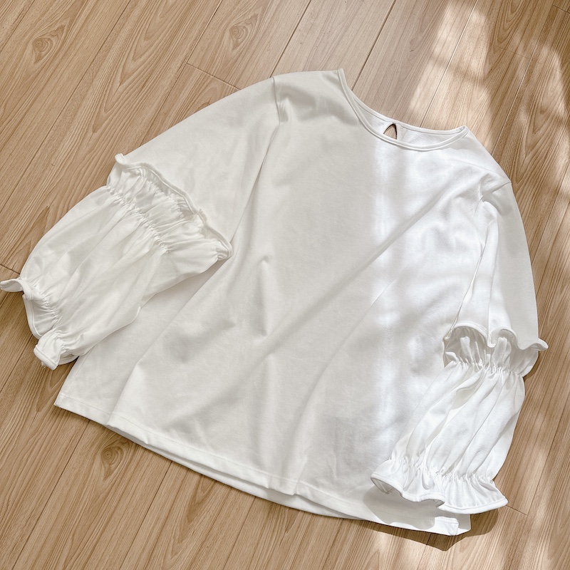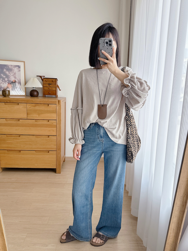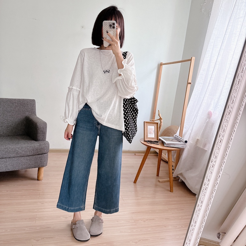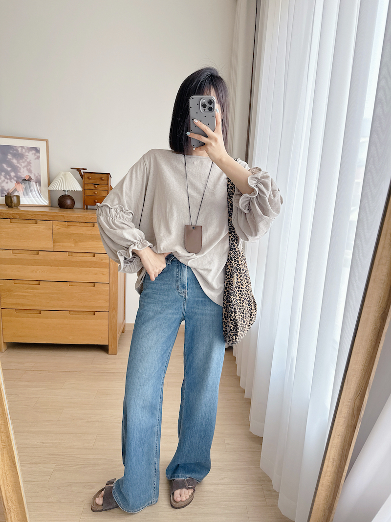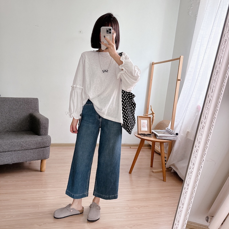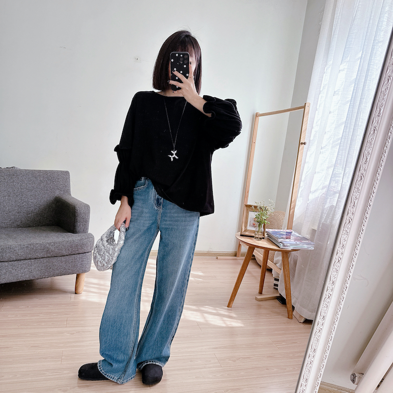 花的冰淇淋 百搭減齡純色寬松中長款圓領花苞袖長袖T恤女款秋款p