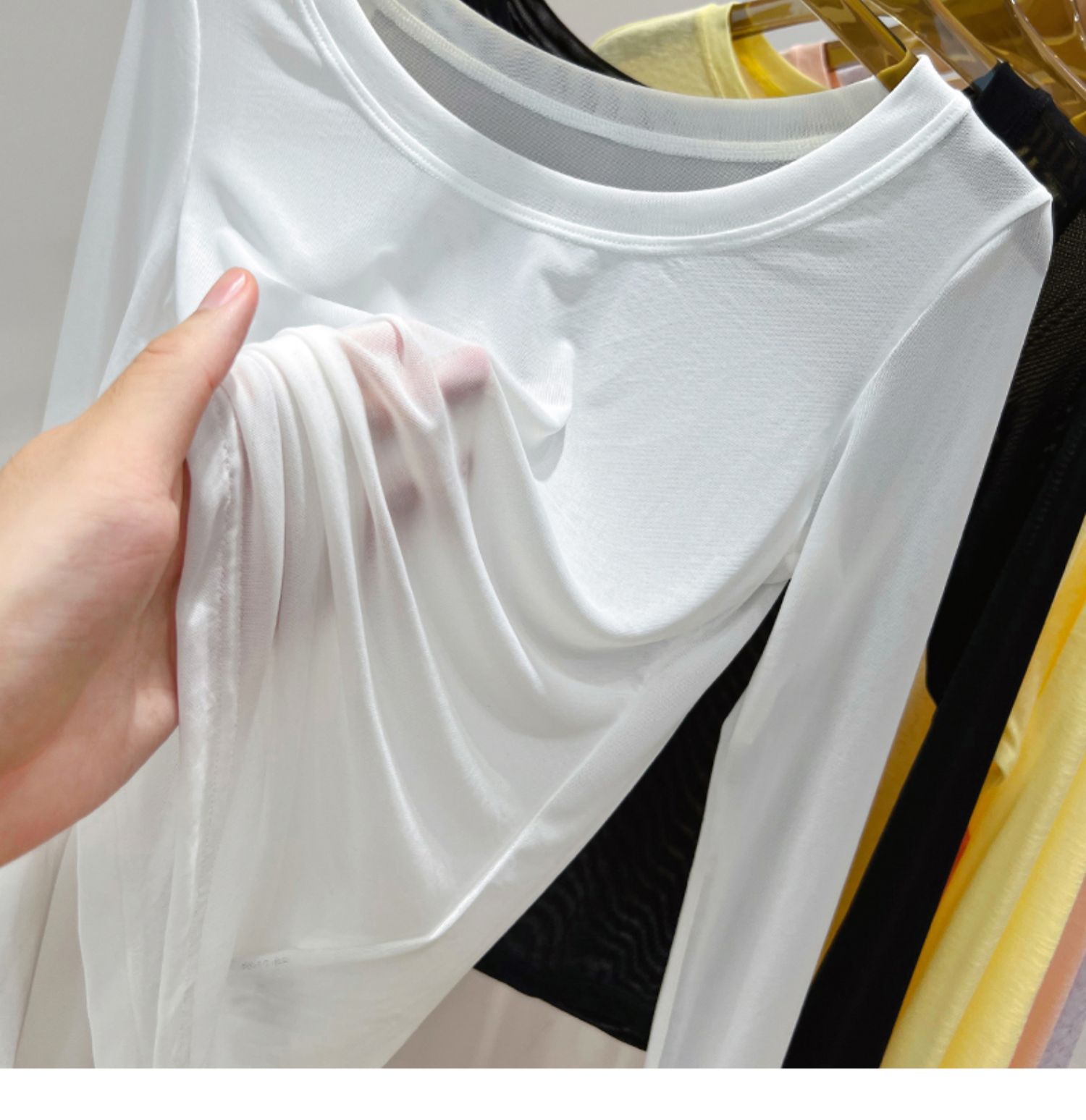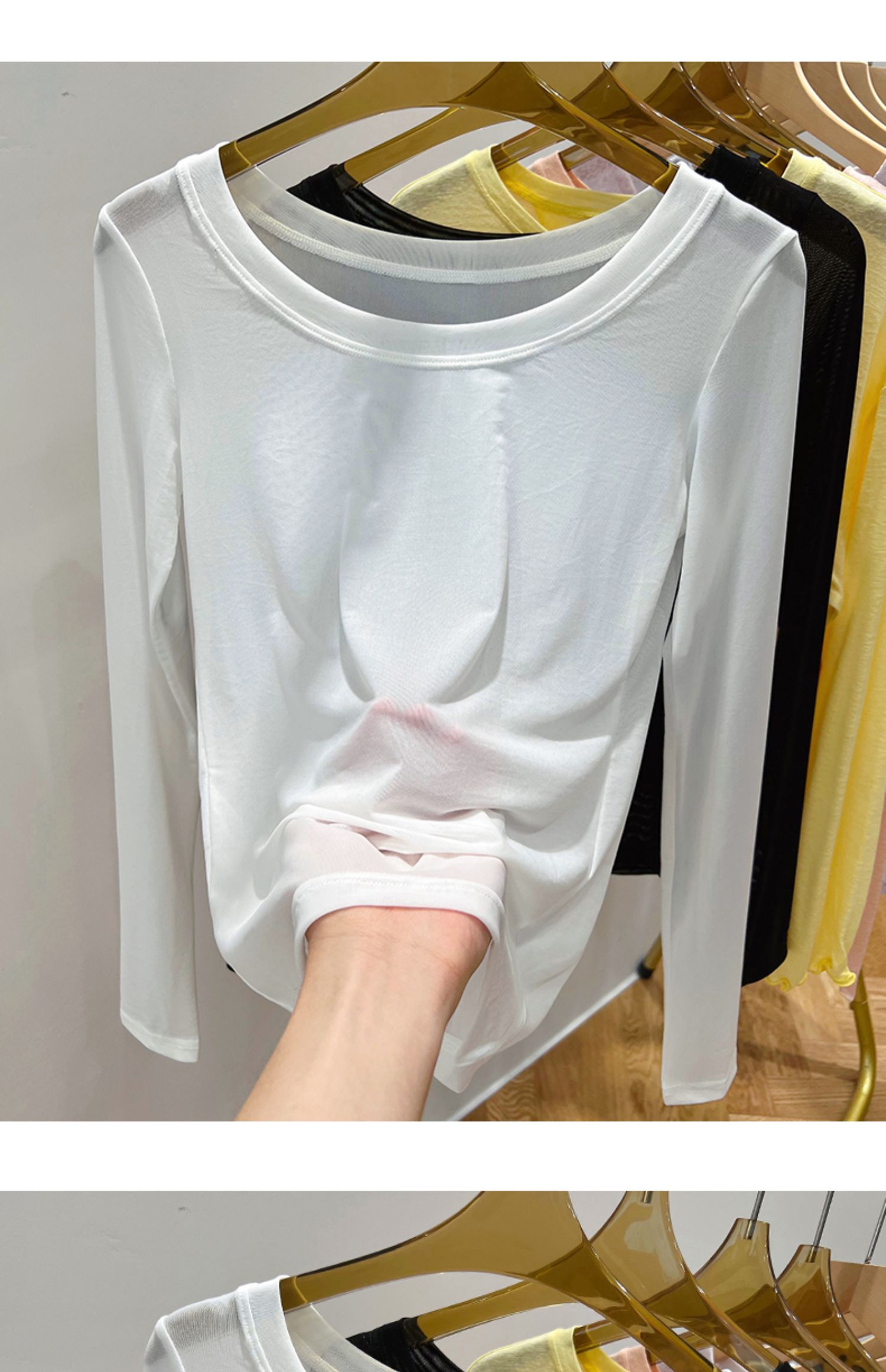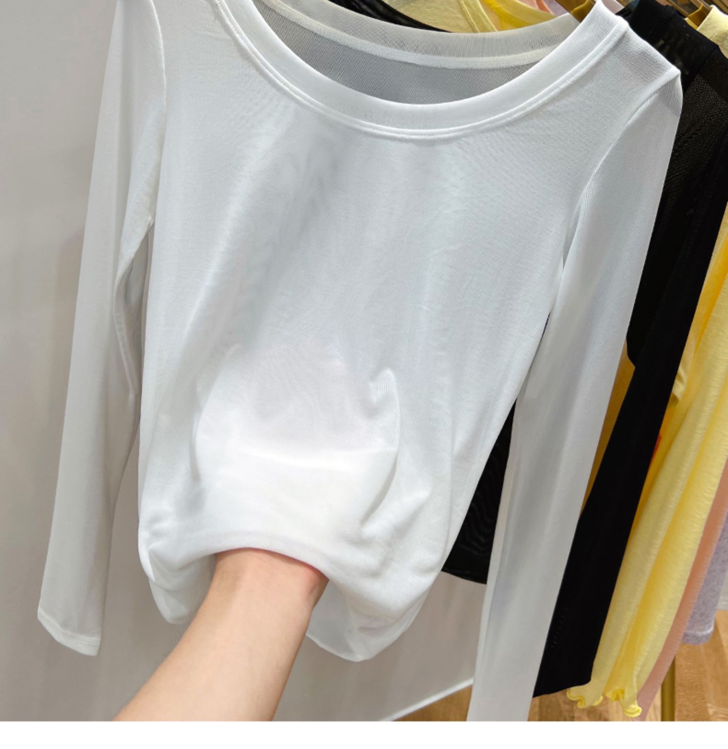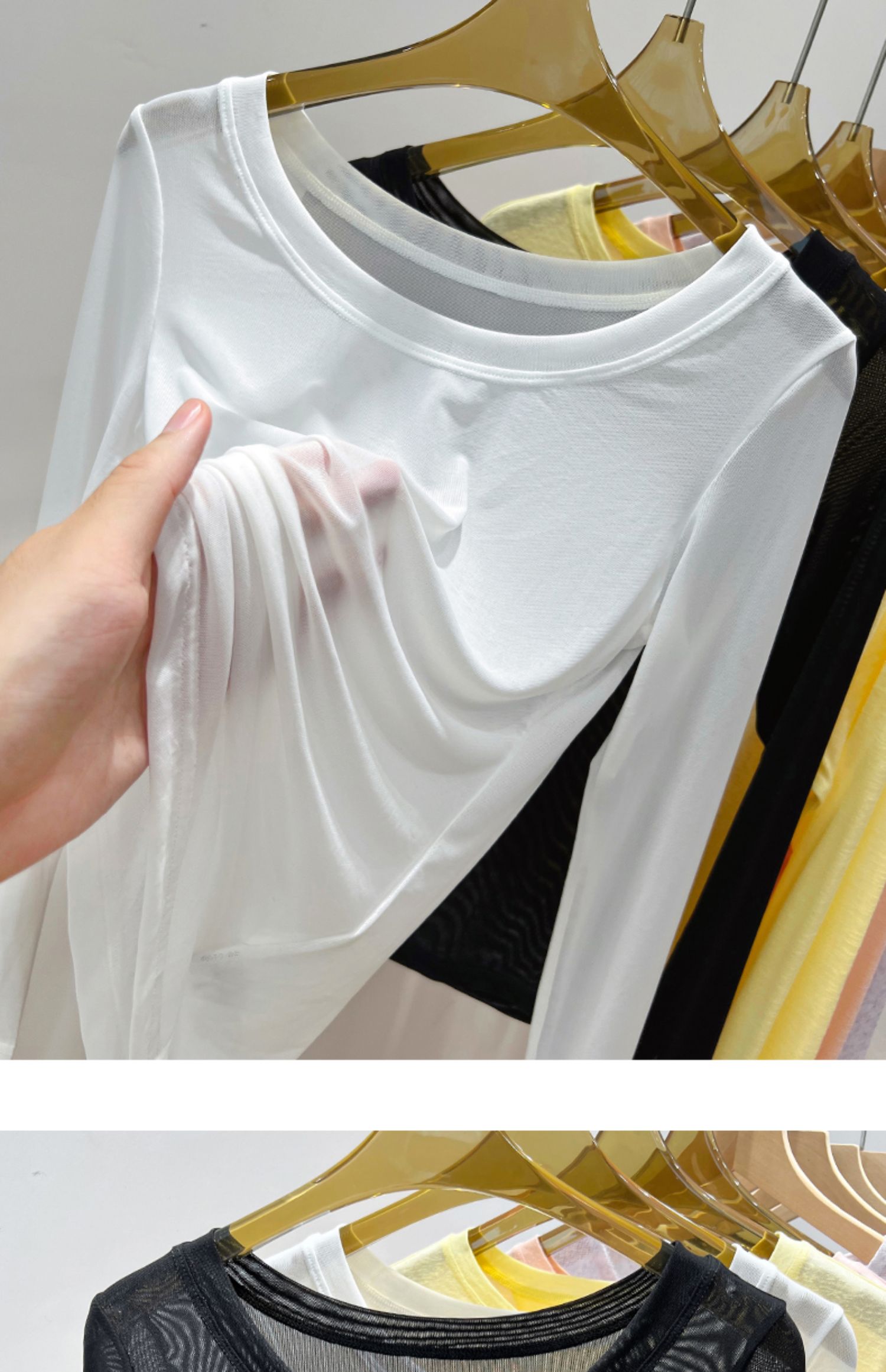 黑色網紗打底衫女春秋長袖t恤低領透明紗衣薄內搭蕾絲上衣高級感