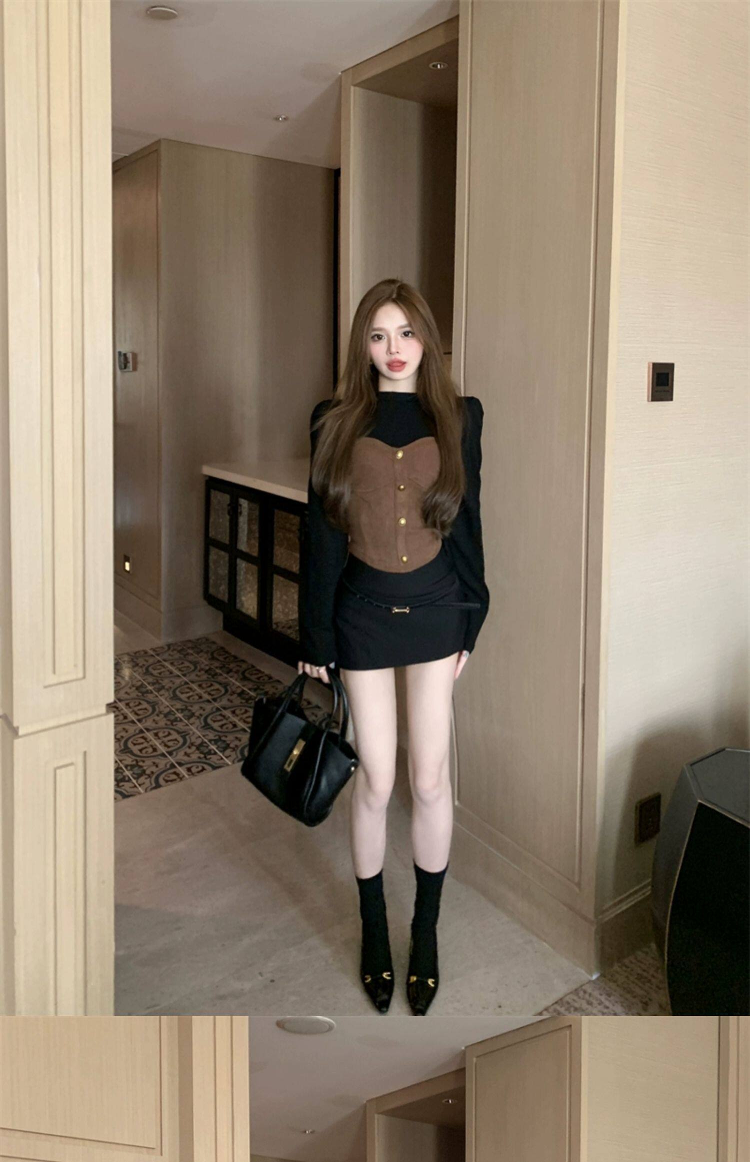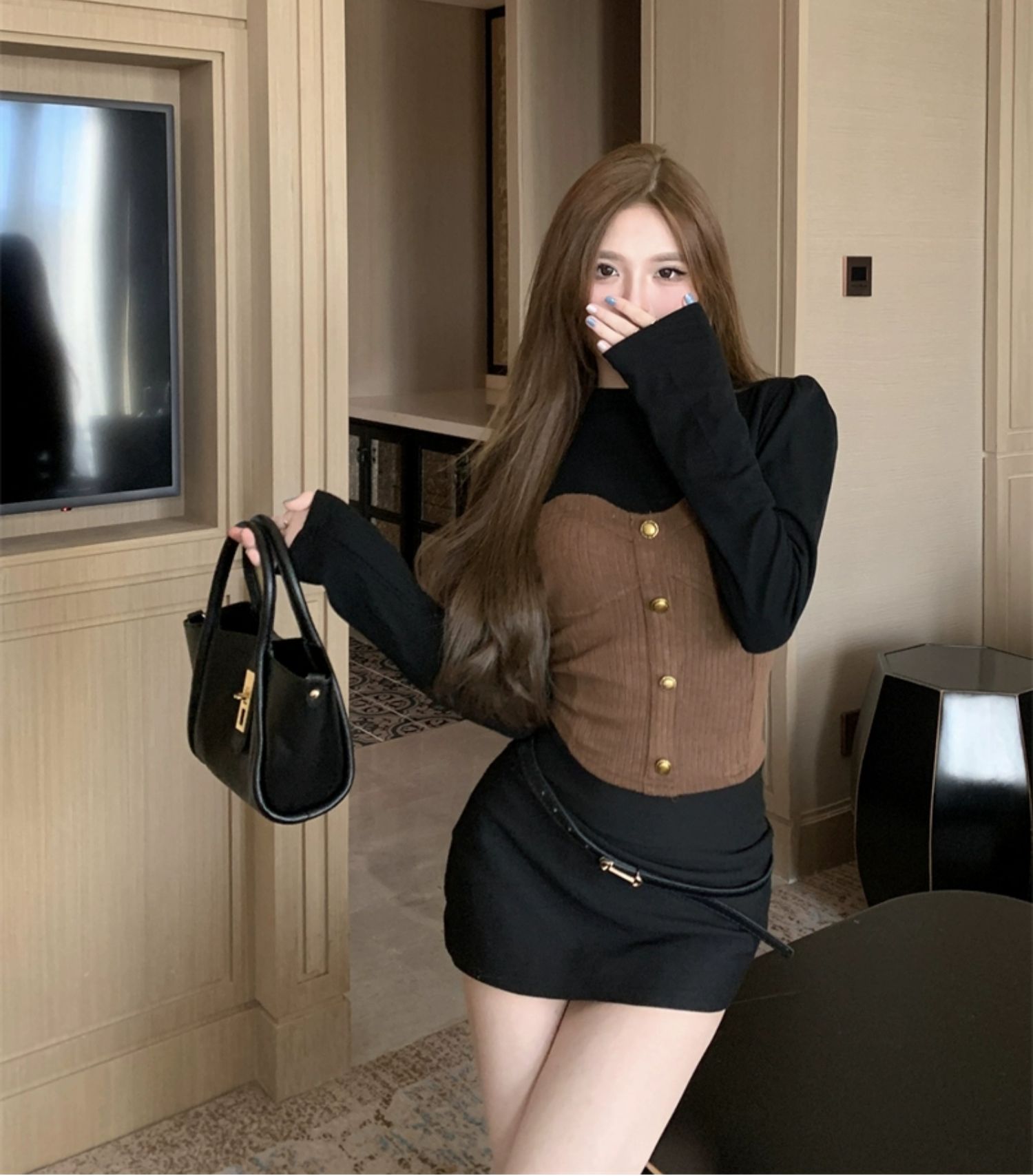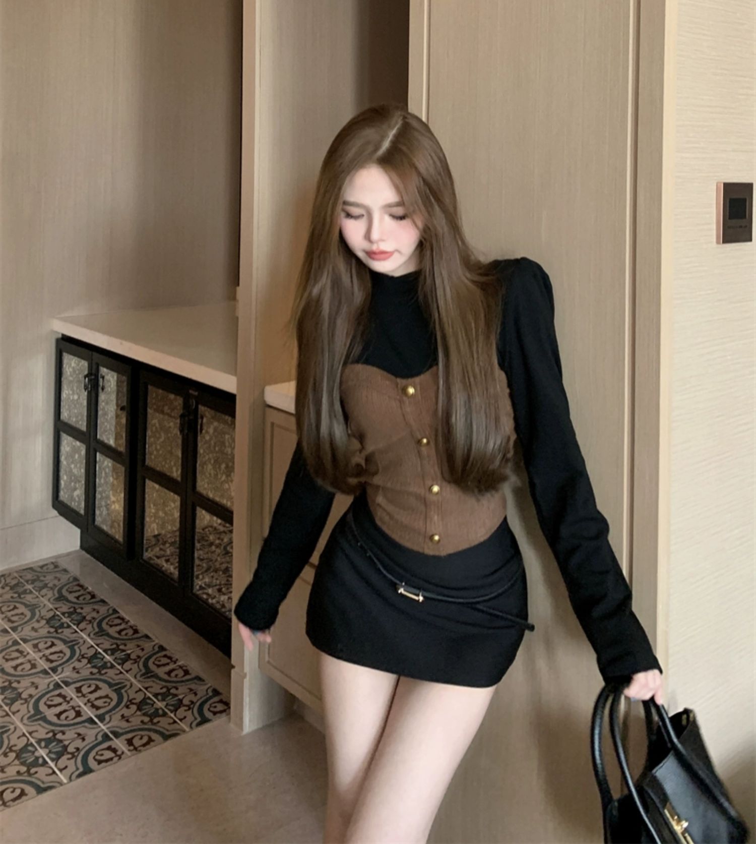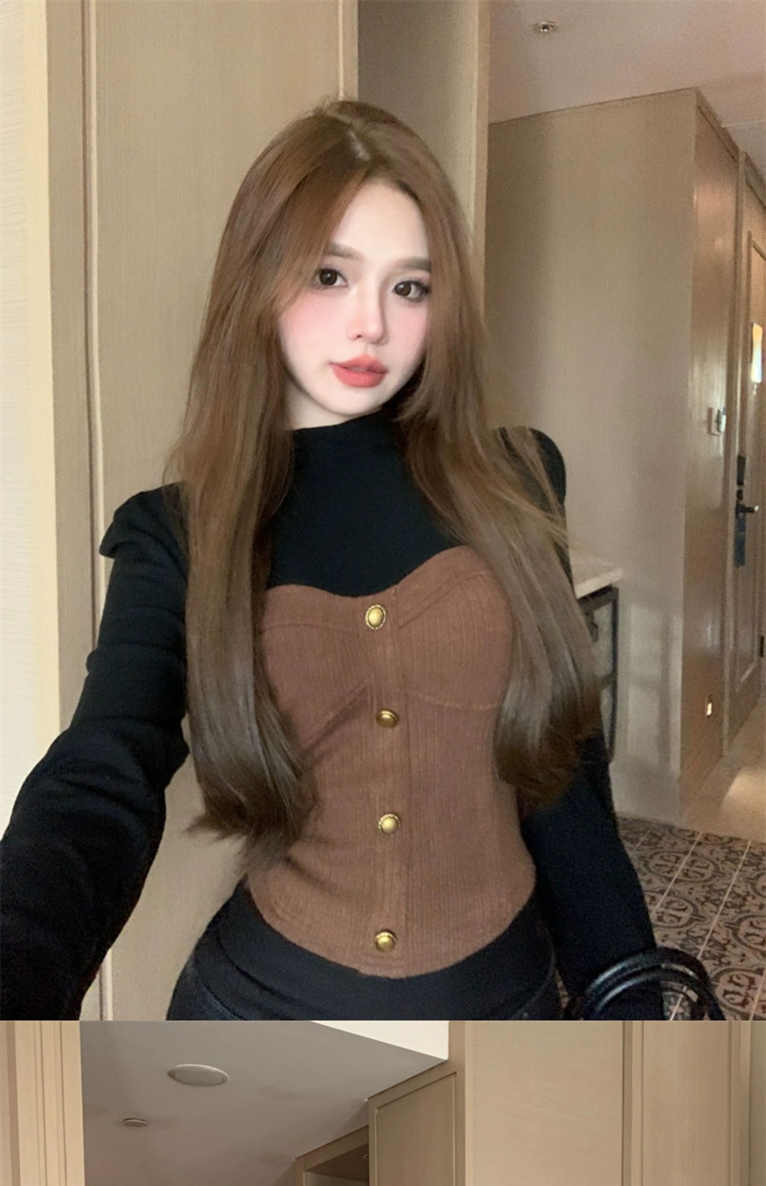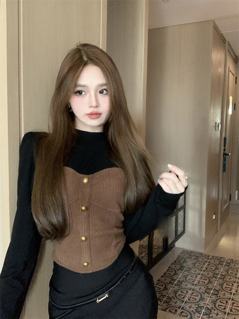 小香風泡泡袖針織衫女秋冬假兩件半高領上衣打底衫內搭美拉德毛衣