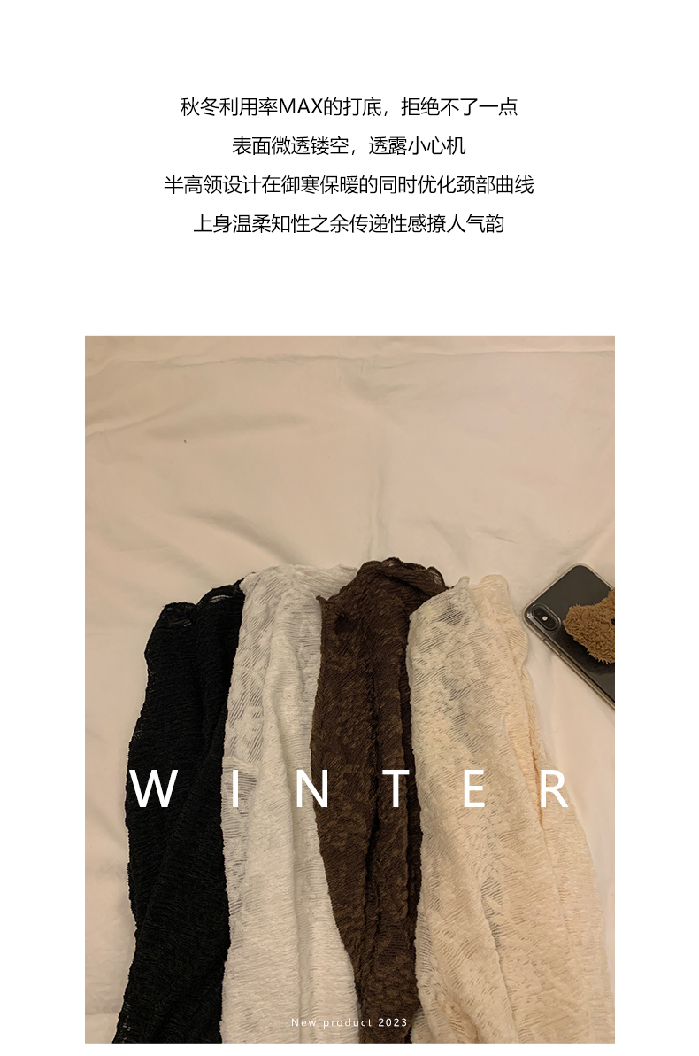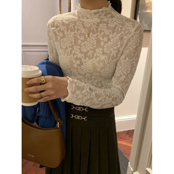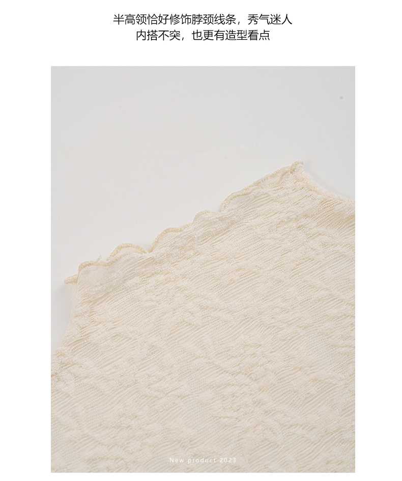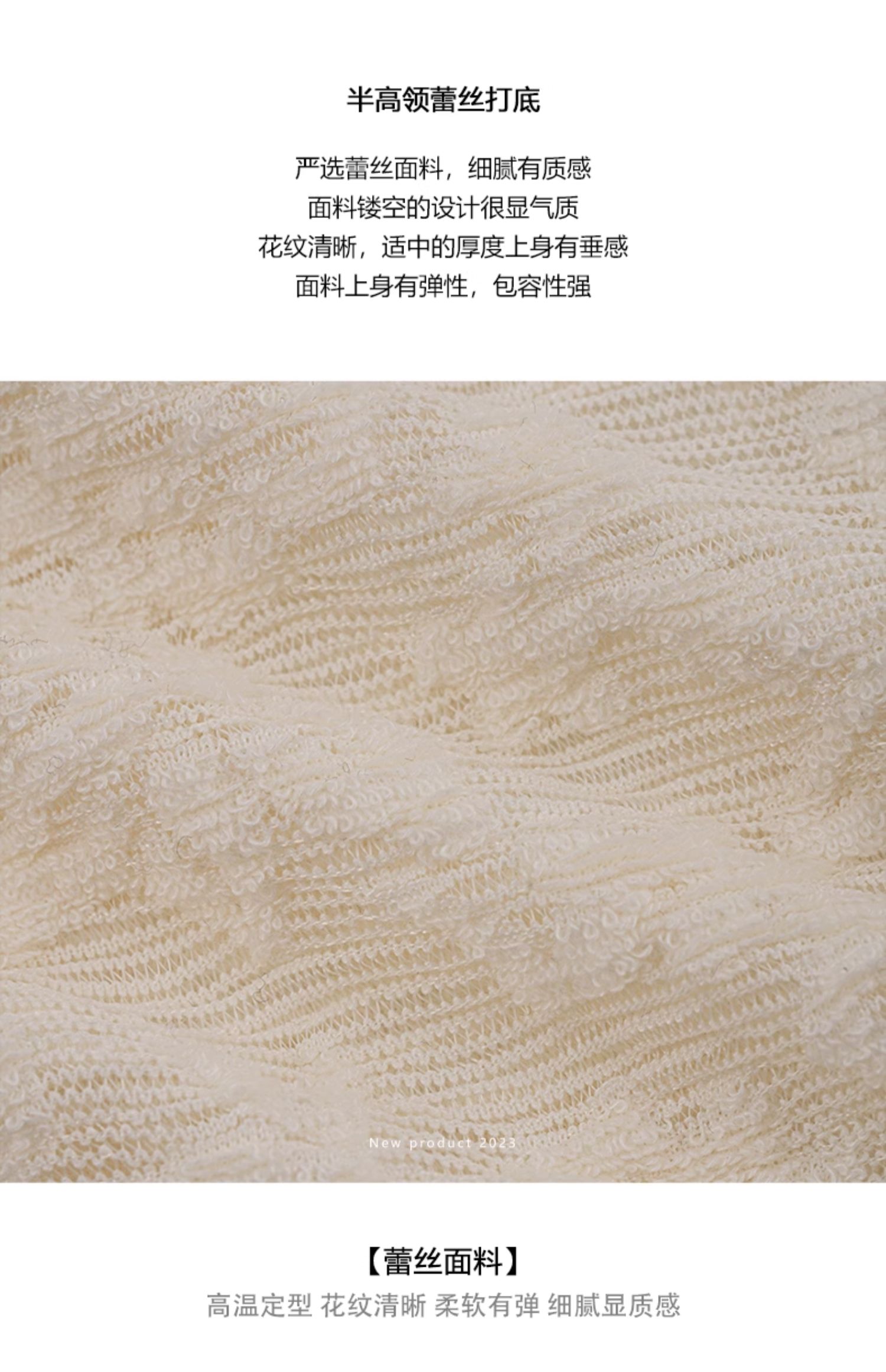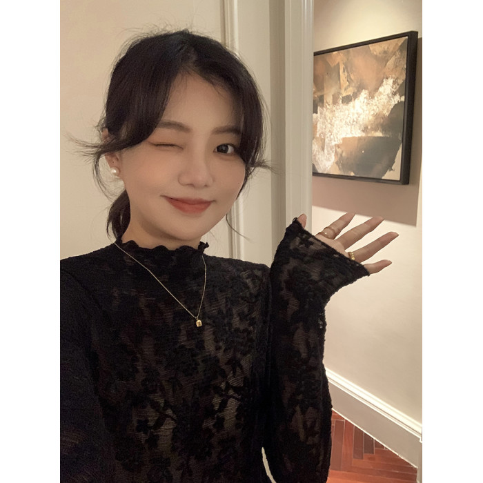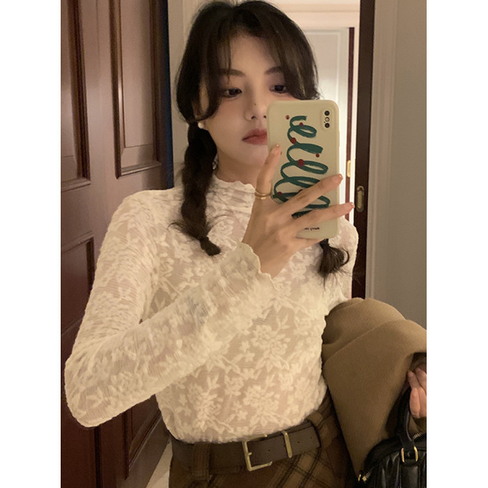 2025年秋新款百搭洋氣網紗小衫女半高領蕾絲打底衫長袖毛衣內搭紗