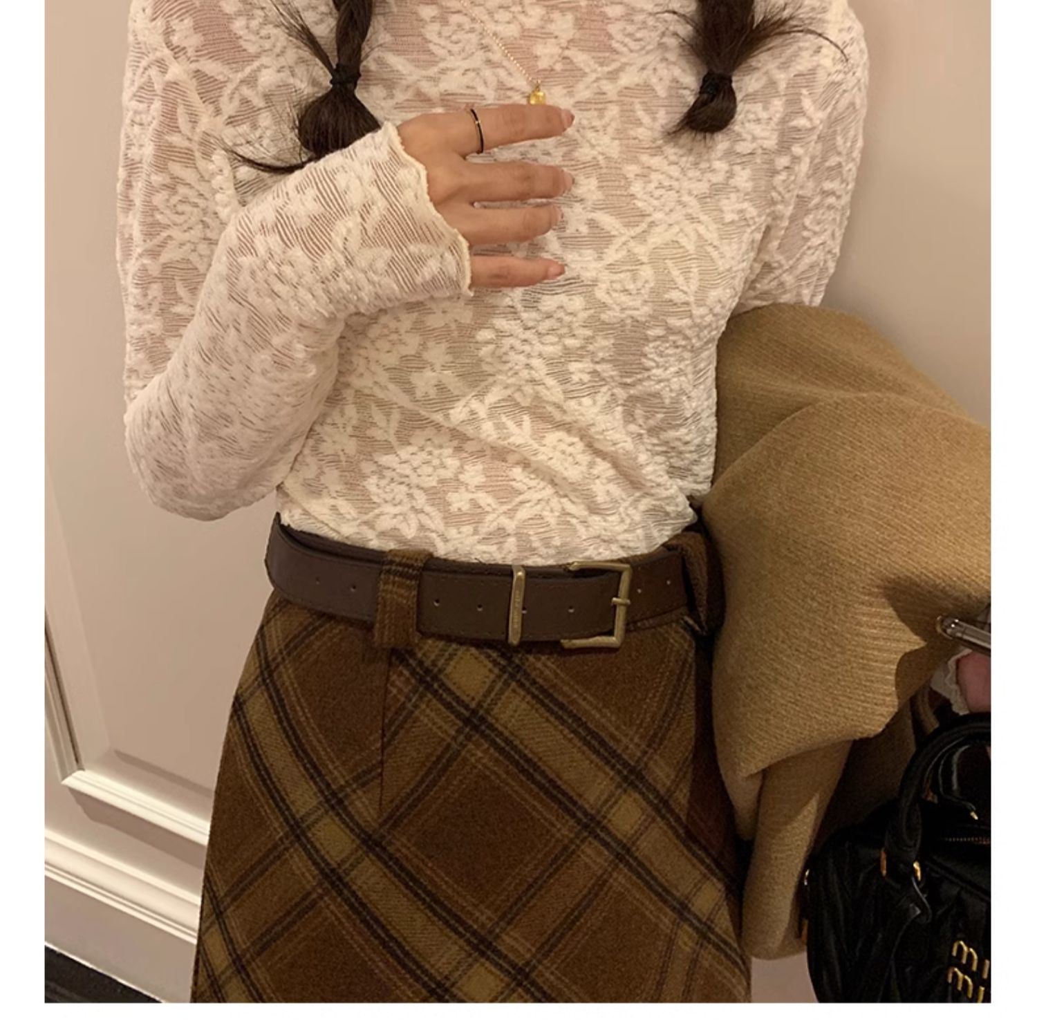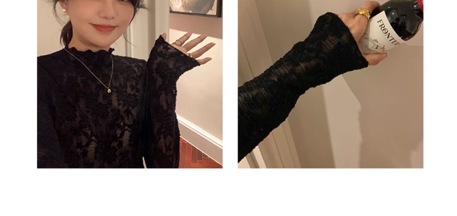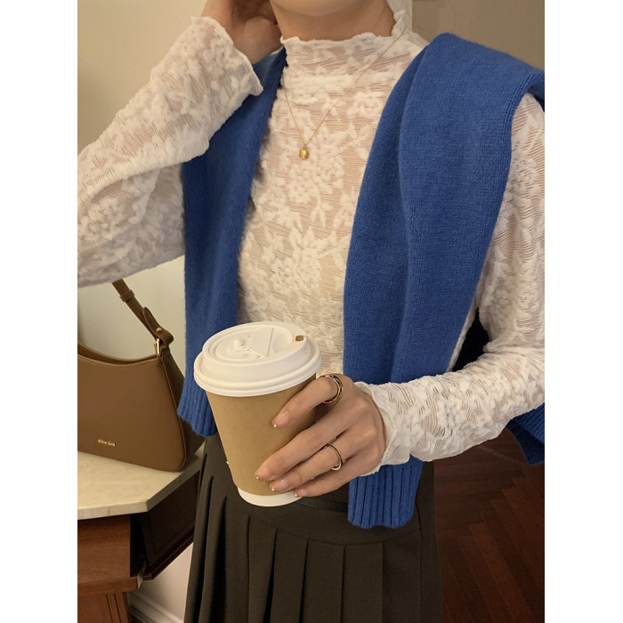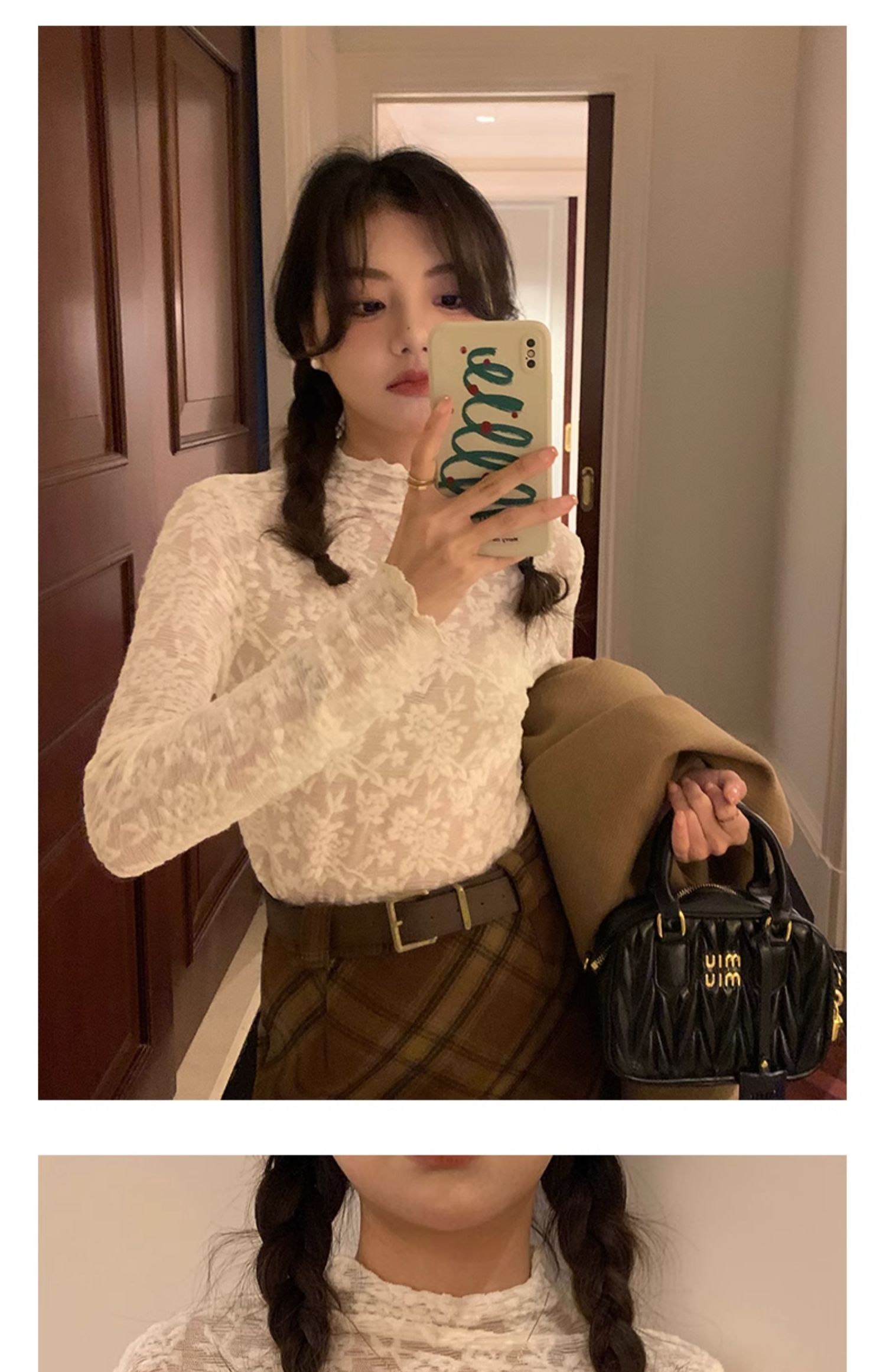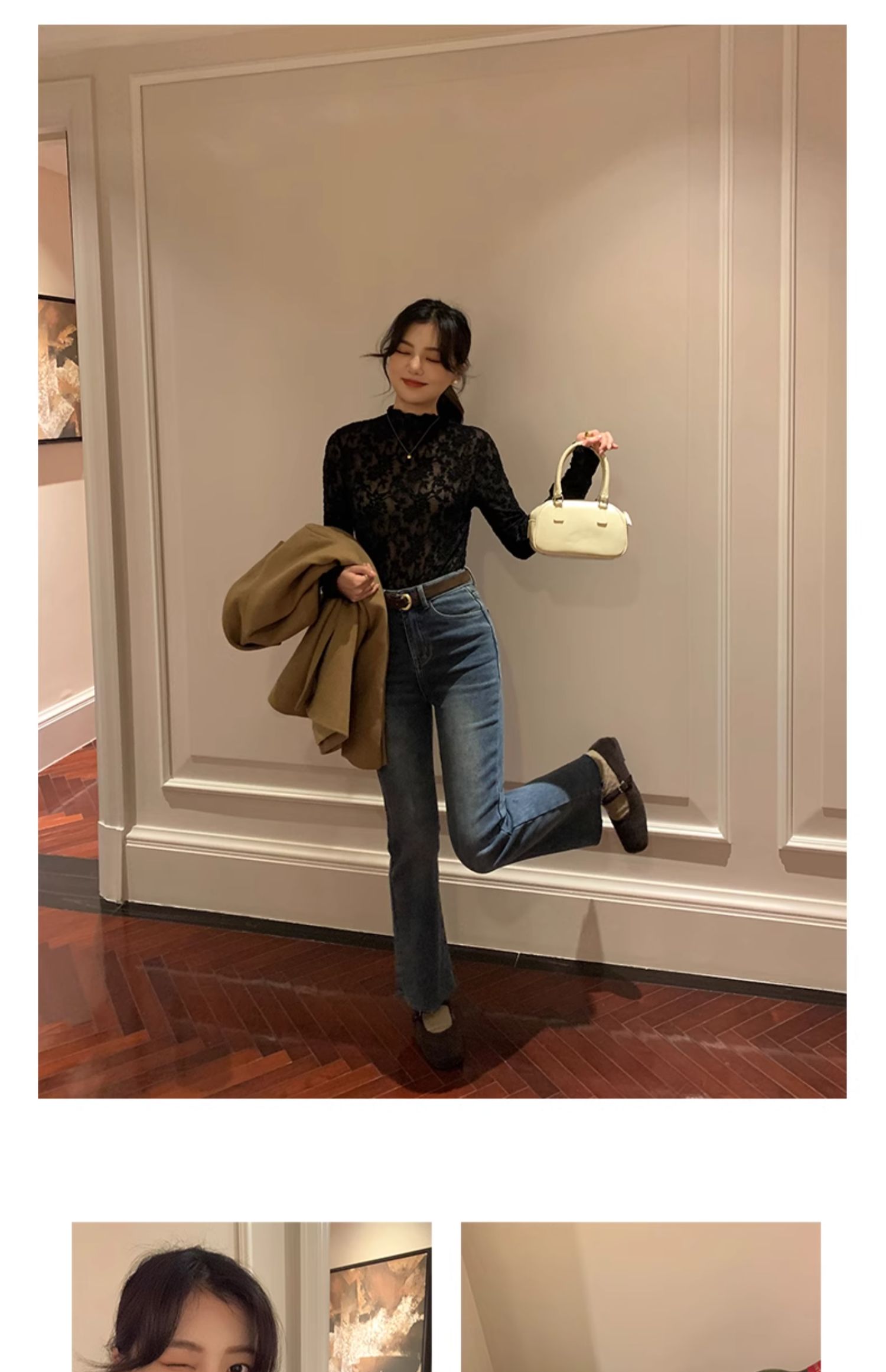 2025年秋新款百搭洋氣網紗小衫女半高領蕾絲打底衫長袖毛衣內搭紗