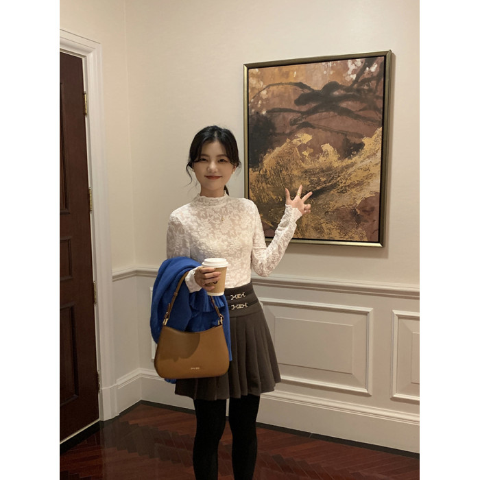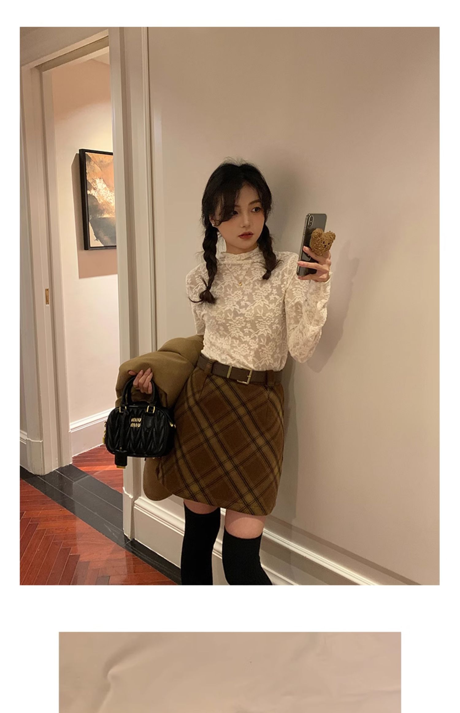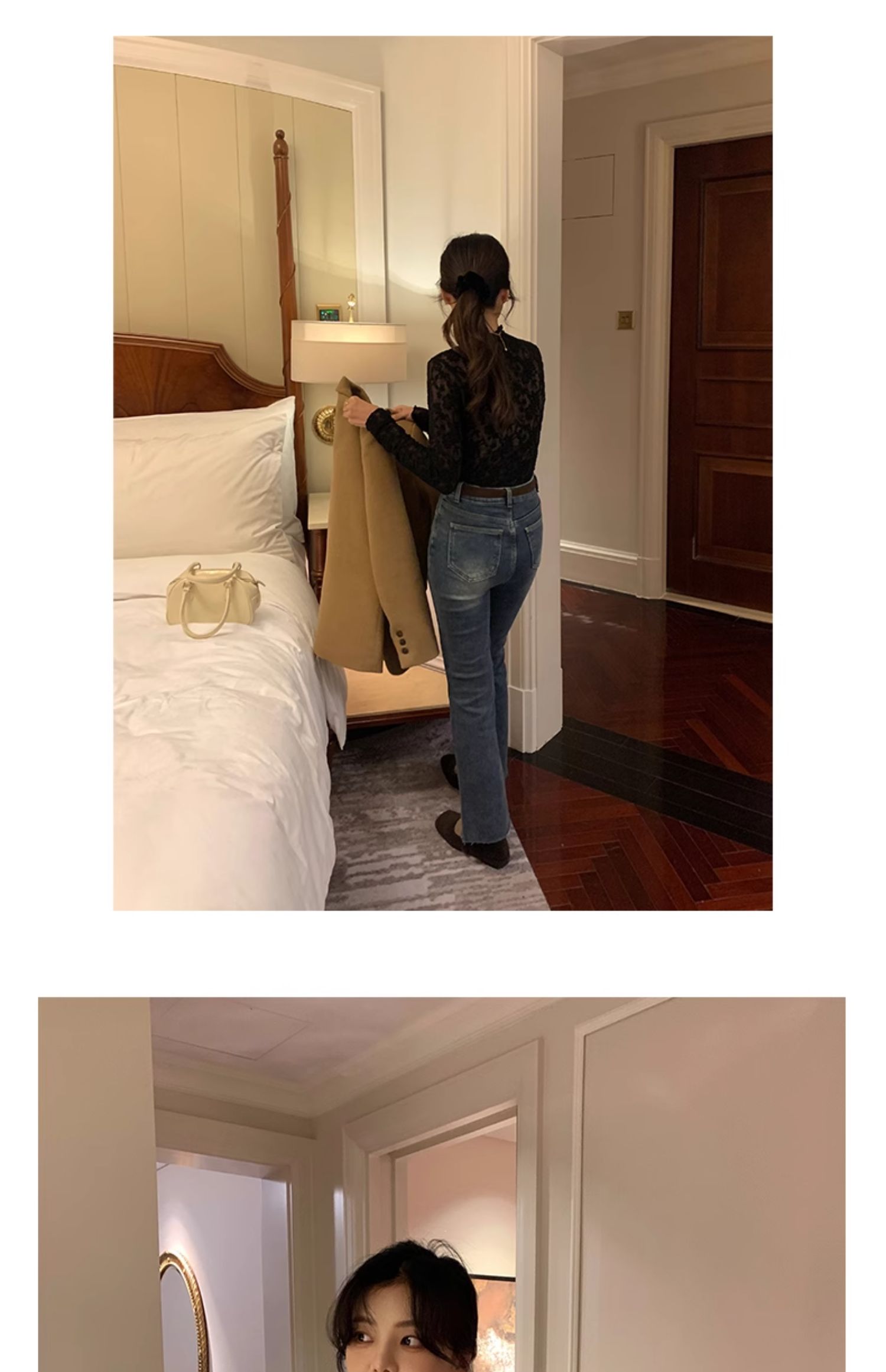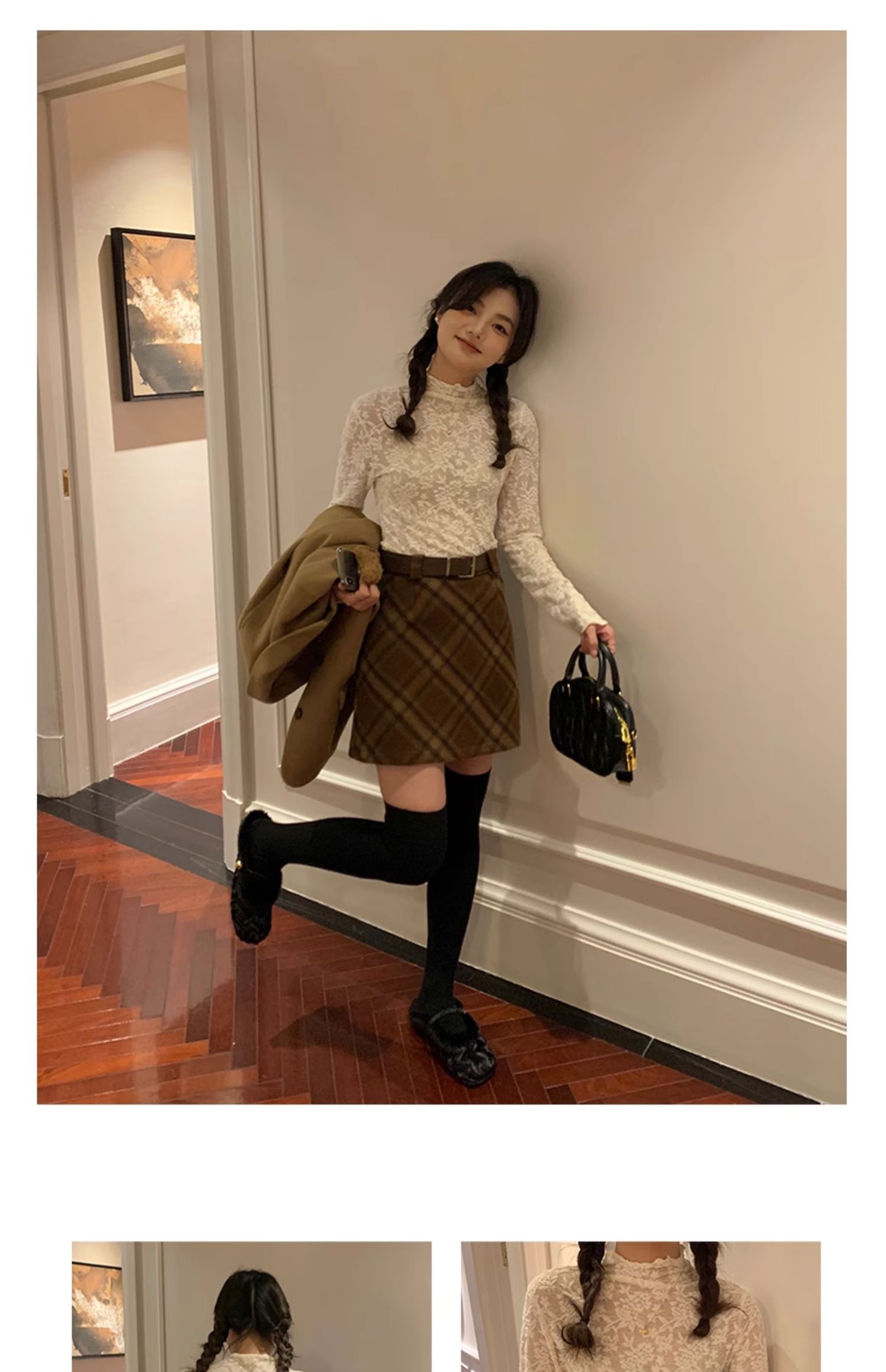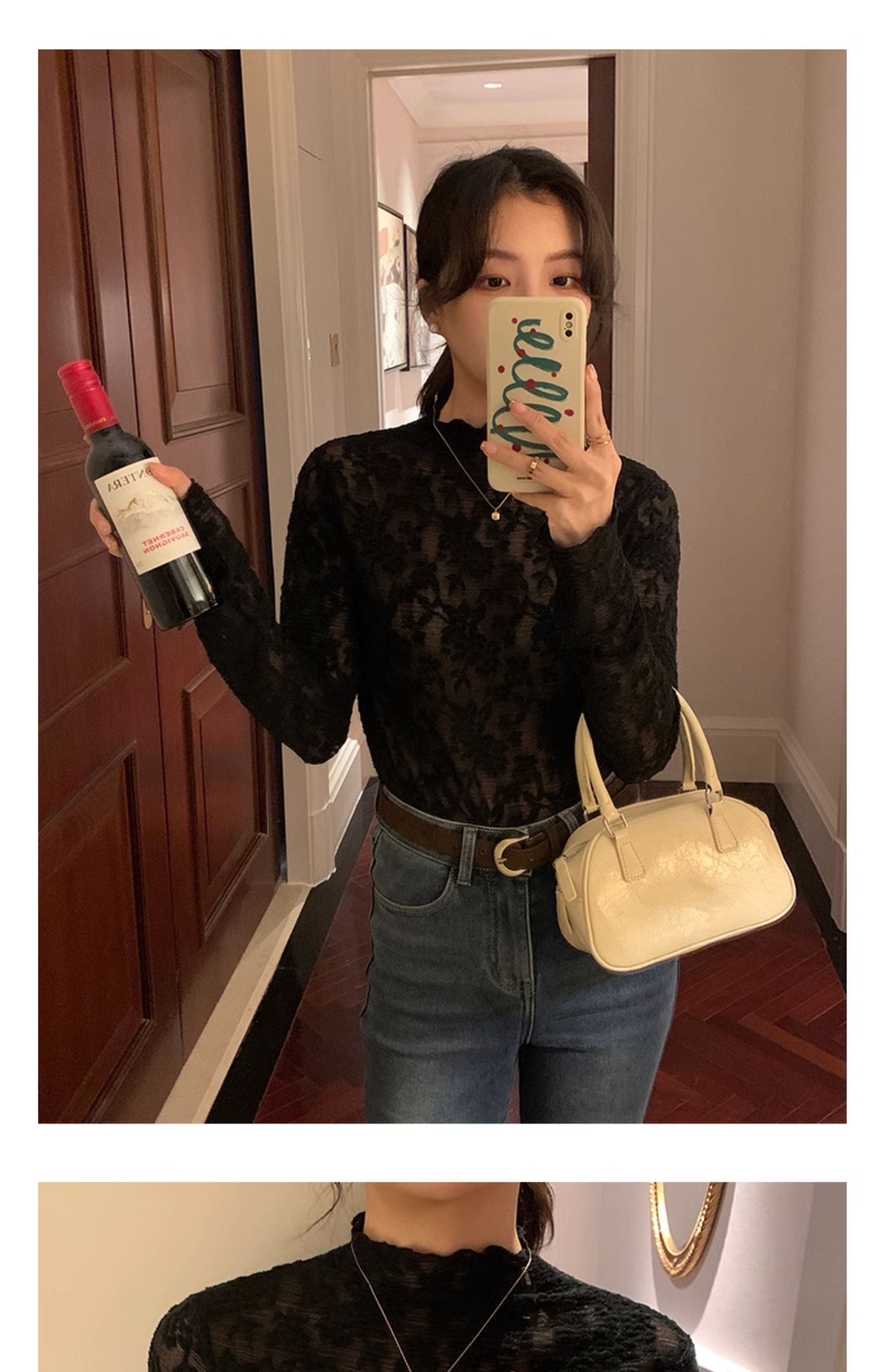 2025年秋新款百搭洋氣網紗小衫女半高領蕾絲打底衫長袖毛衣內搭紗