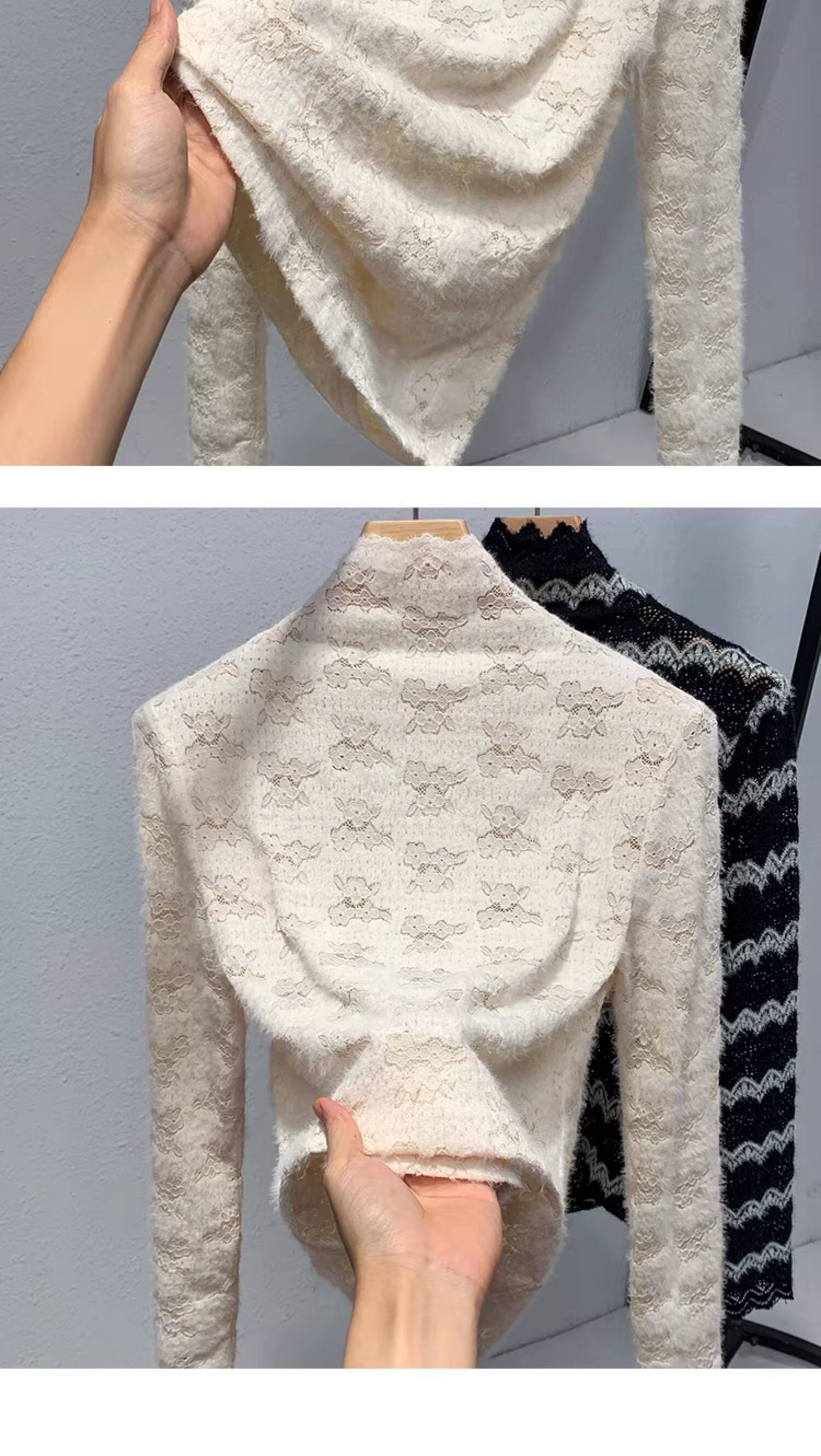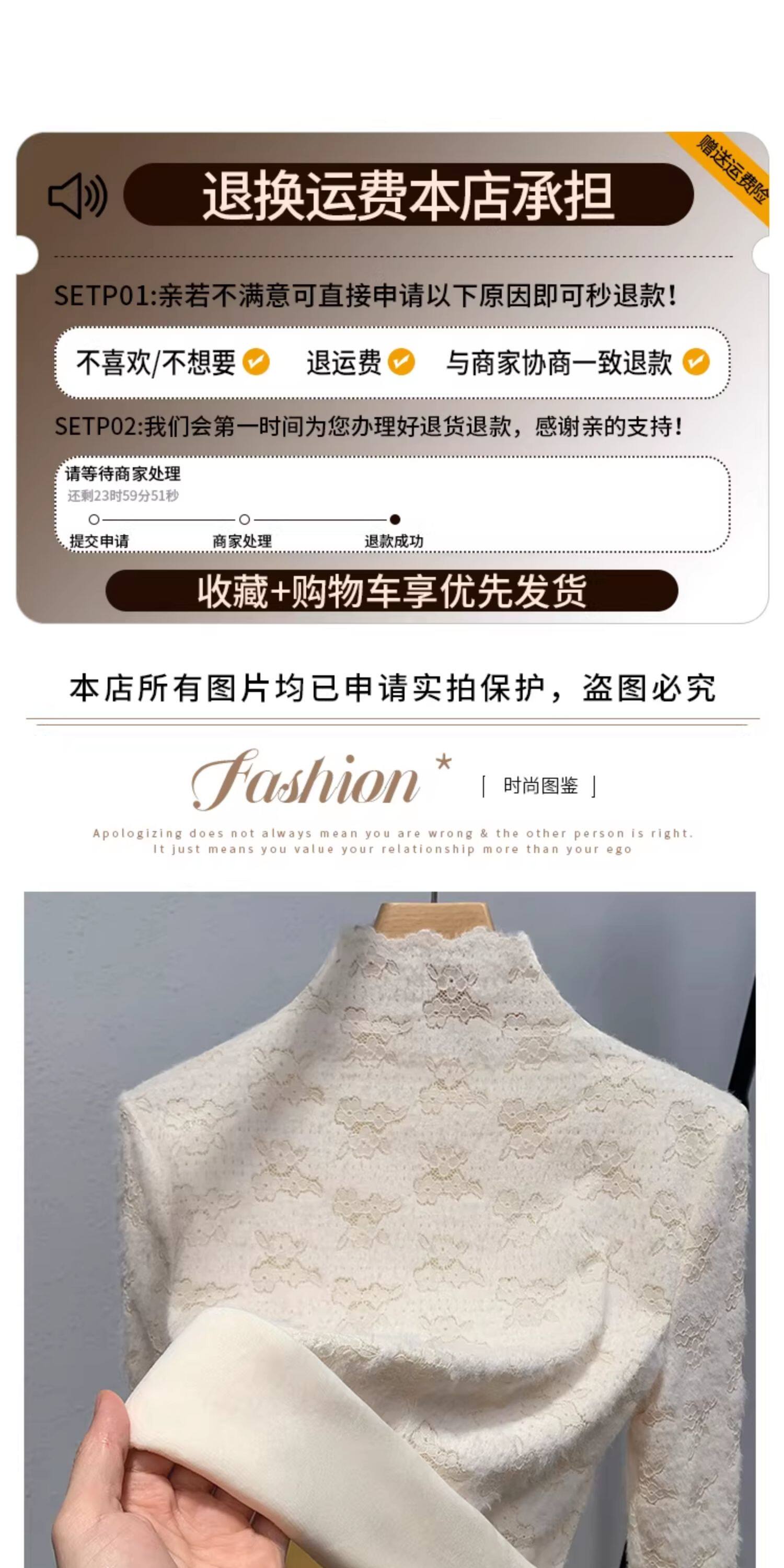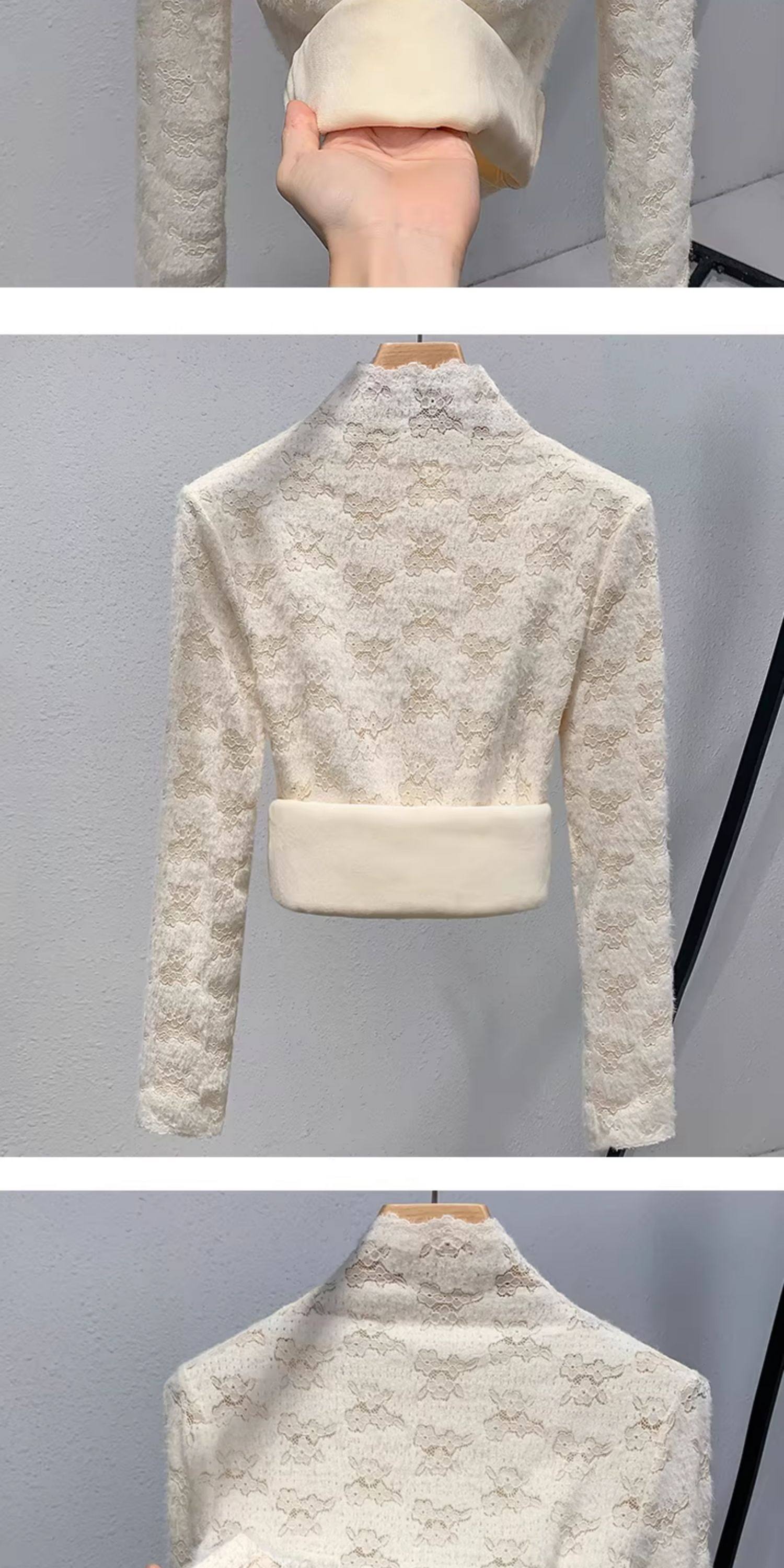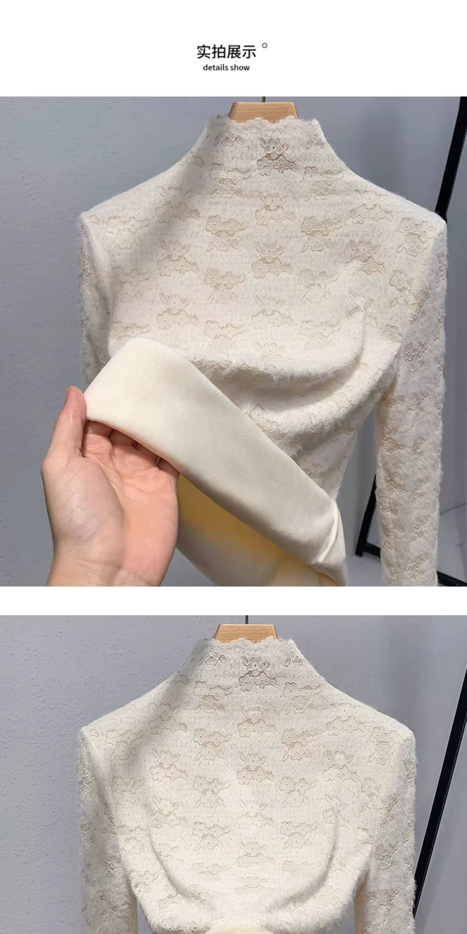 蕾絲加絨打底衫女內搭2025秋冬新款時尚洋氣加厚保暖半高領上衣女