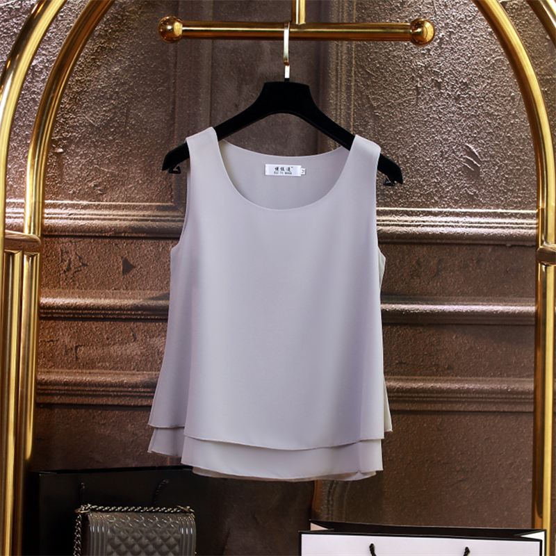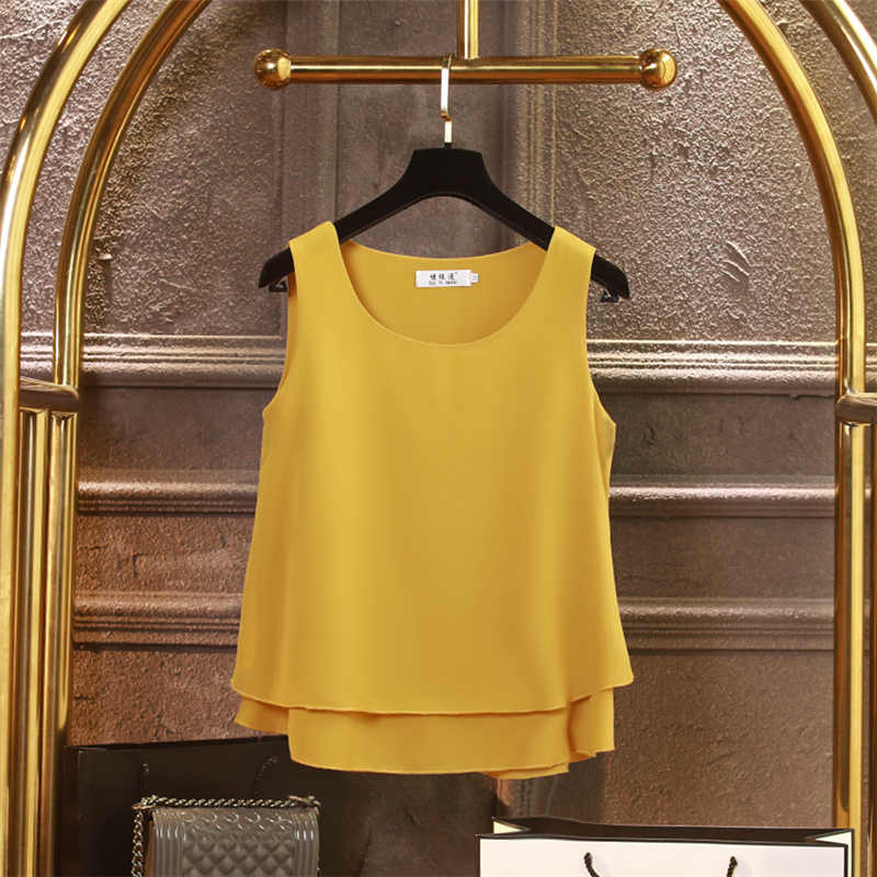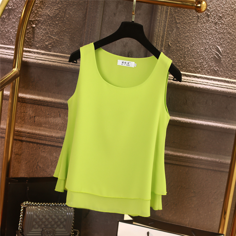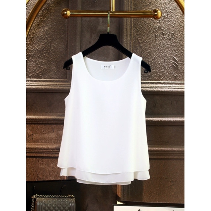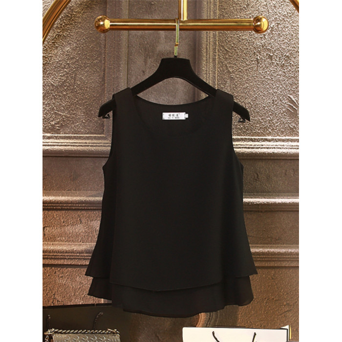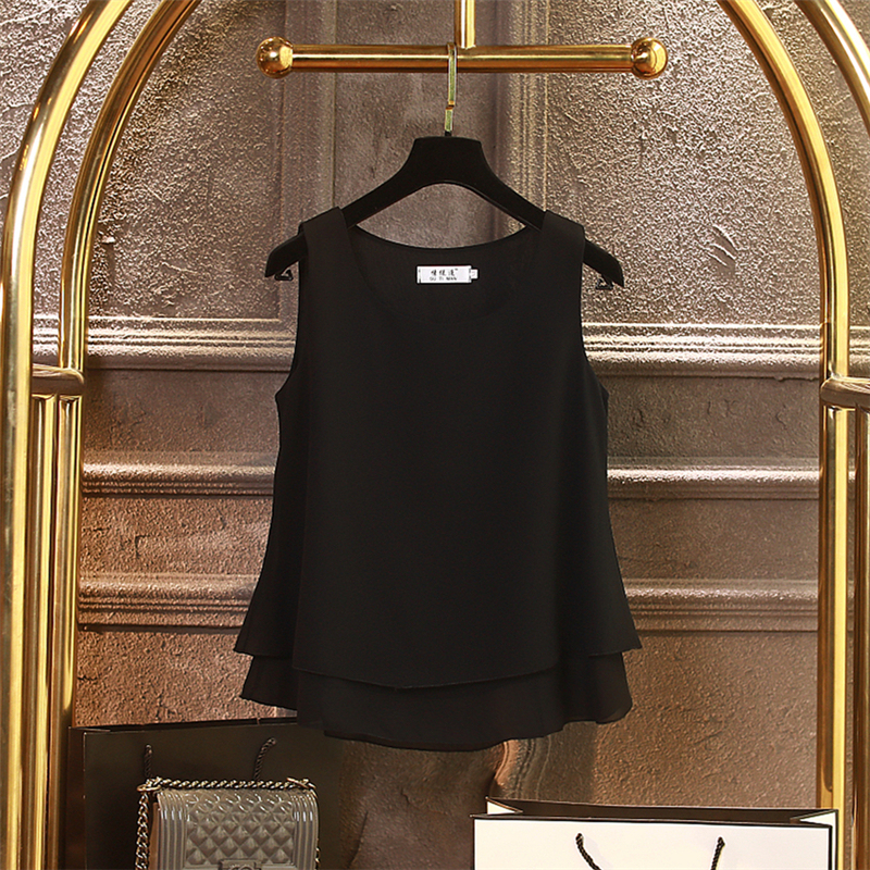 2025夏季新款韓版大碼遮肚子雪紡衫上衣寬松外穿打底無袖背心女夏