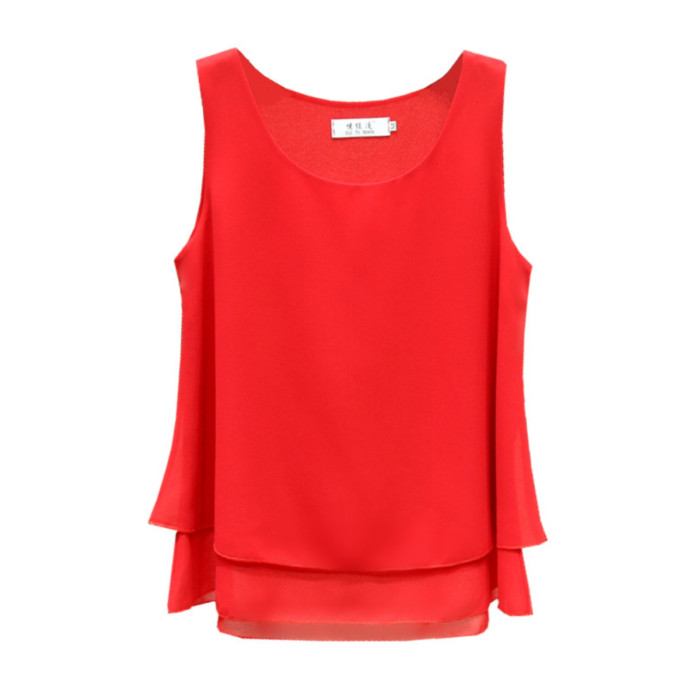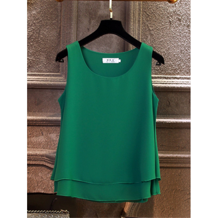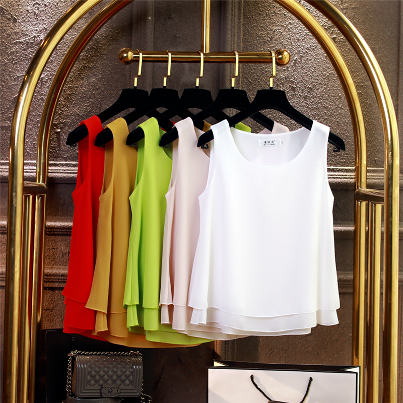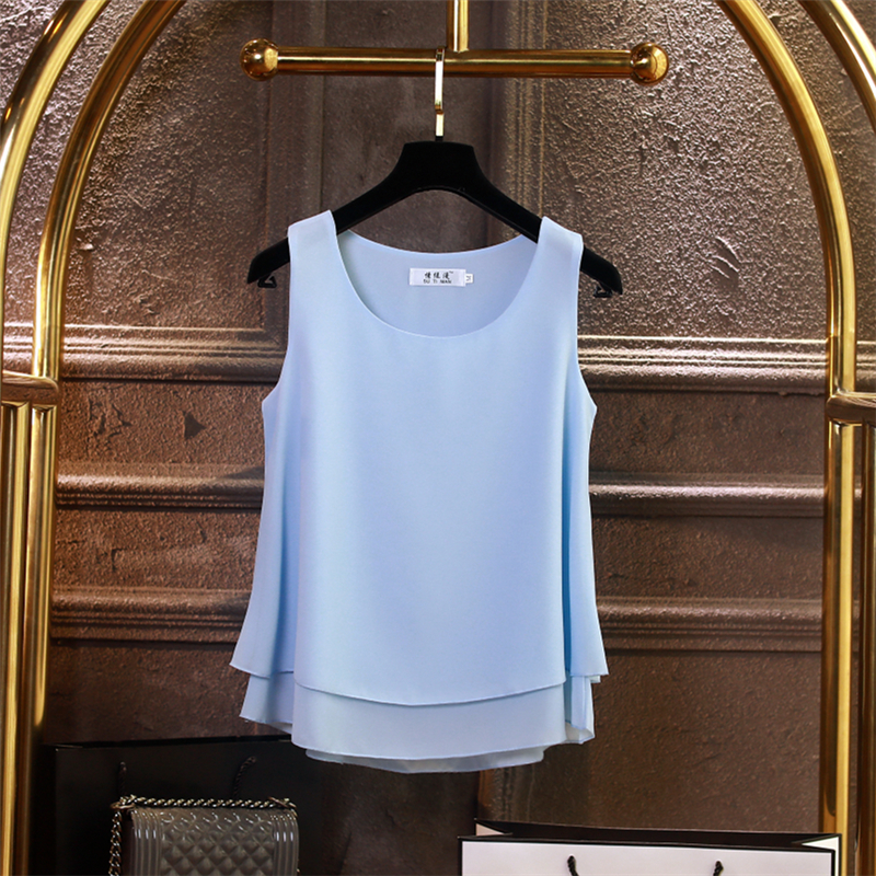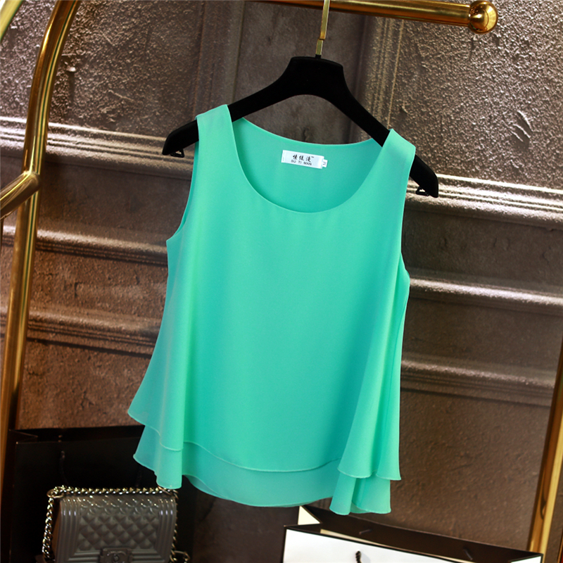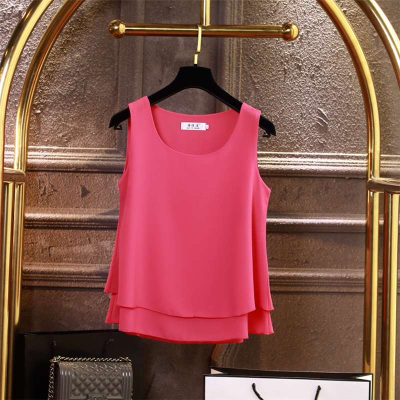 2025夏季新款韓版大碼遮肚子雪紡衫上衣寬松外穿打底無袖背心女夏