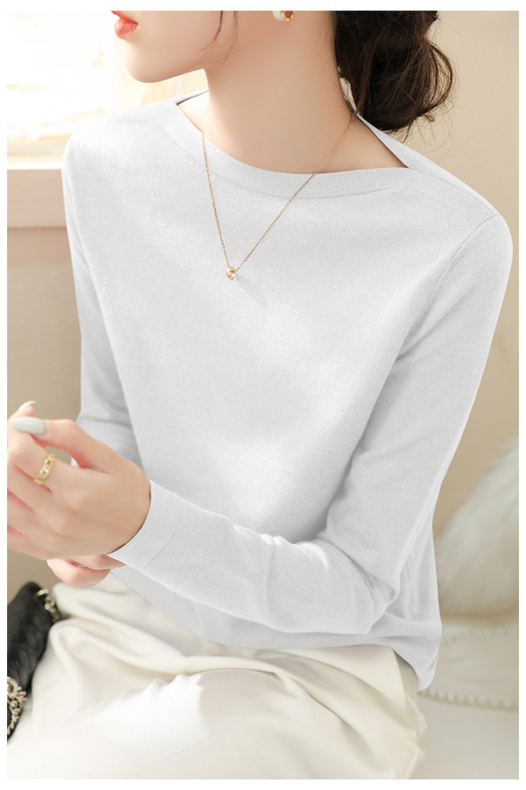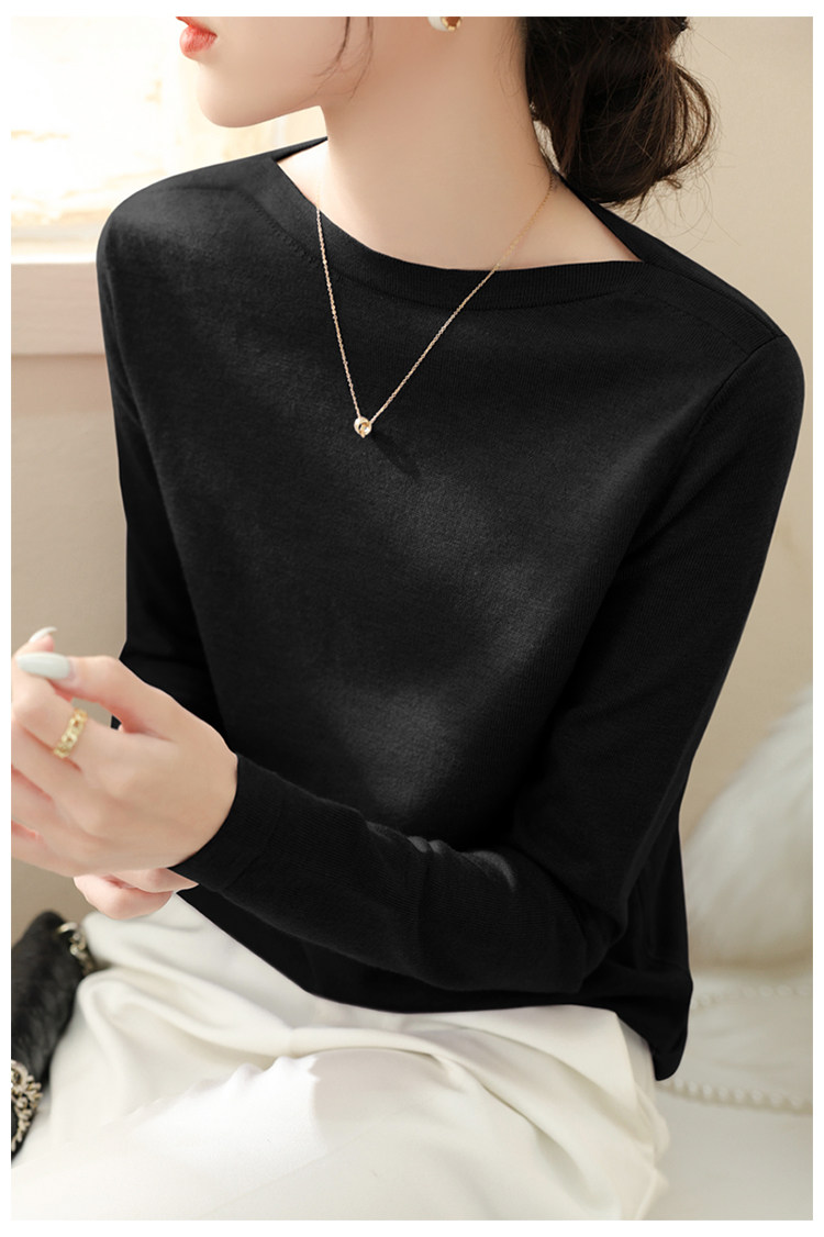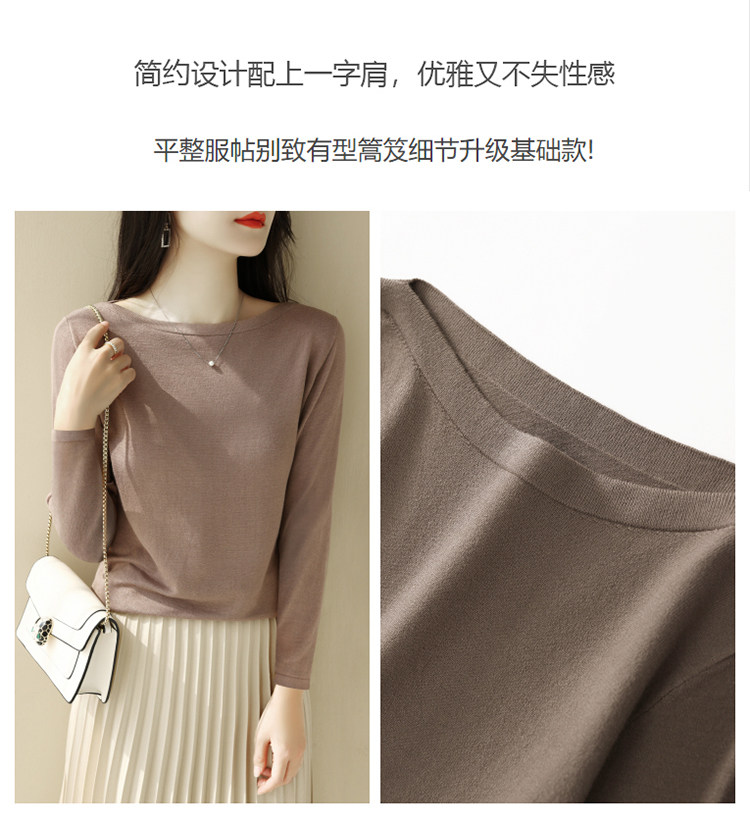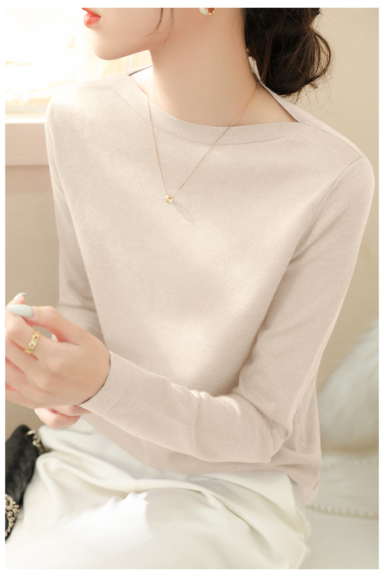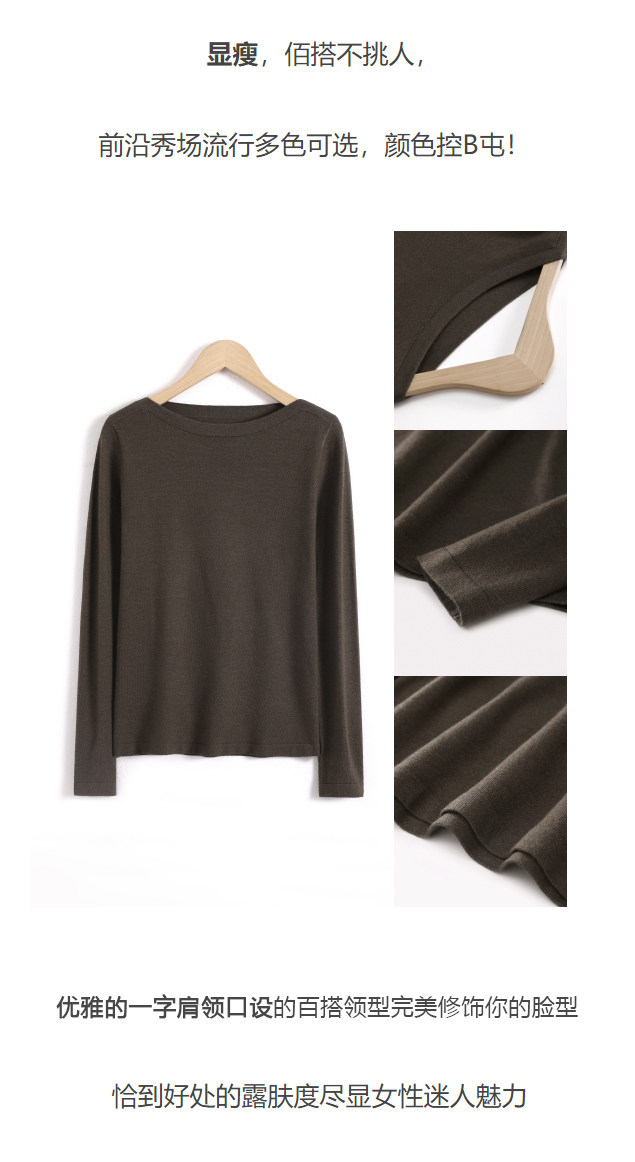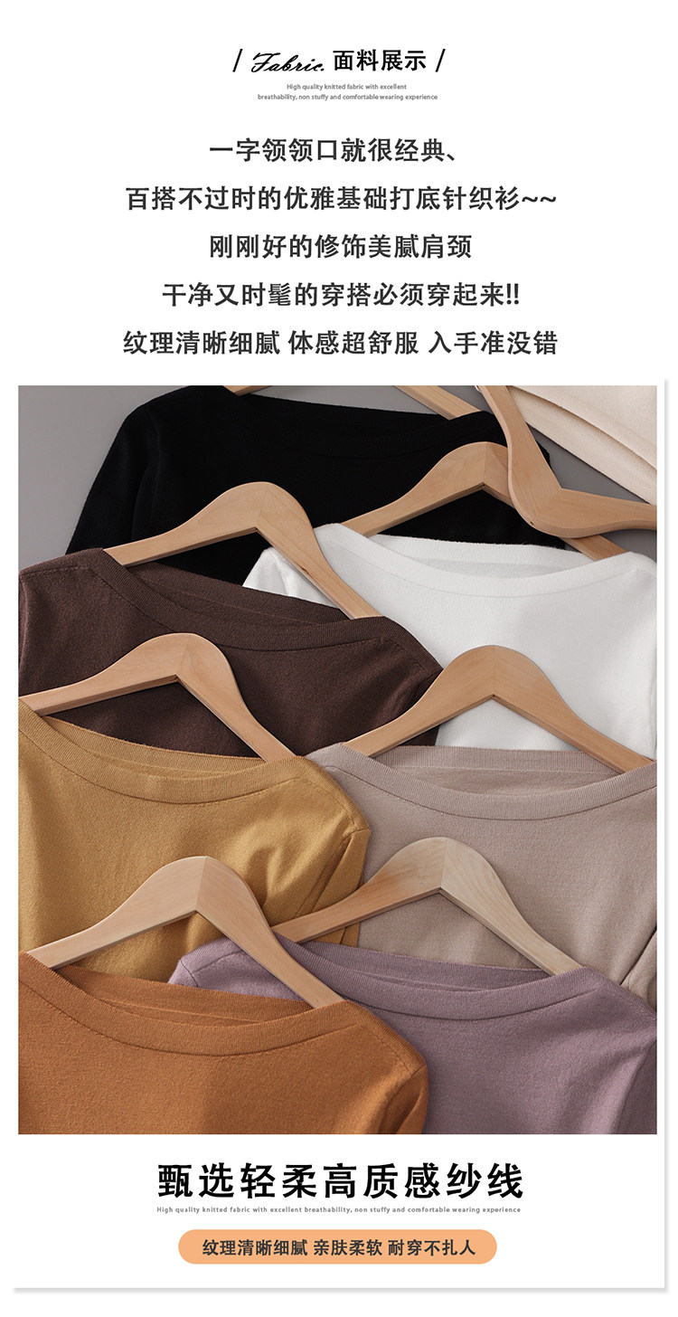 高級法式一字肩長袖針織打底衫女秋冬新款修身內搭別致慵懶風上衣