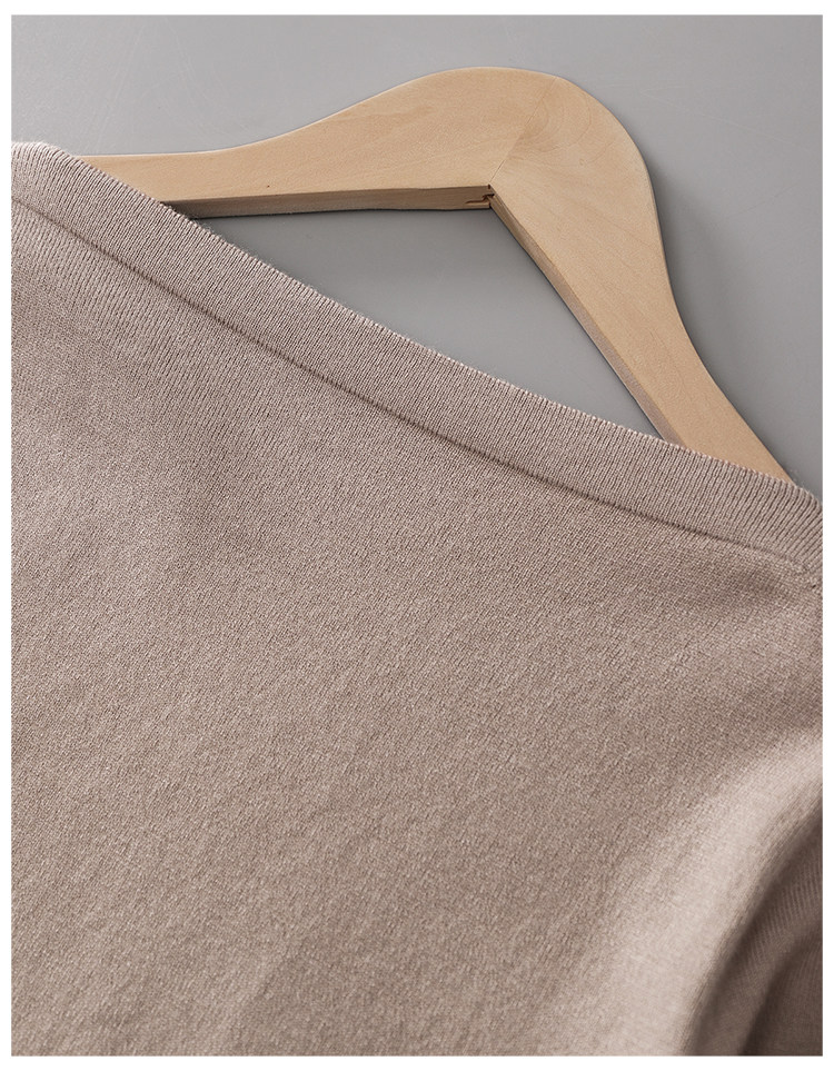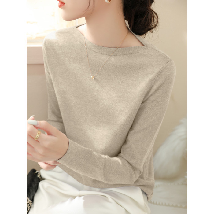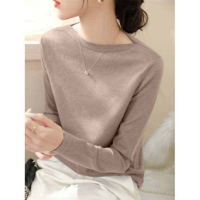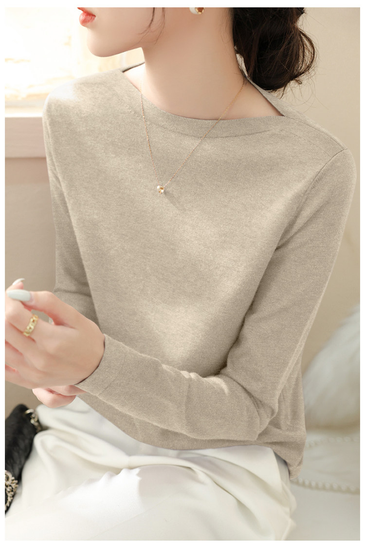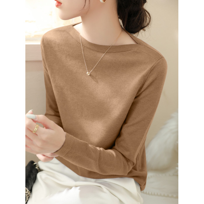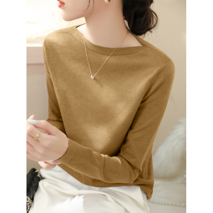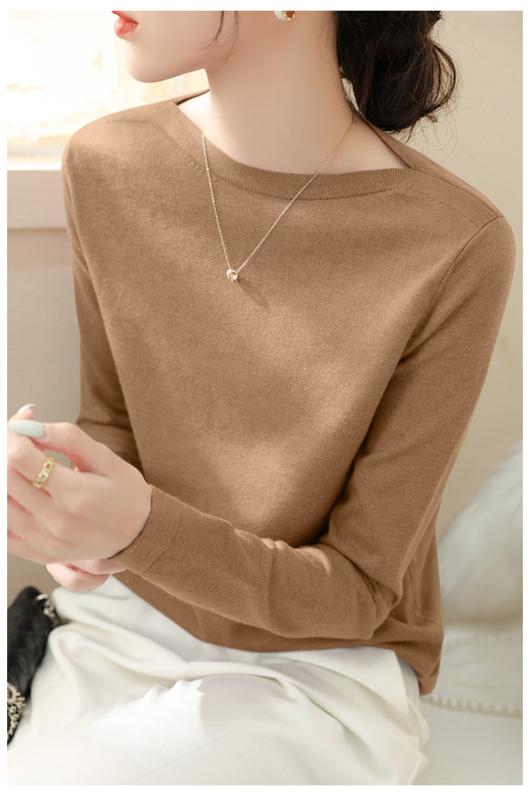 高級法式一字肩長袖針織打底衫女秋冬新款修身內搭別致慵懶風上衣
