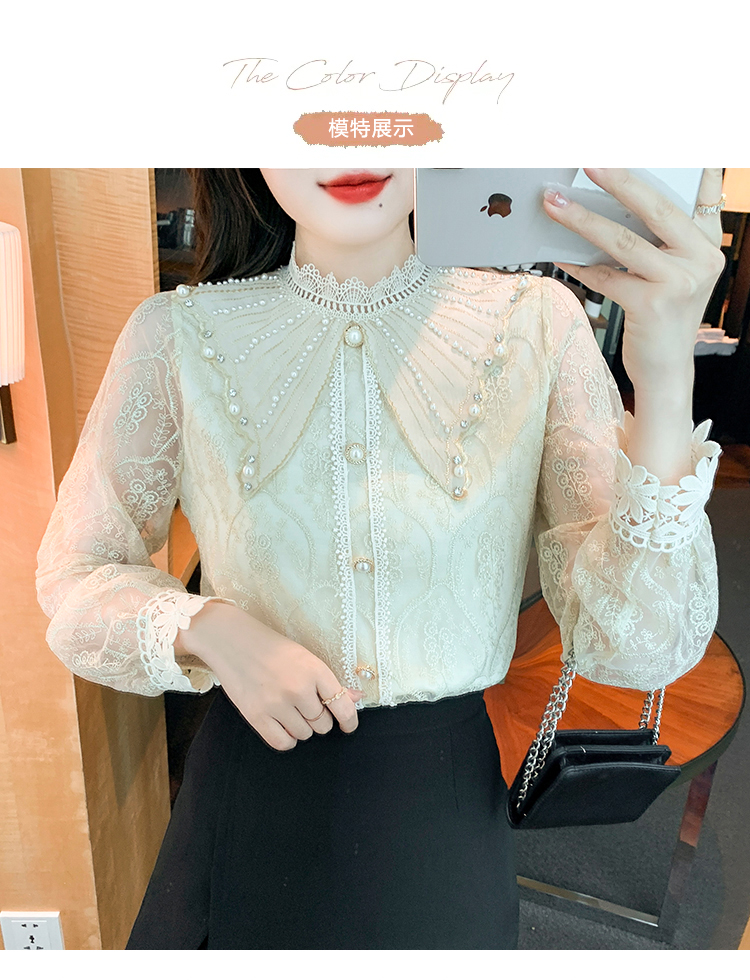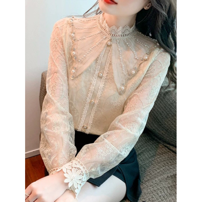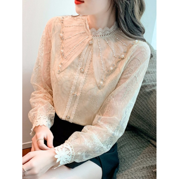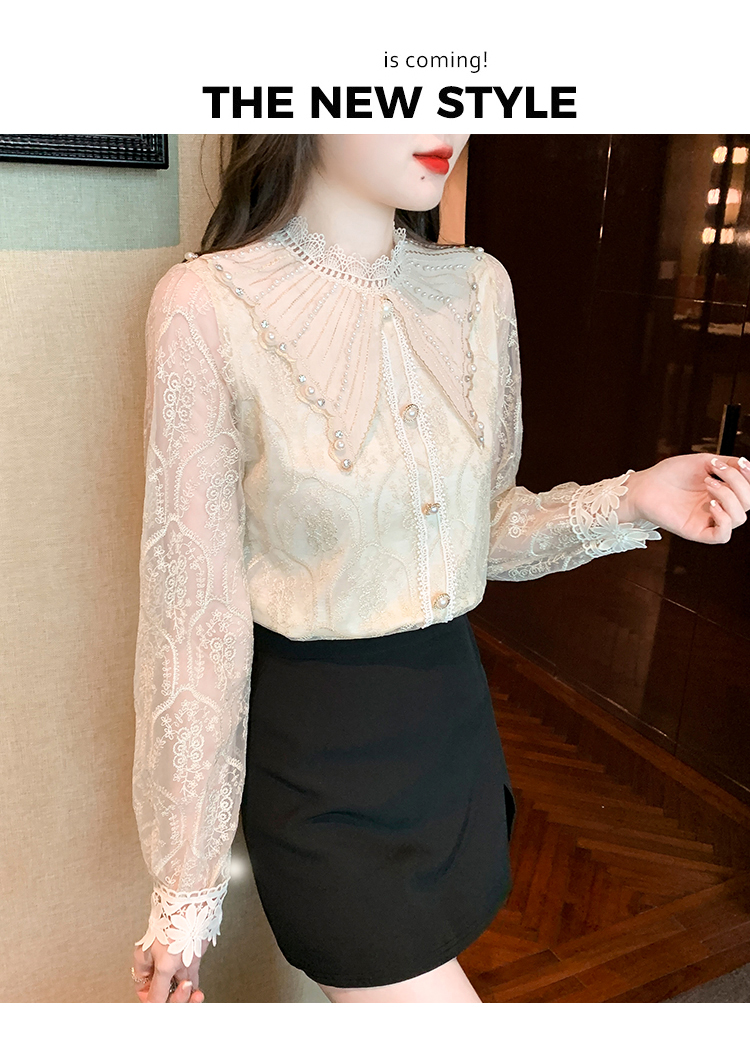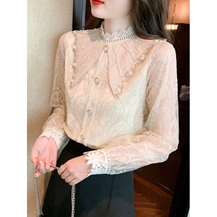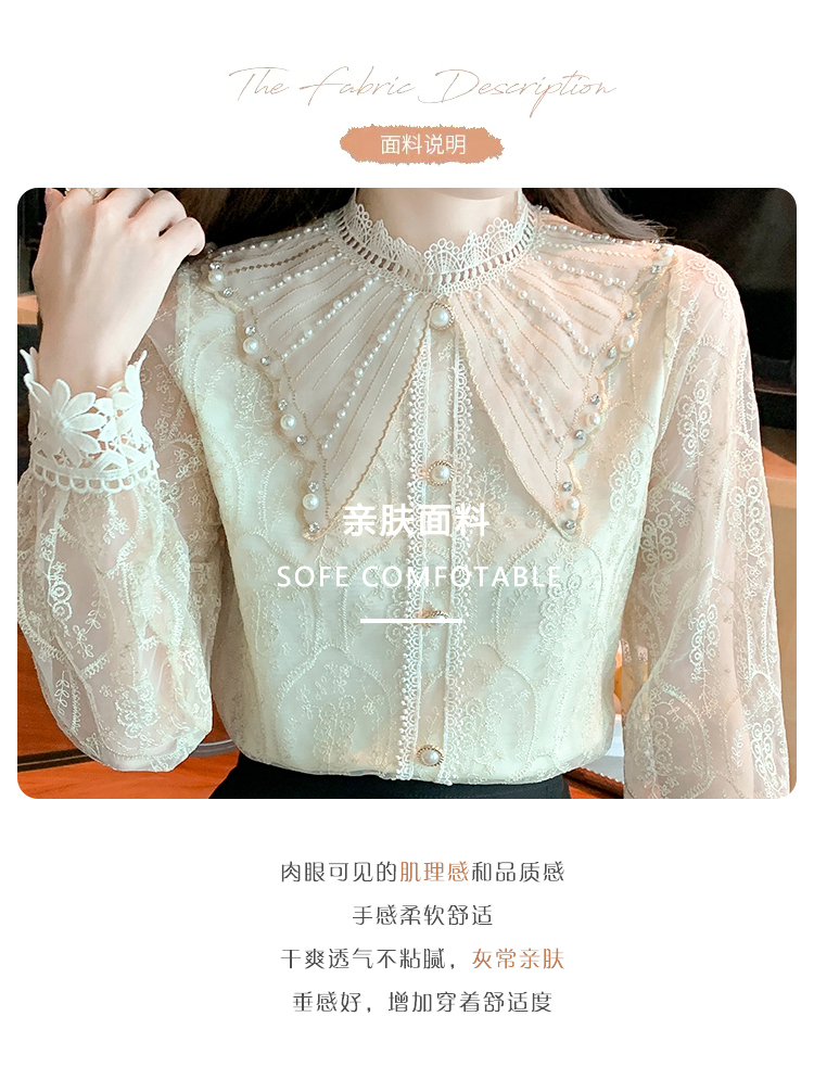 歐貨蕾絲襯衫女士春裝2025年新款洋氣小衫設計感小衆長袖雪紡上衣
