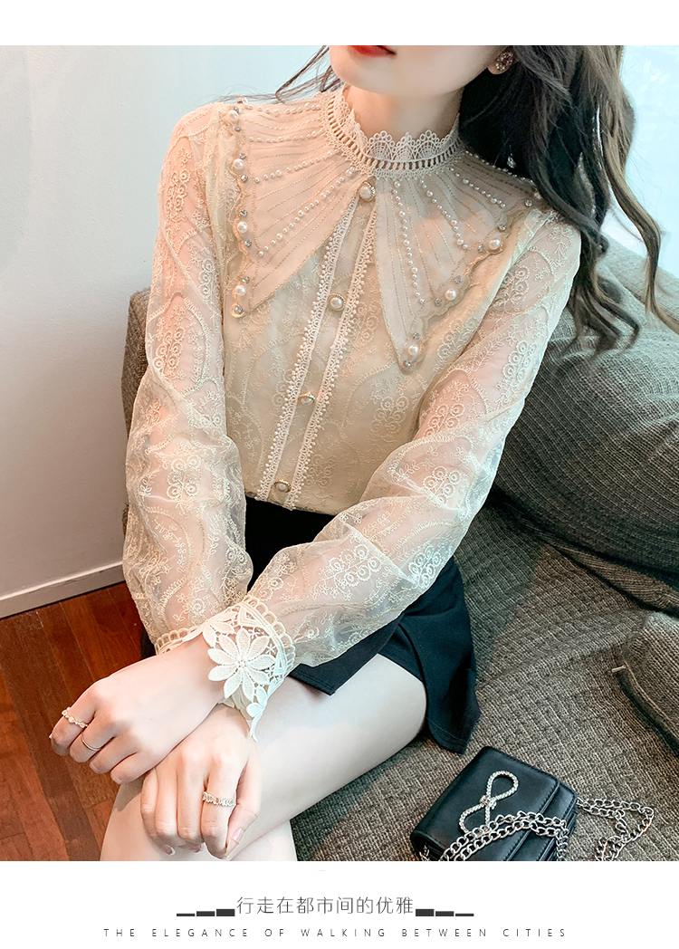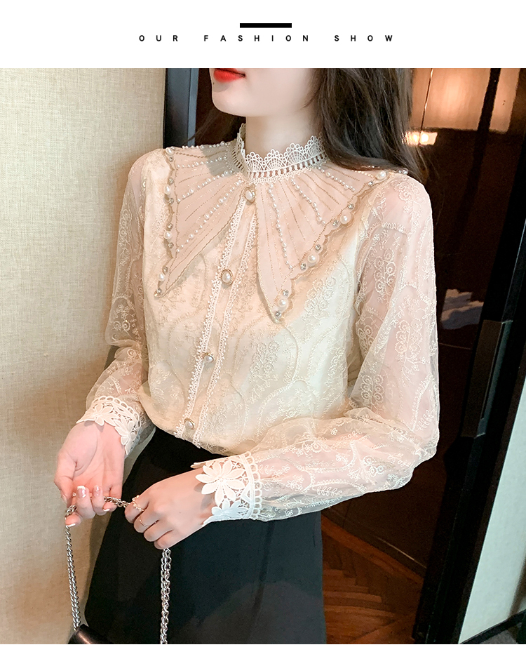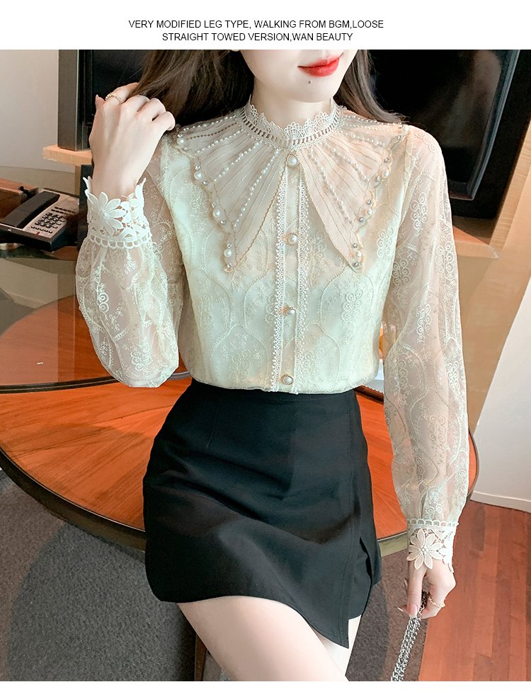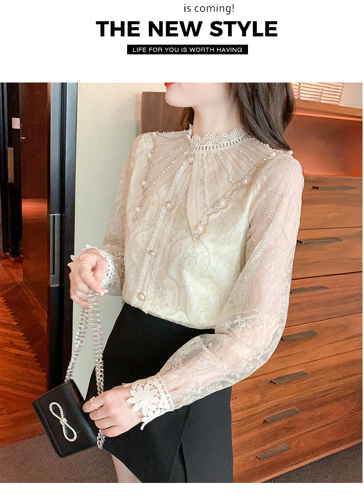 歐貨蕾絲襯衫女士春裝2025年新款洋氣小衫設計感小衆長袖雪紡上衣