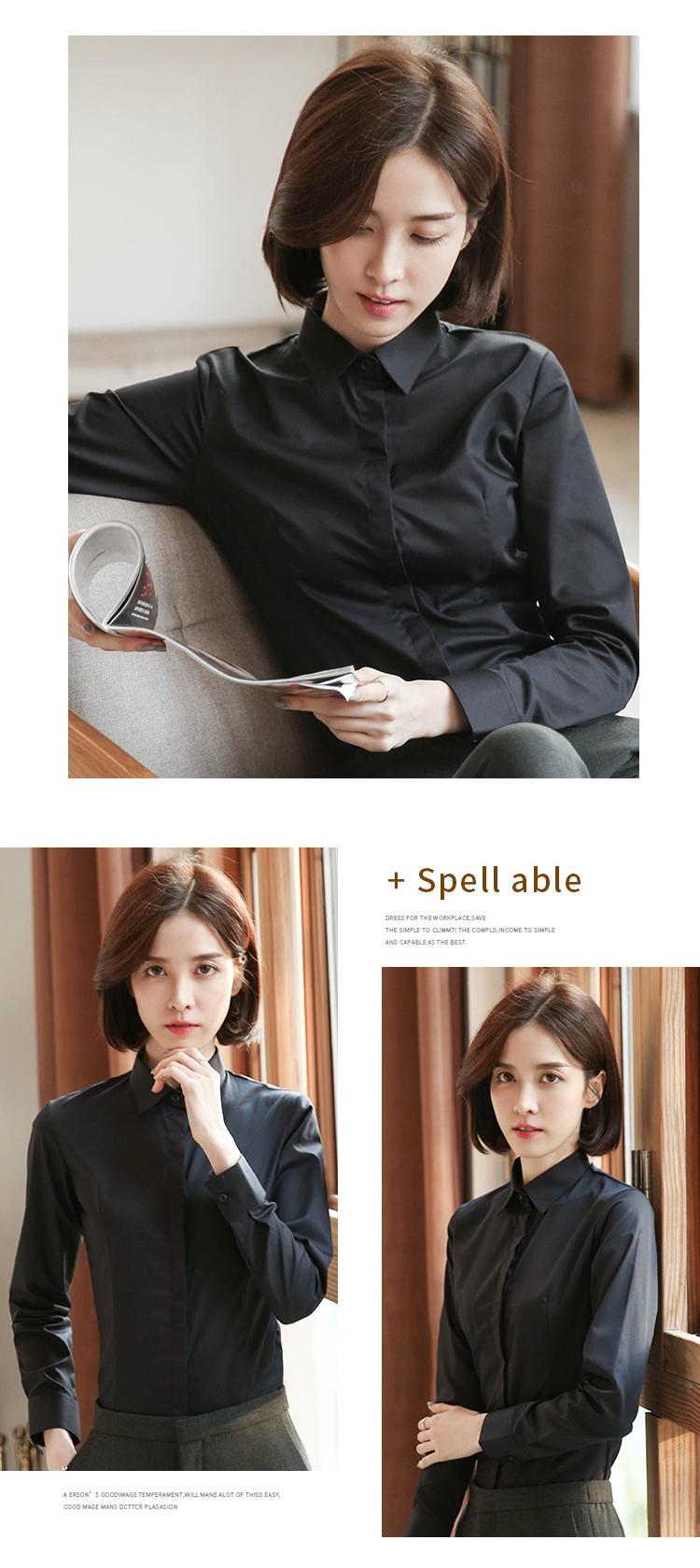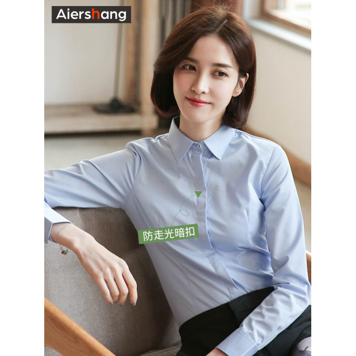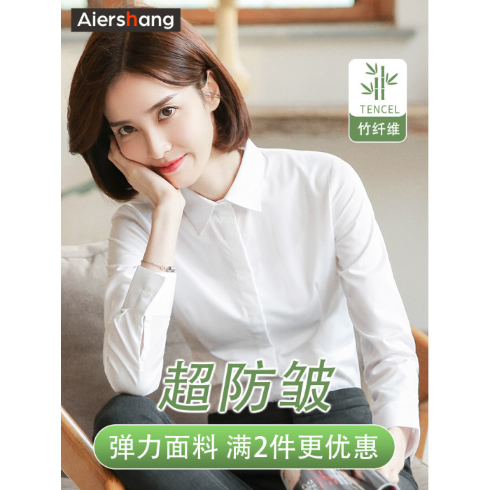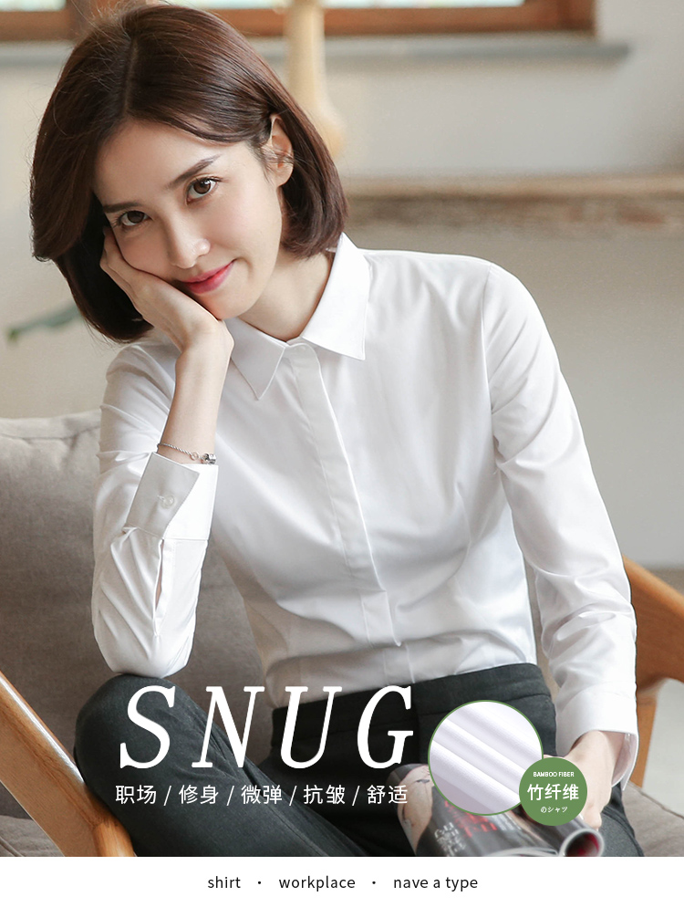 春秋新款竹纖維彈力白襯衫女職業襯衣長袖修身工作服正裝上班工裝