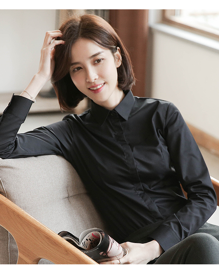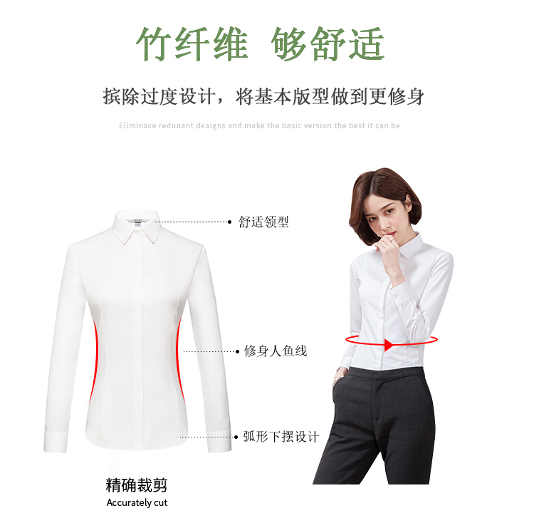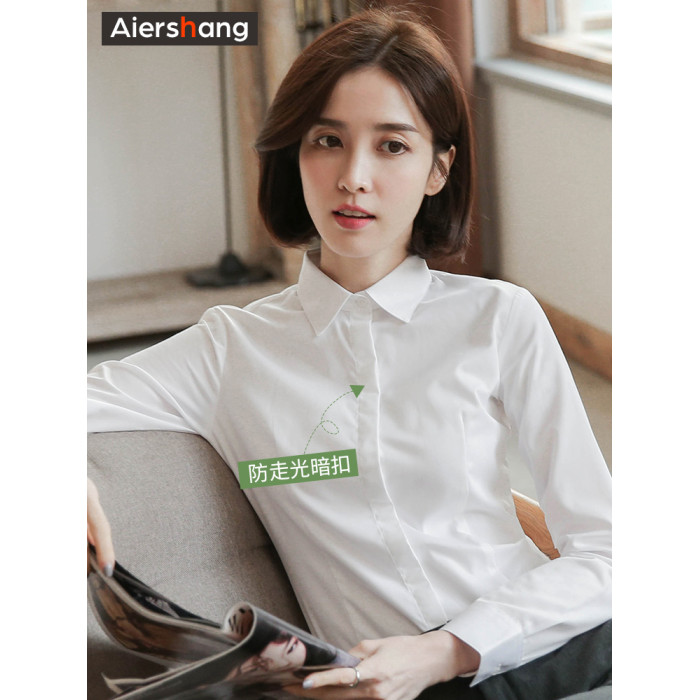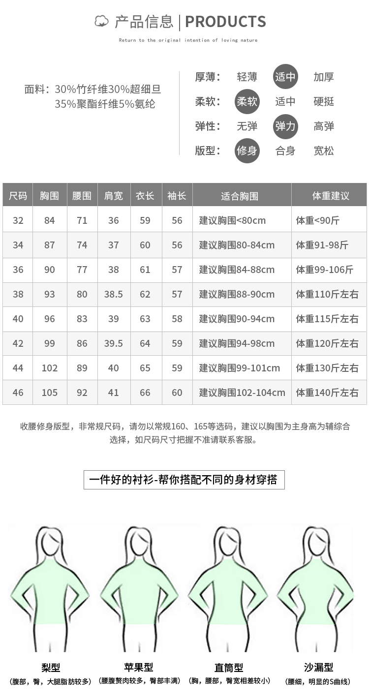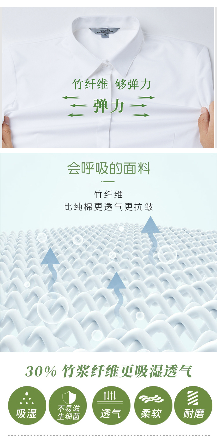 春秋新款竹纖維彈力白襯衫女職業襯衣長袖修身工作服正裝上班工裝