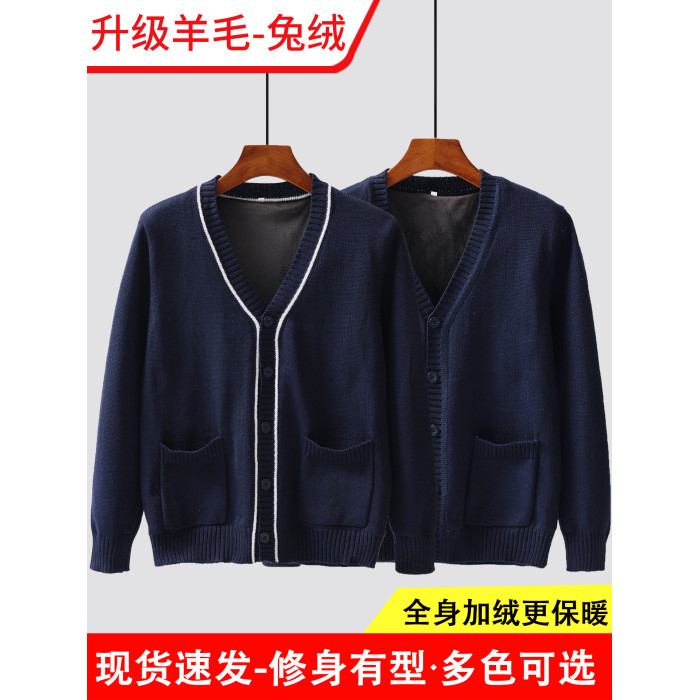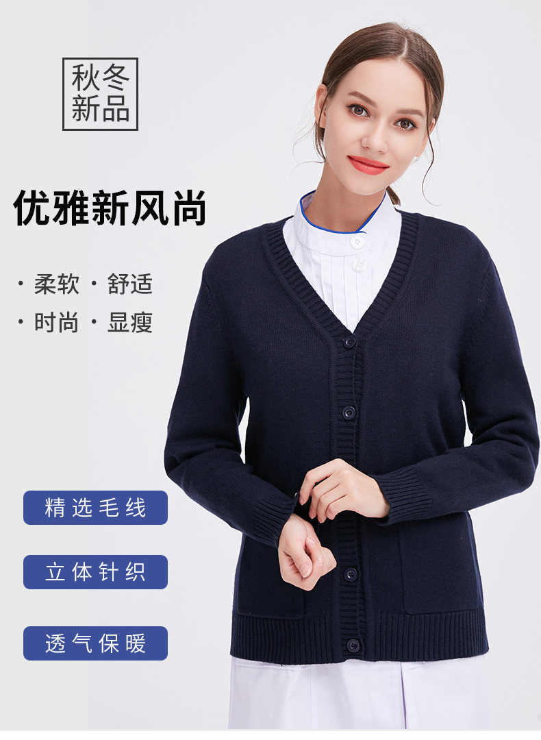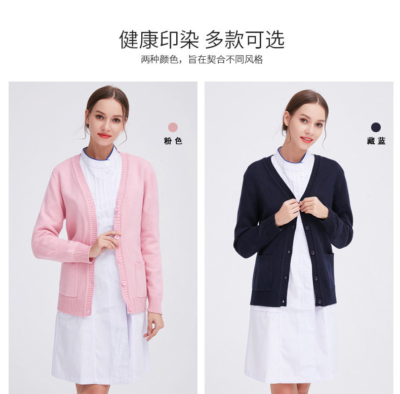 護士毛衣外套開衫女加絨厚保暖大碼外穿秋冬季藍色醫院值班工作服