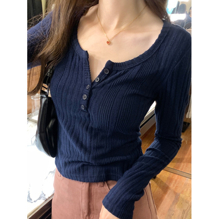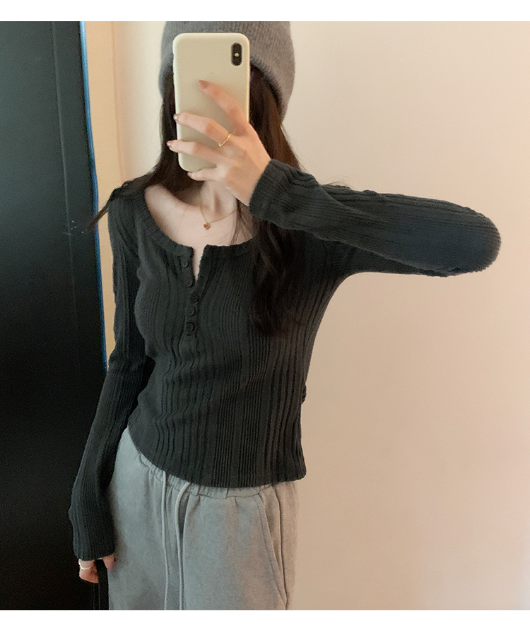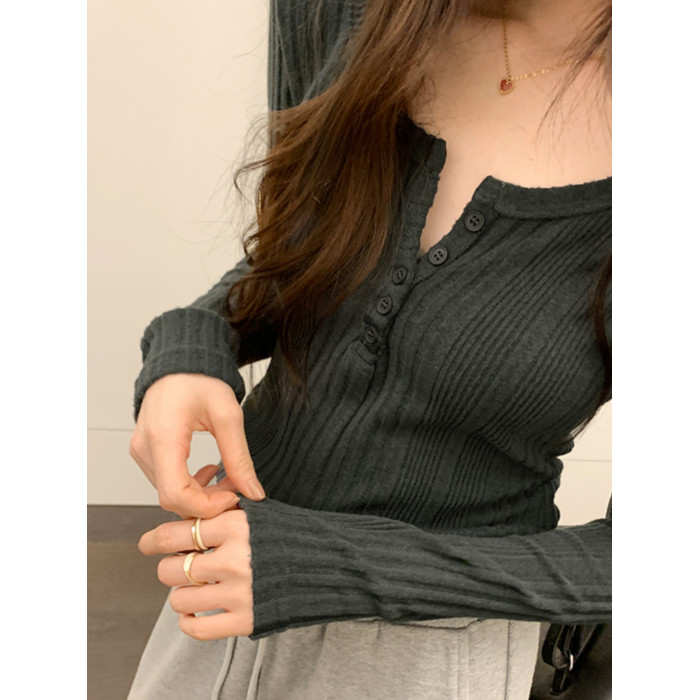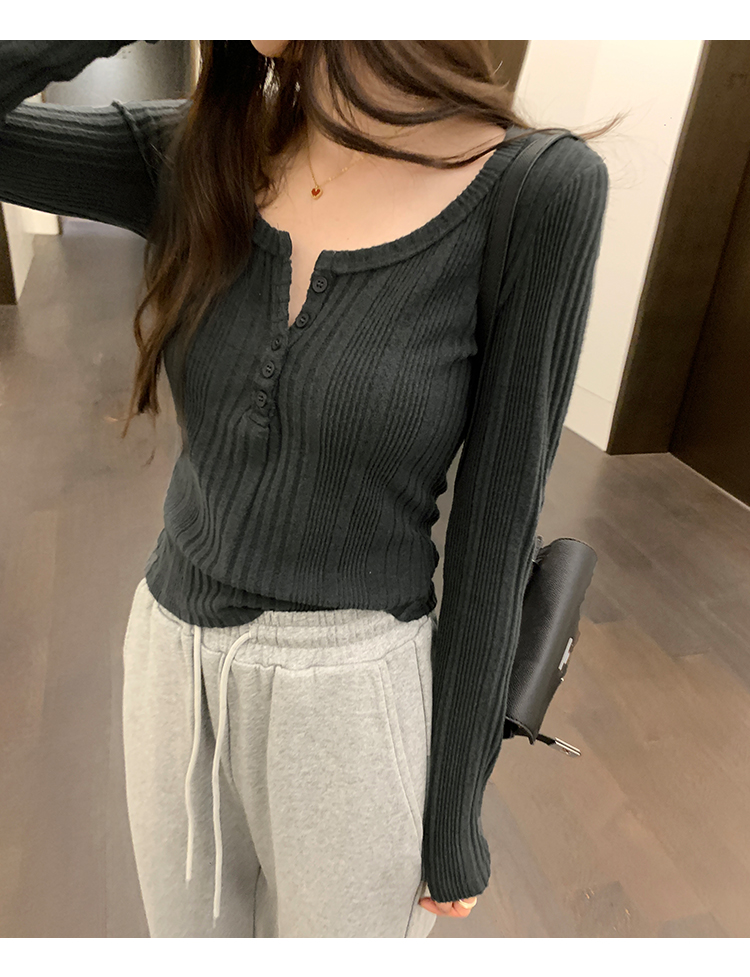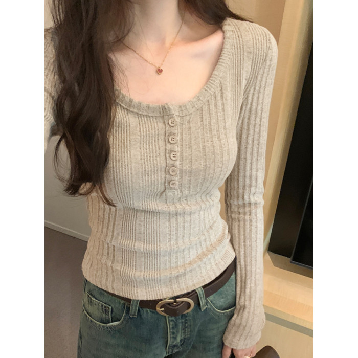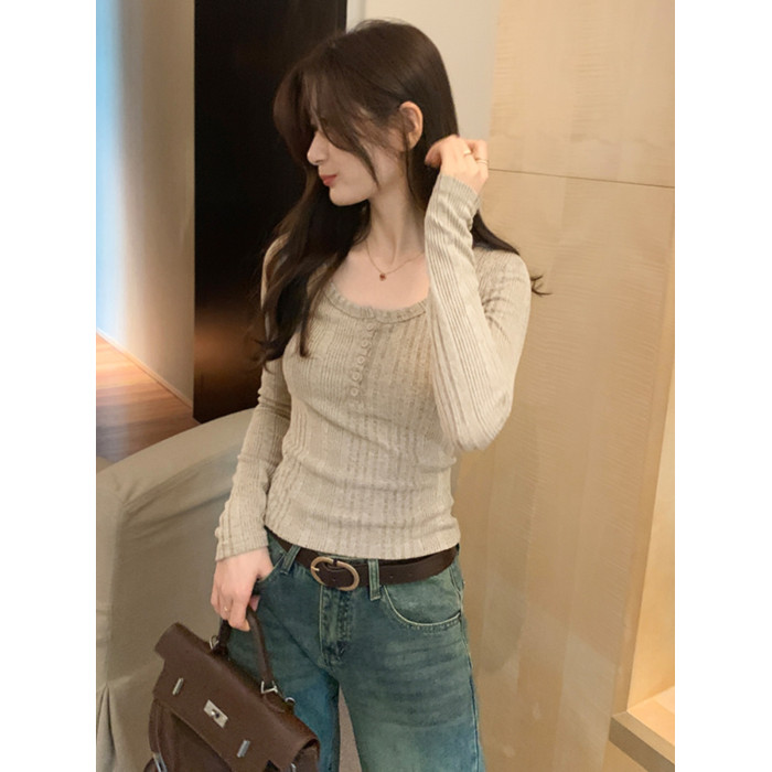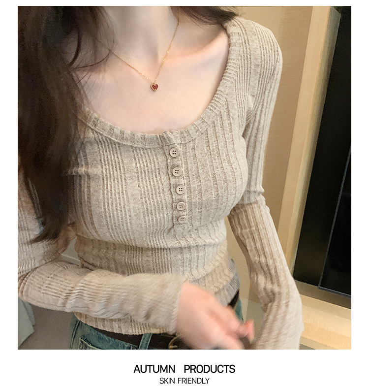 秋季洋氣新款針織打底衫內搭t恤長袖小個子短款氣質修身套頭上衣