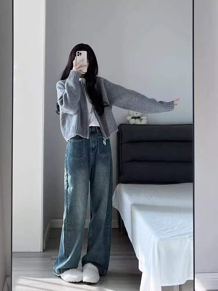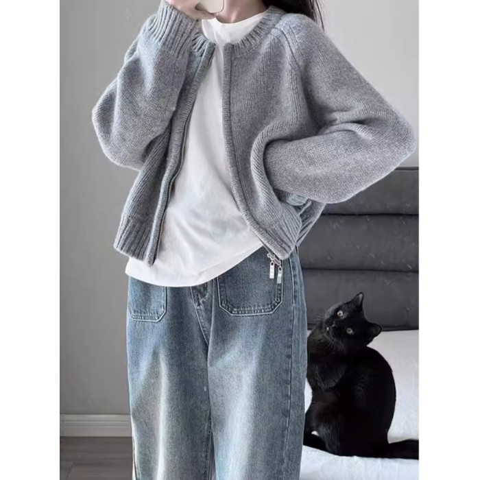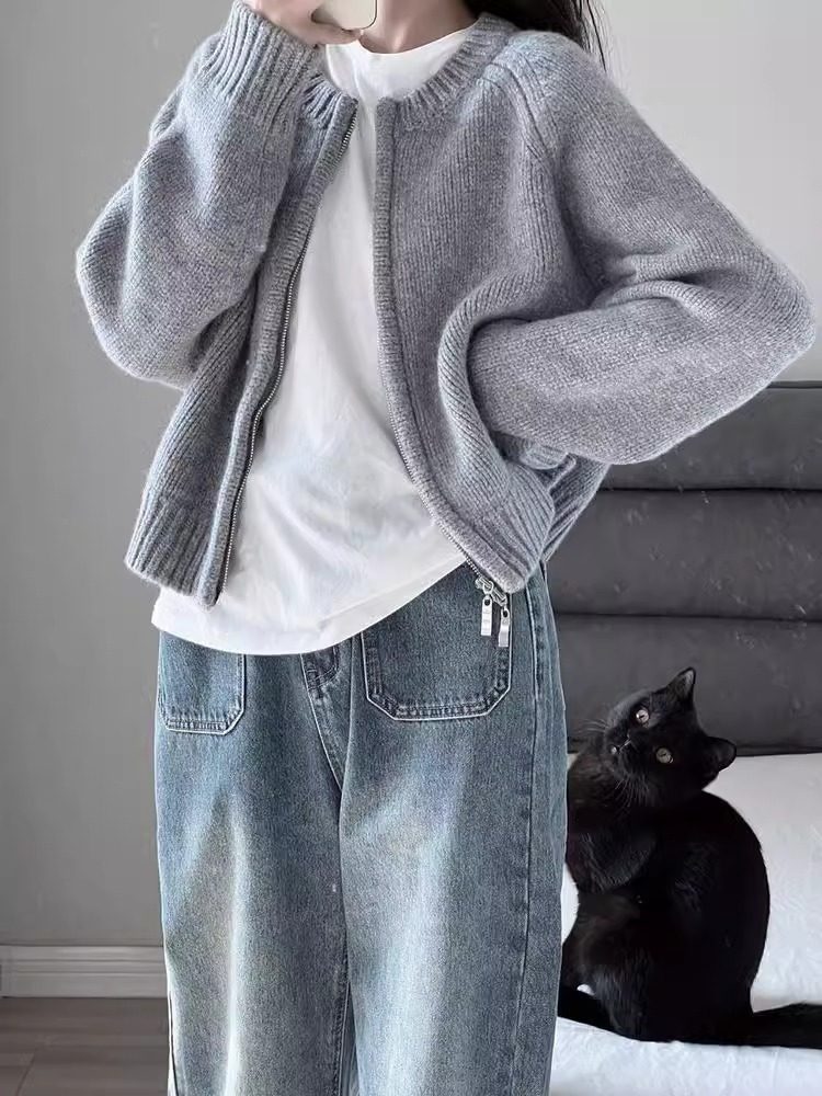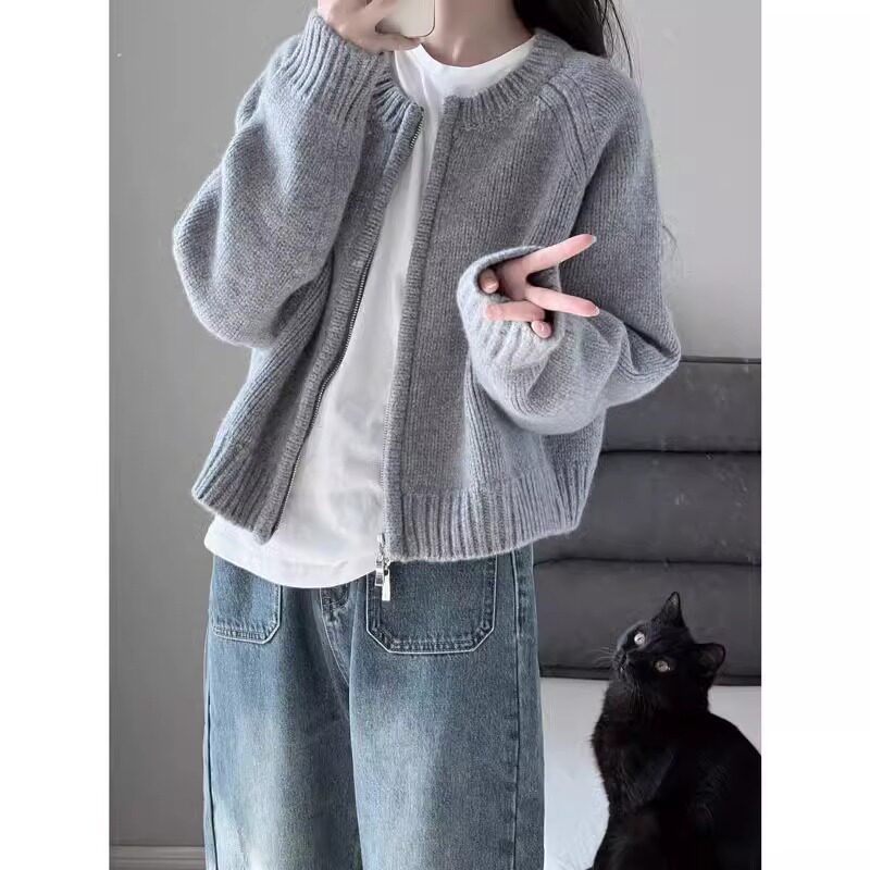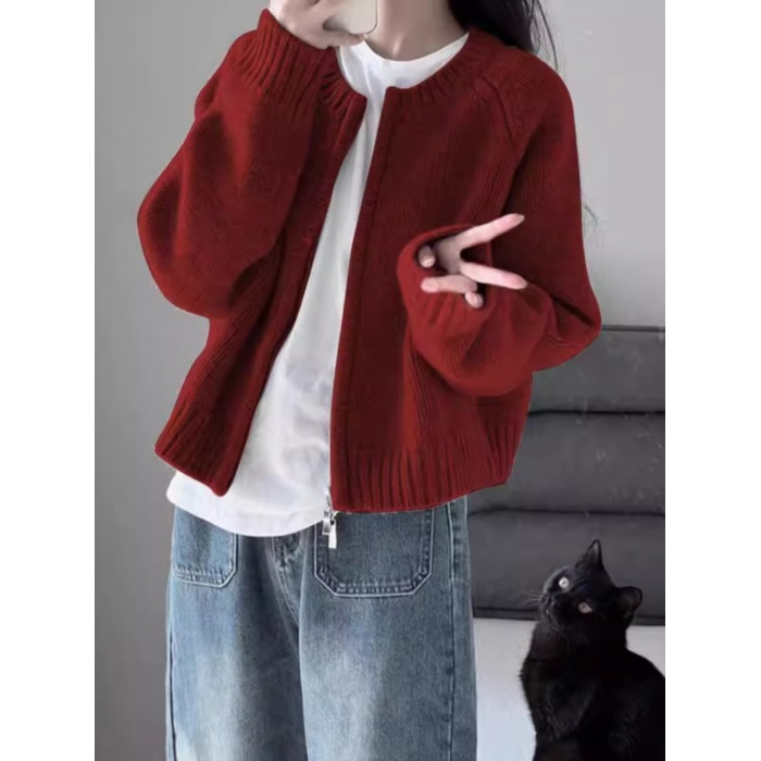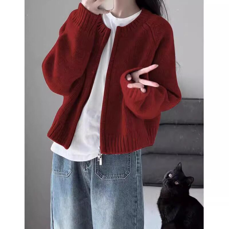 針織開衫毛衣外套女秋季爆款新年穿搭紅色寬松外搭休閒拉鍊上衣潮