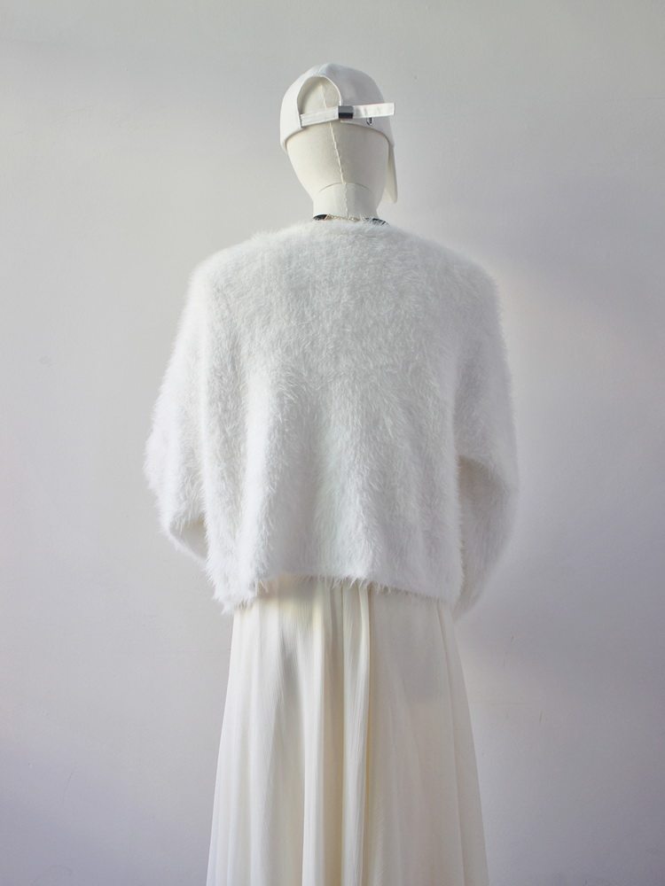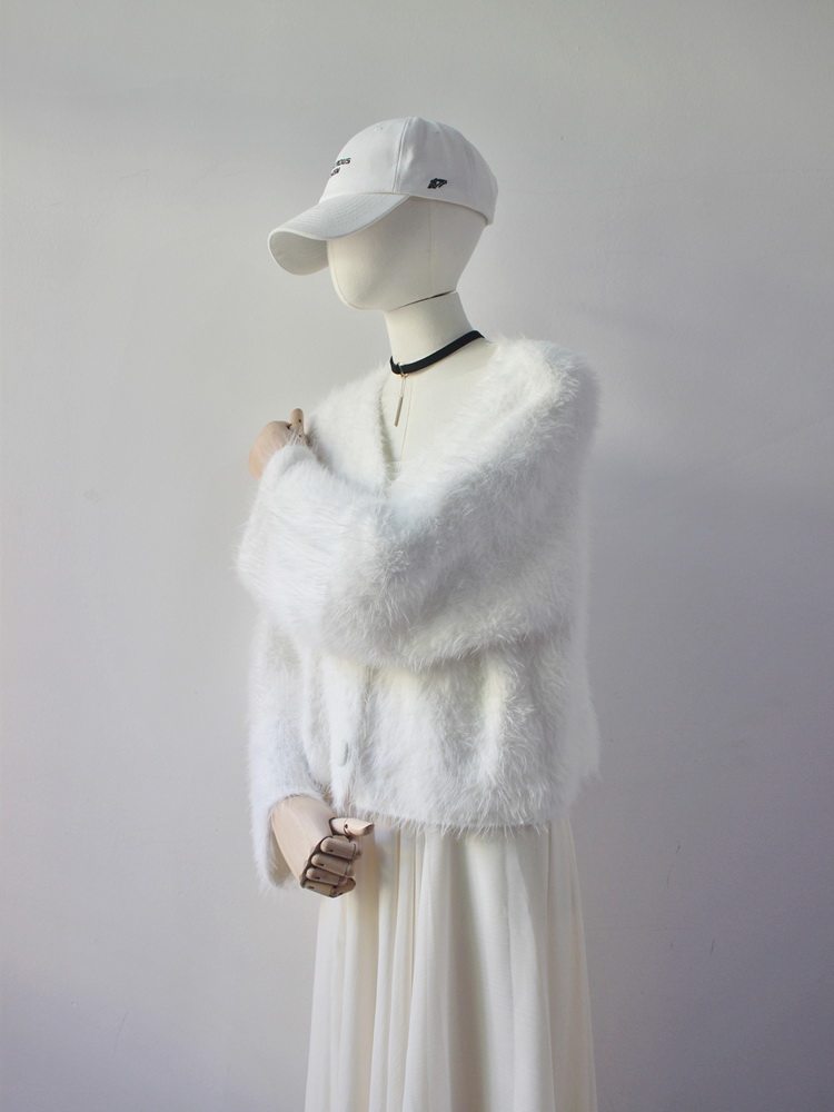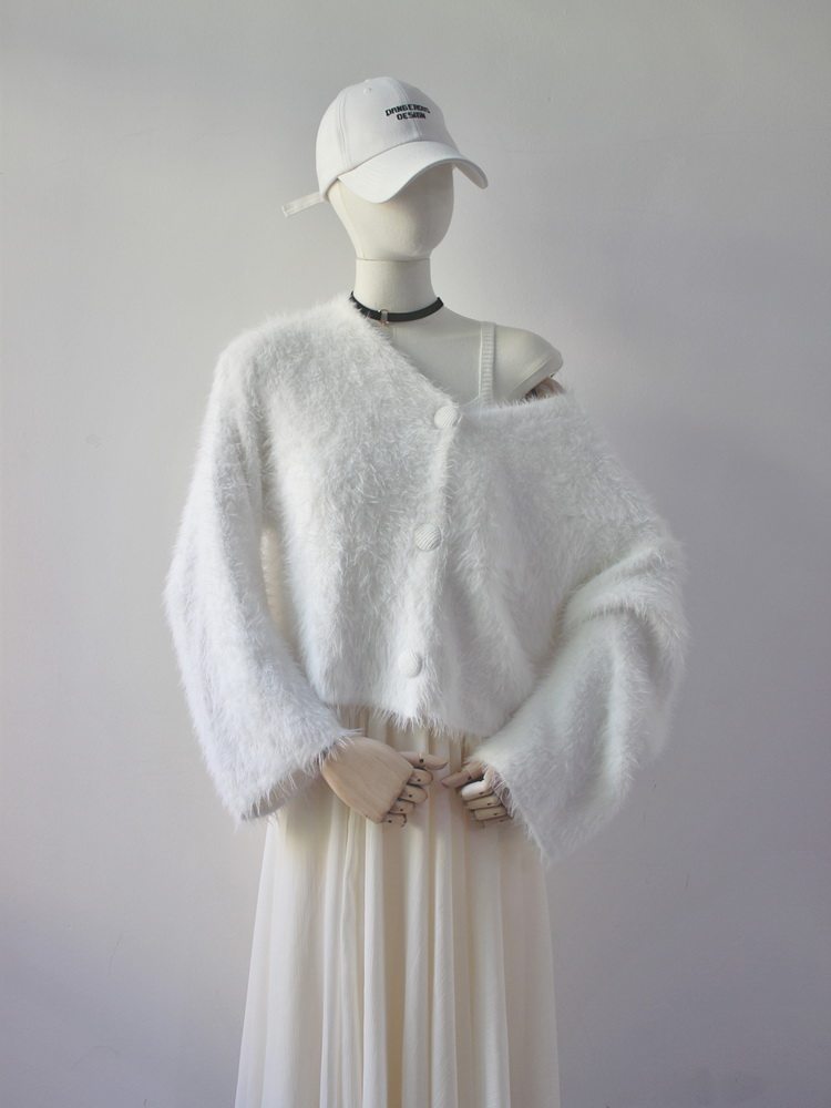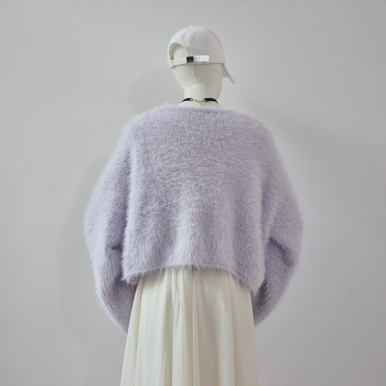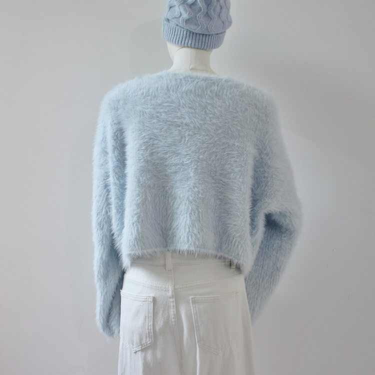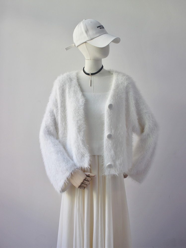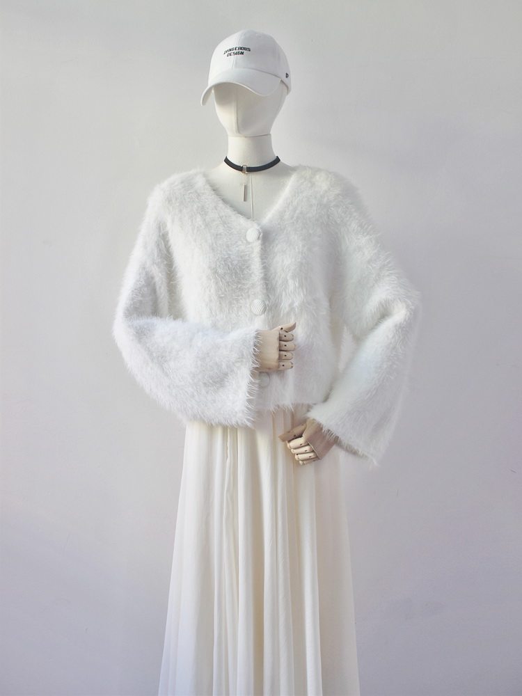 毛衫之都奶黃色仿水貂絨開衫毛衣外套短款奶fufu溫柔軟糯上衣女