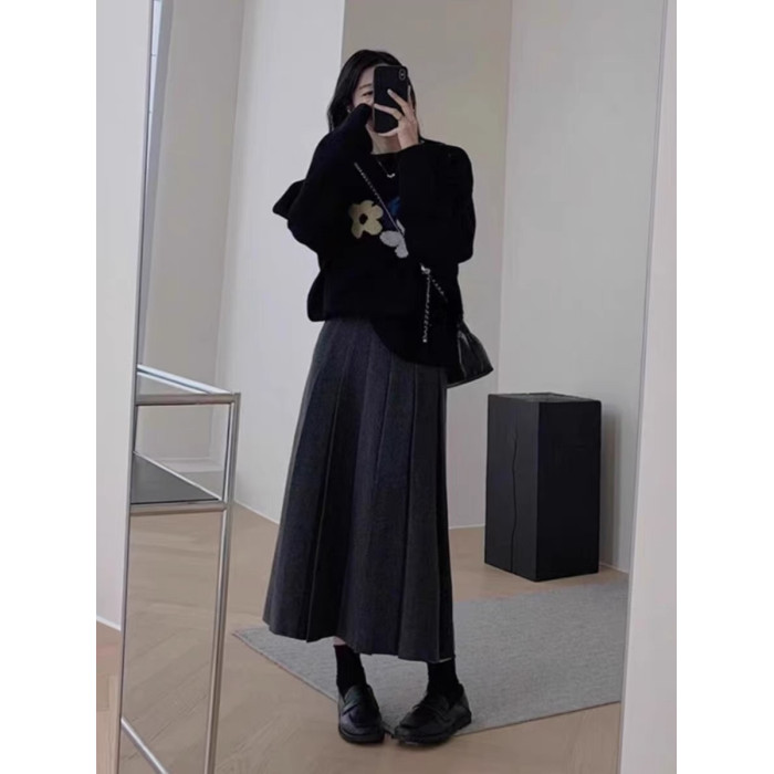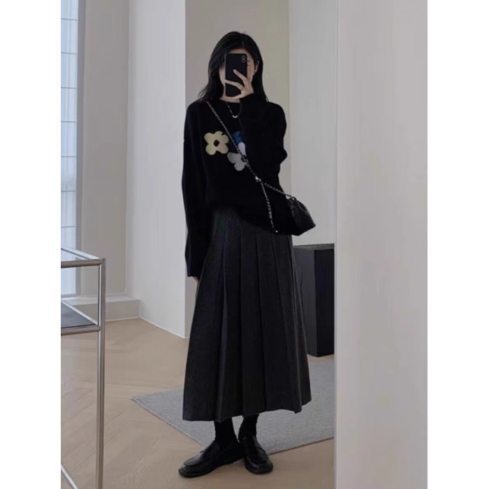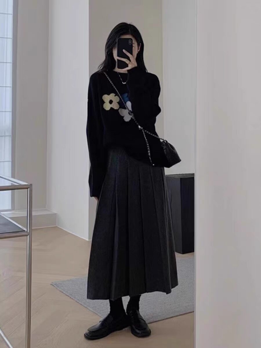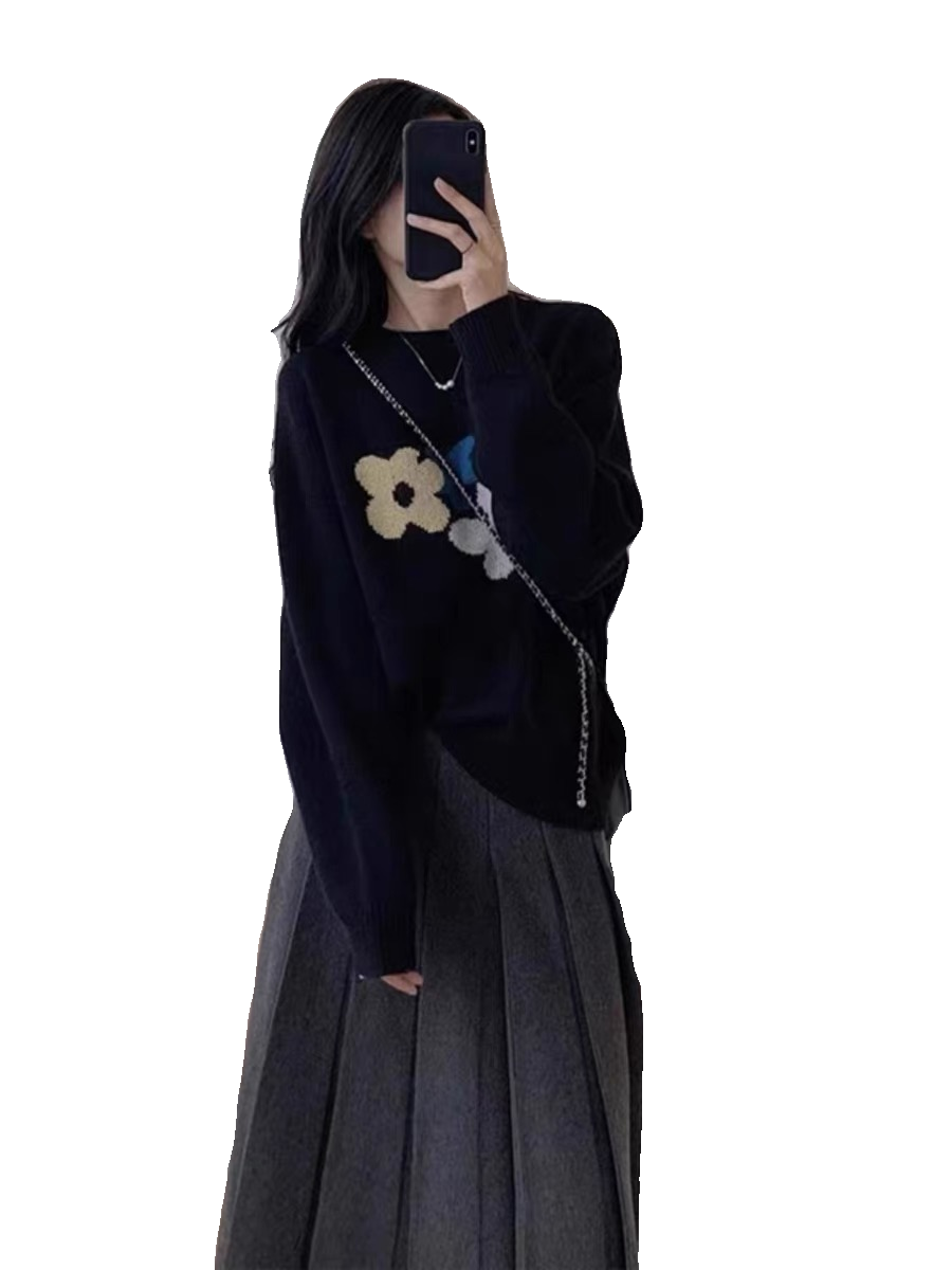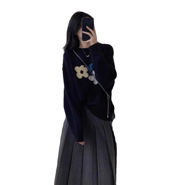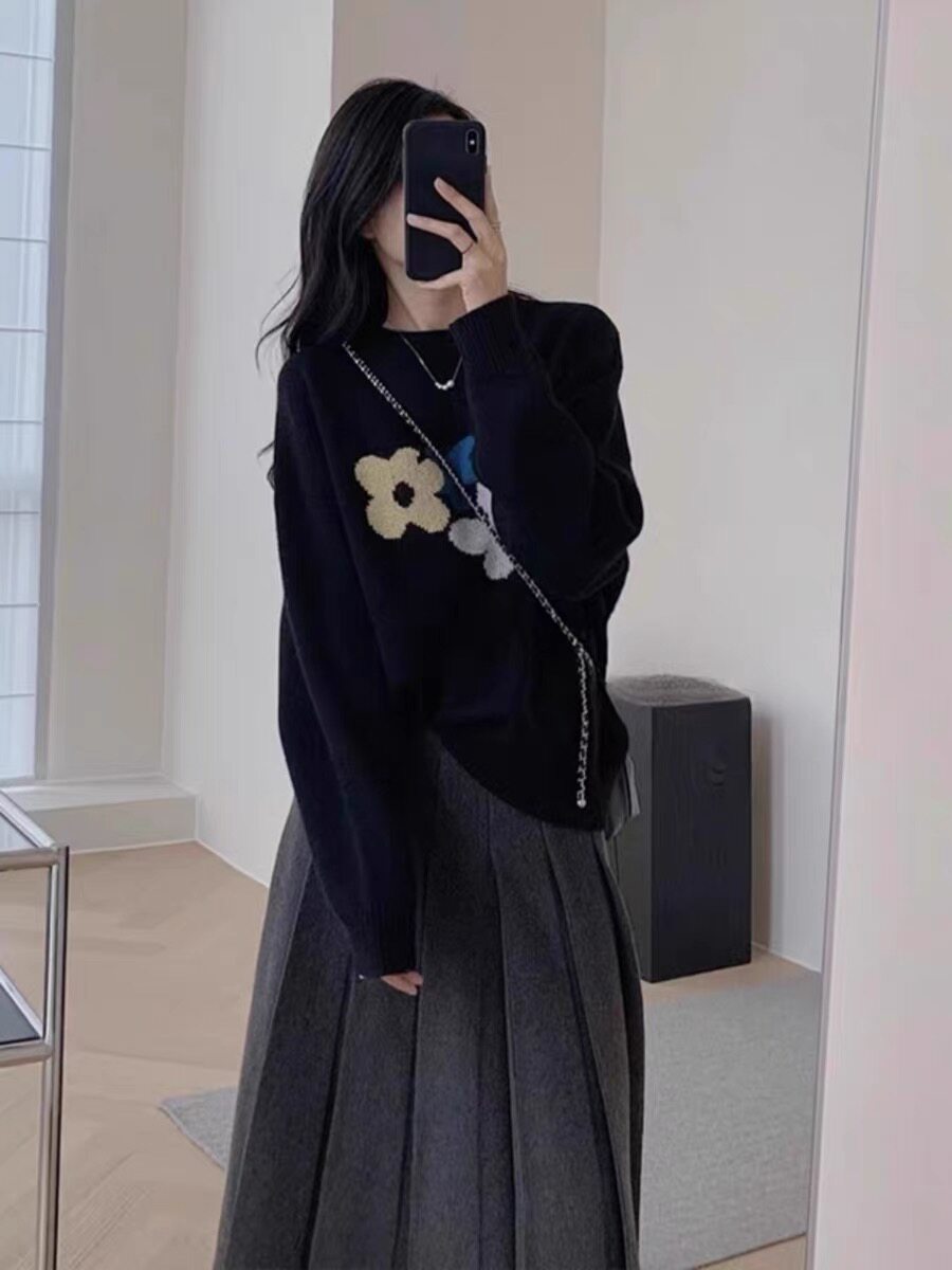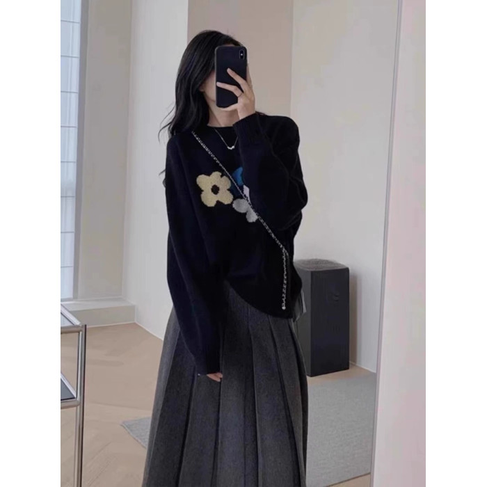 韓系慵懶風花朵毛衣女2025秋冬新款vintage復古針織上衣寬松百搭