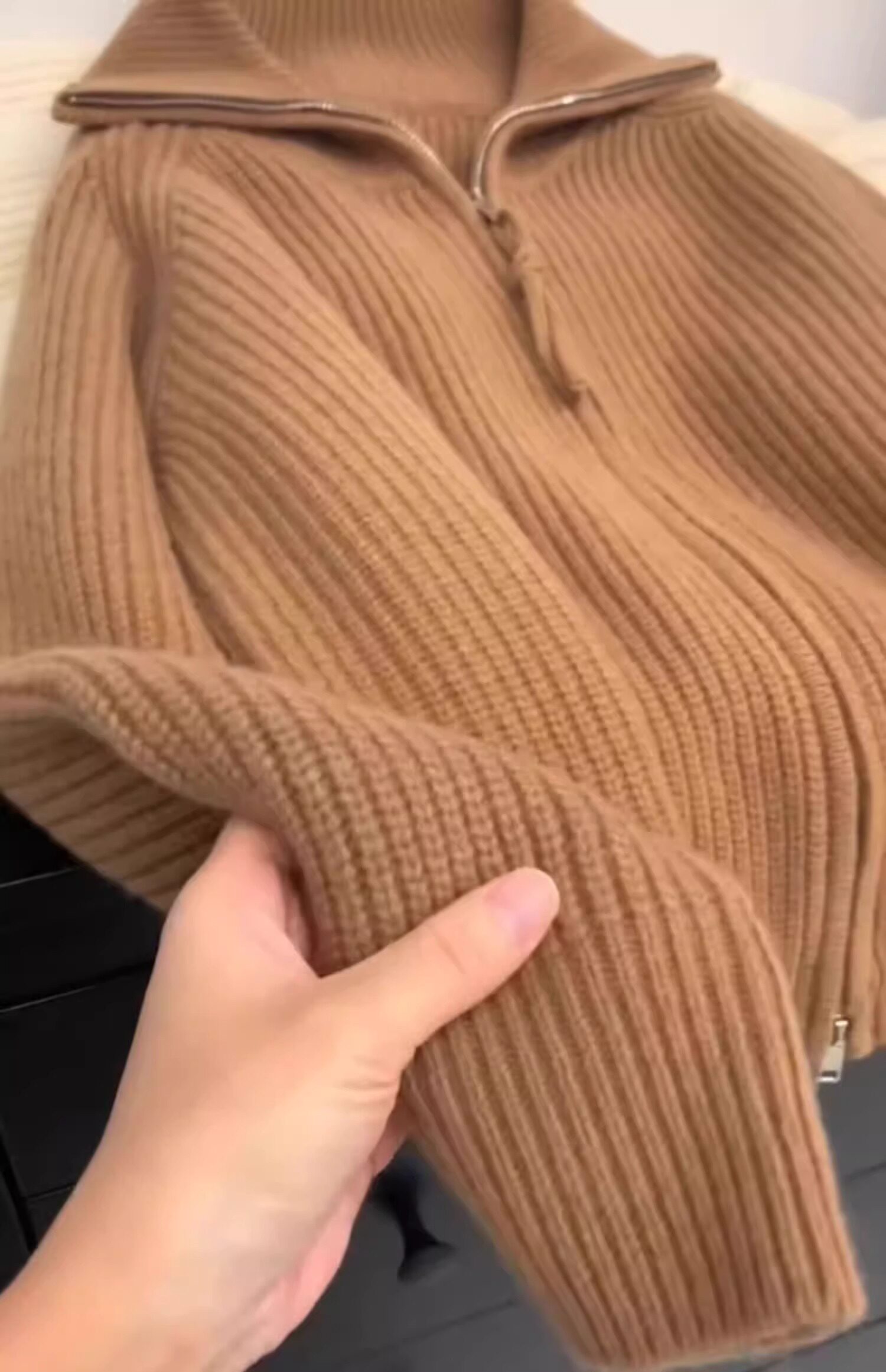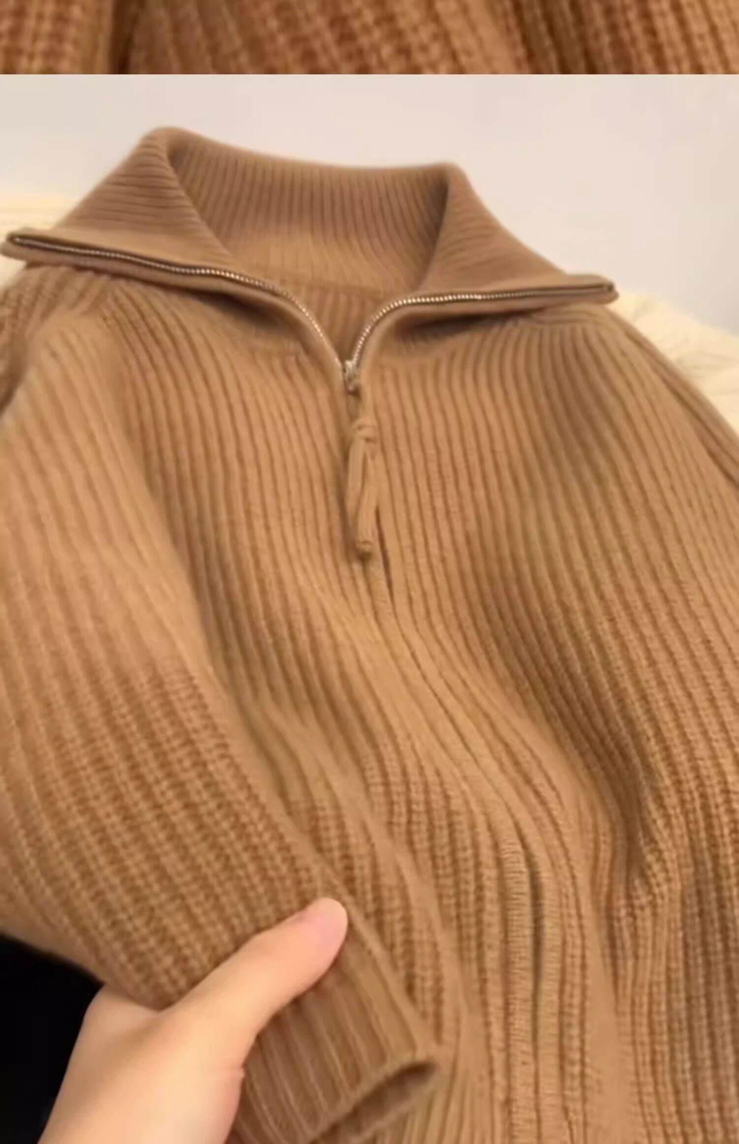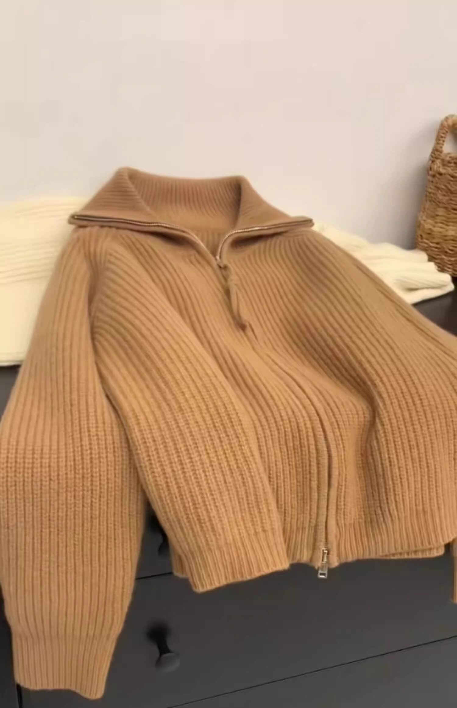 軟糯慵懶雙拉鍊毛衣外套女秋冬季翻領針織開衫寬松外搭浣熊絨上衣