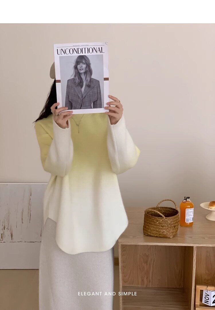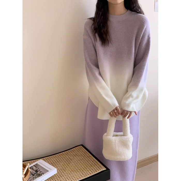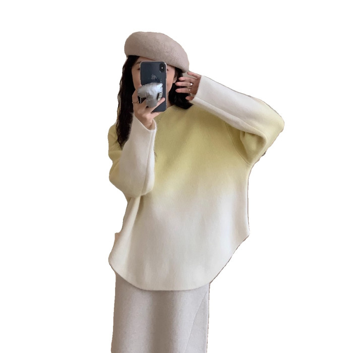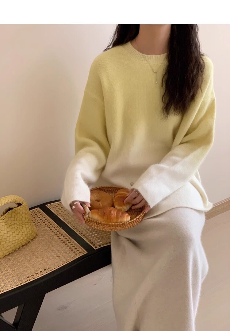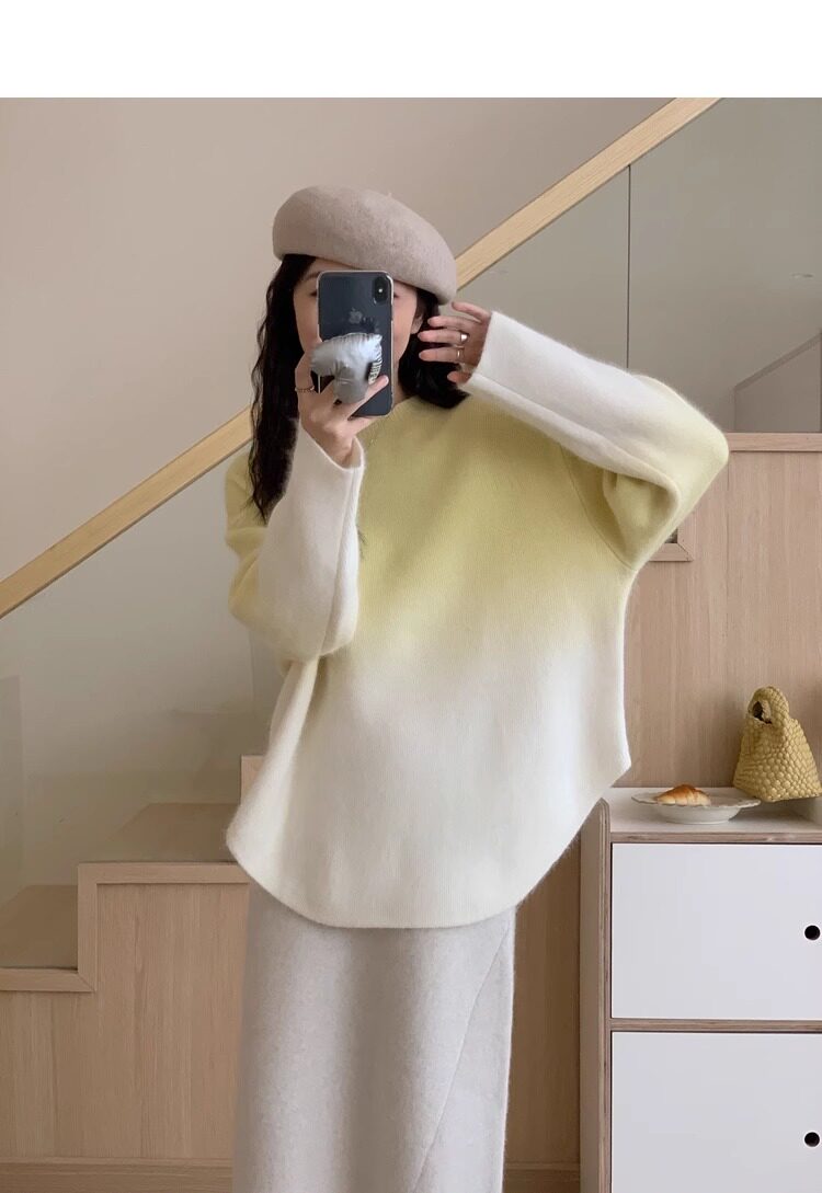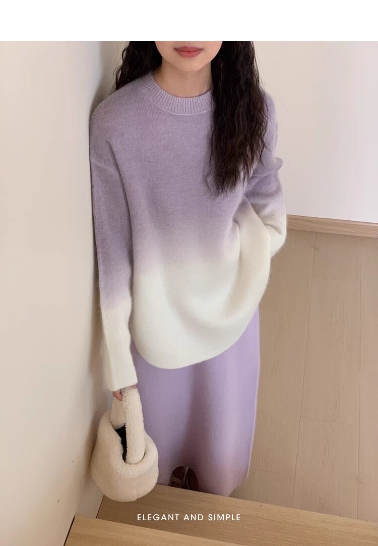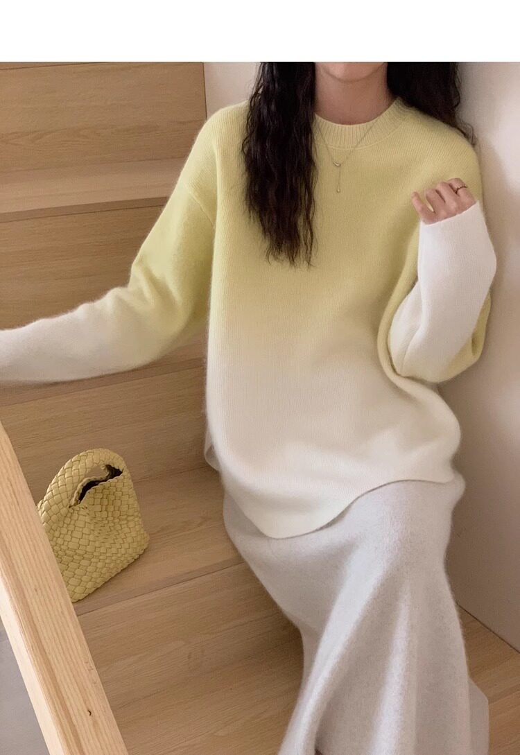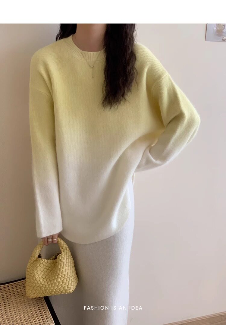 漸變色慵懶寬松針織衫秋冬氣質休閒內搭圓領套頭毛衣長袖打底衫女