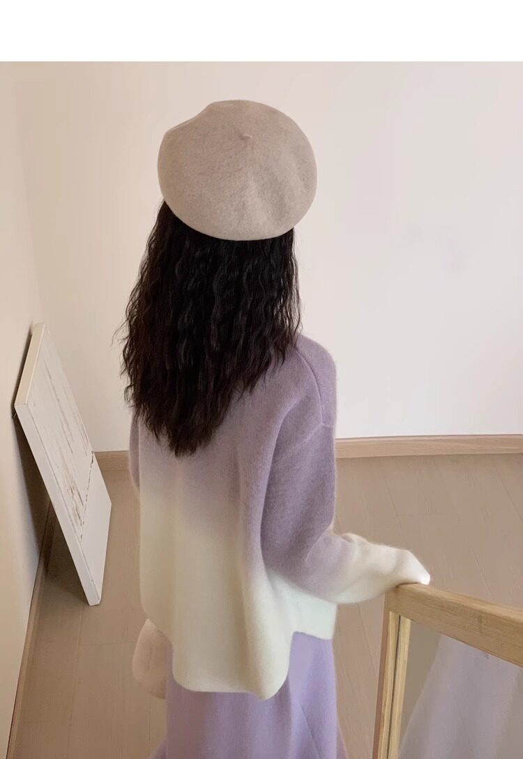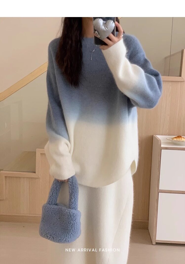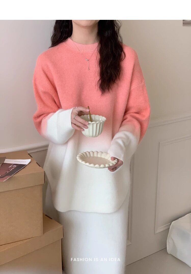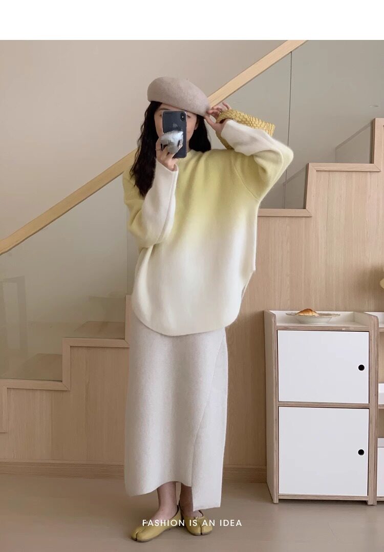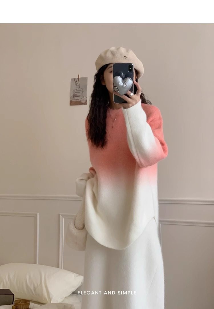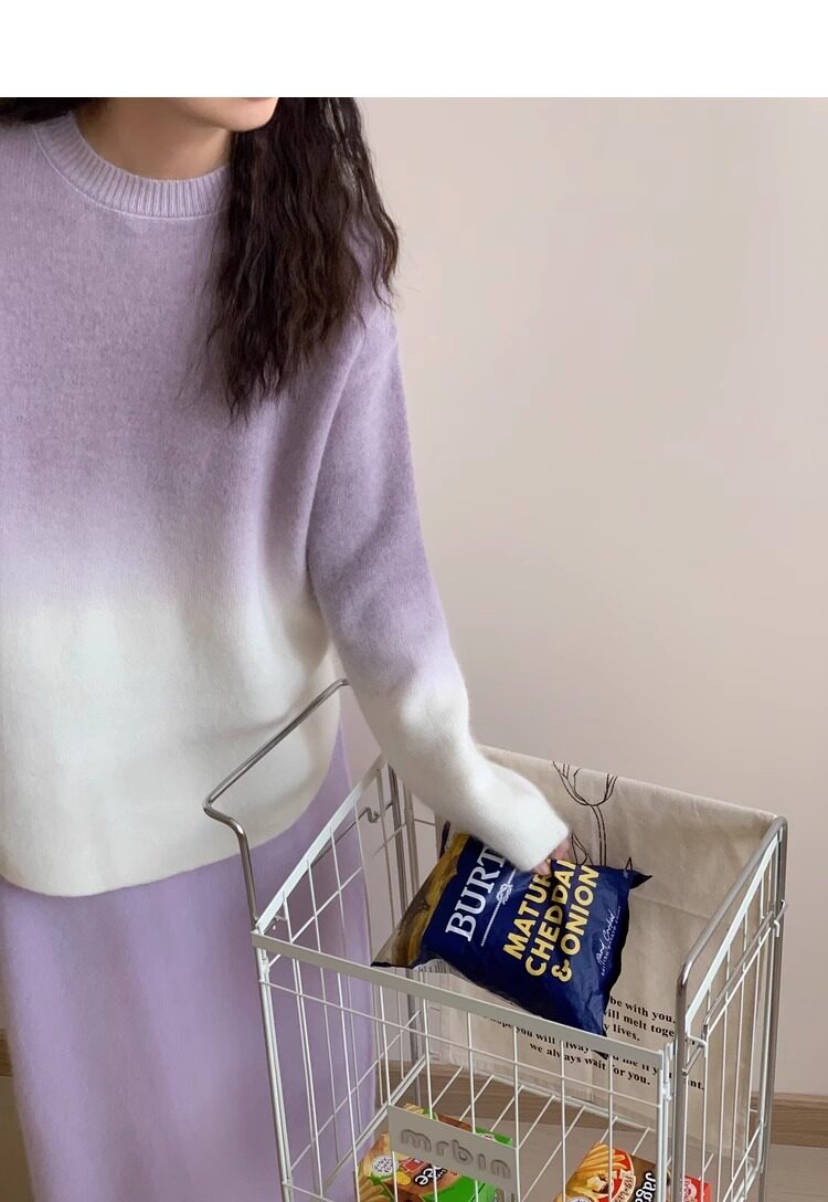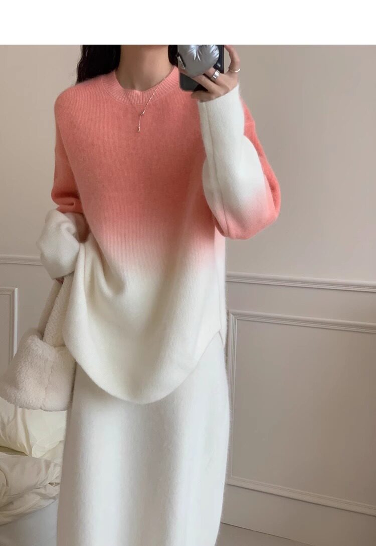 漸變色慵懶寬松針織衫秋冬氣質休閒內搭圓領套頭毛衣長袖打底衫女