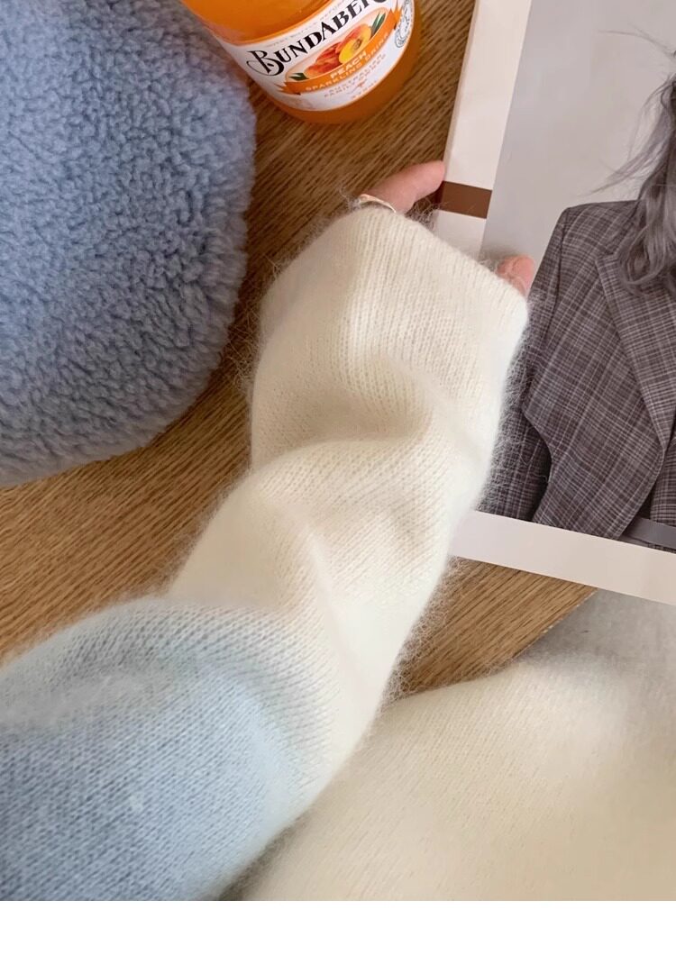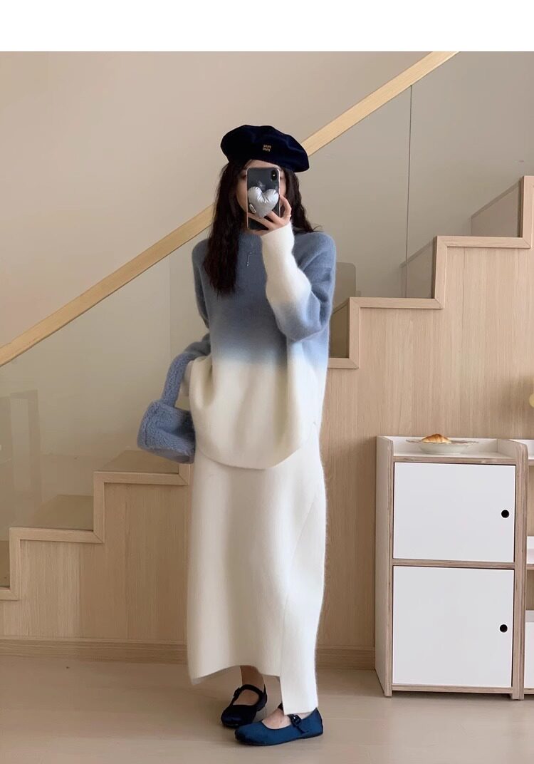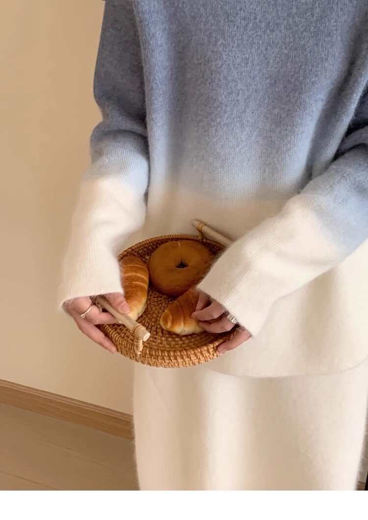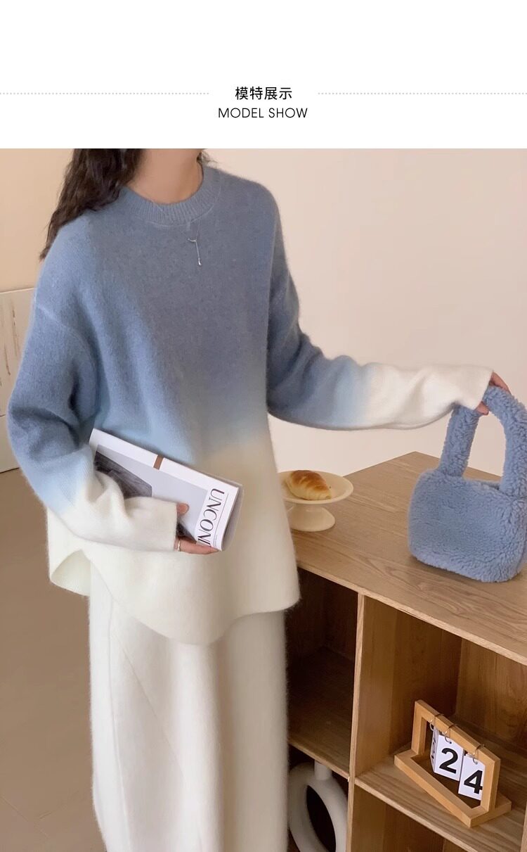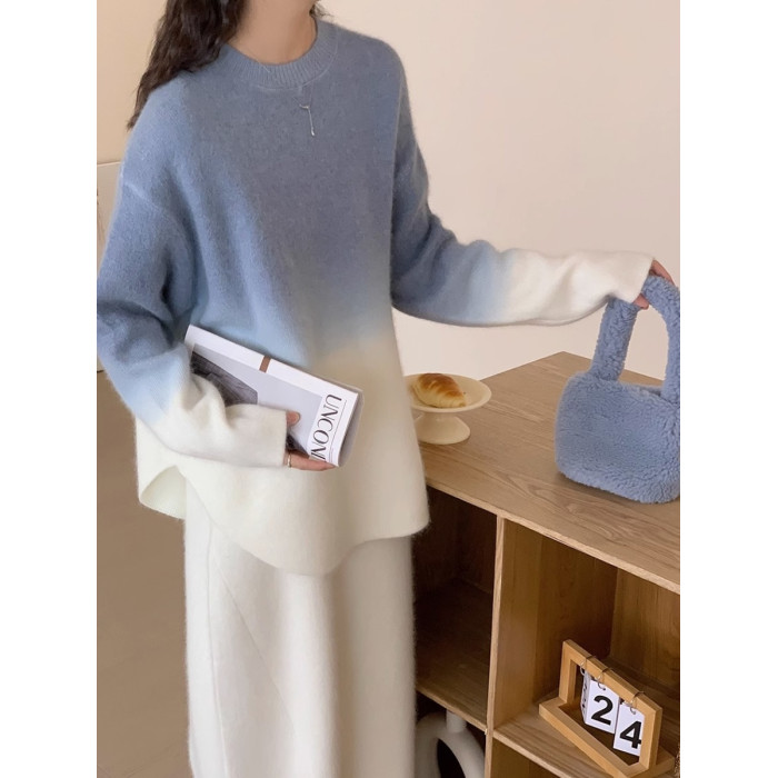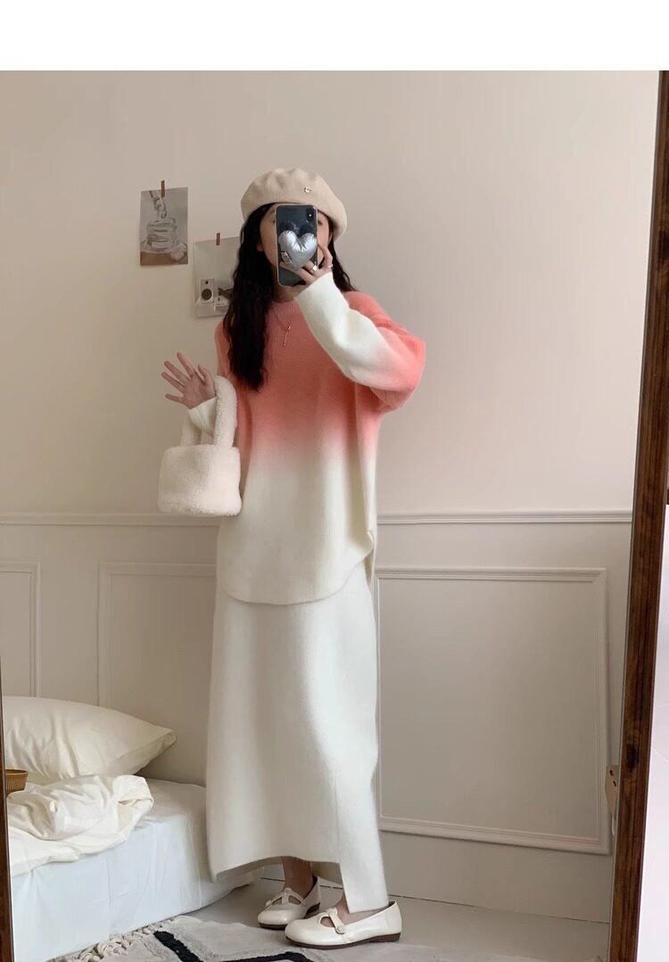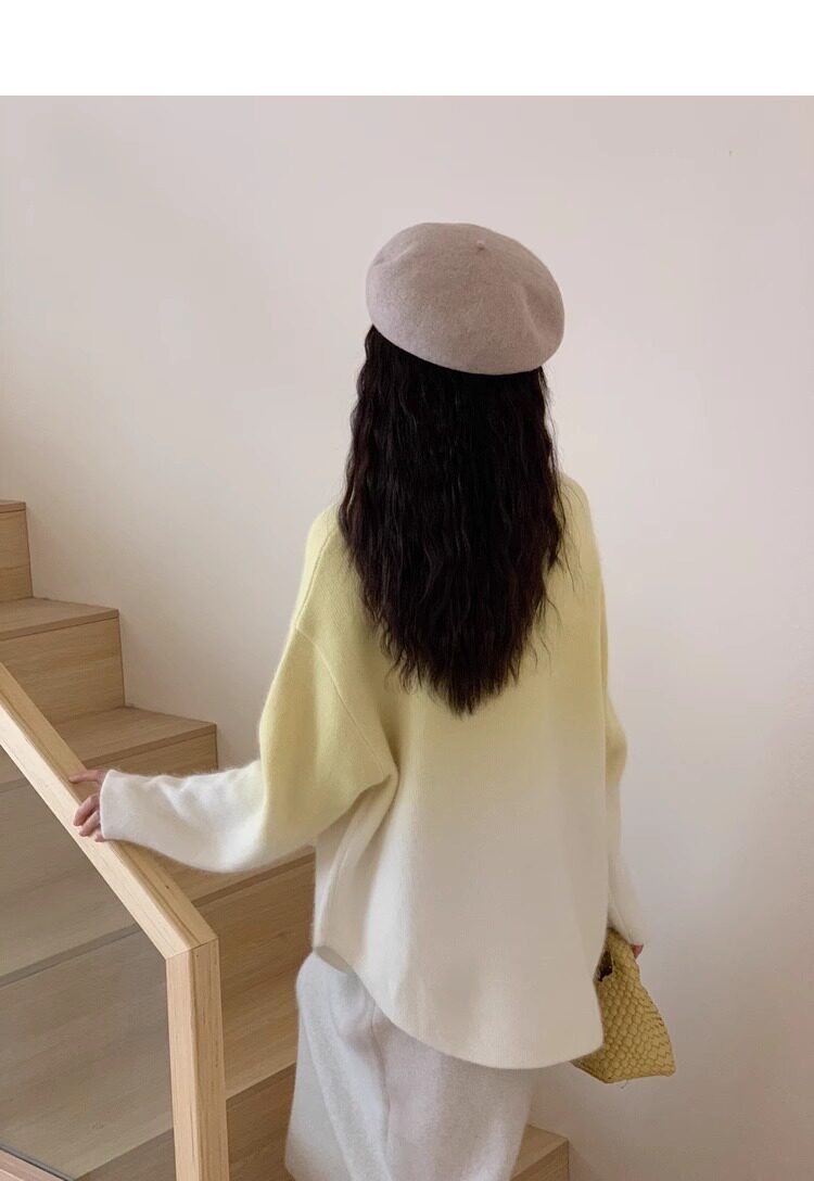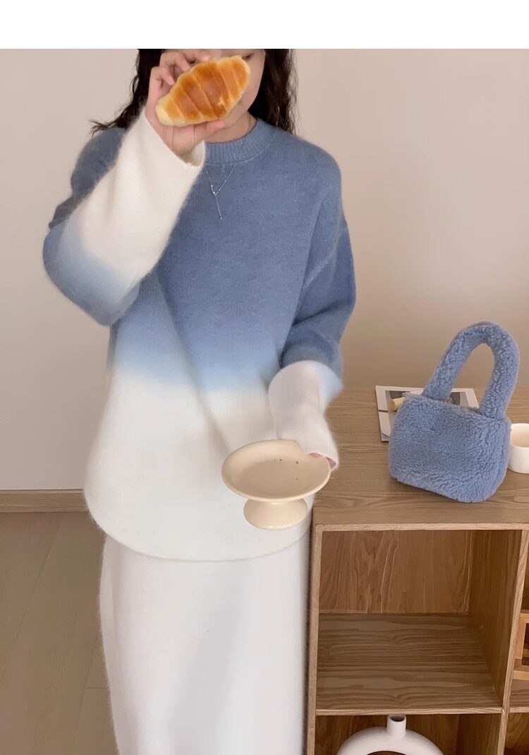 漸變色慵懶寬松針織衫秋冬氣質休閒內搭圓領套頭毛衣長袖打底衫女