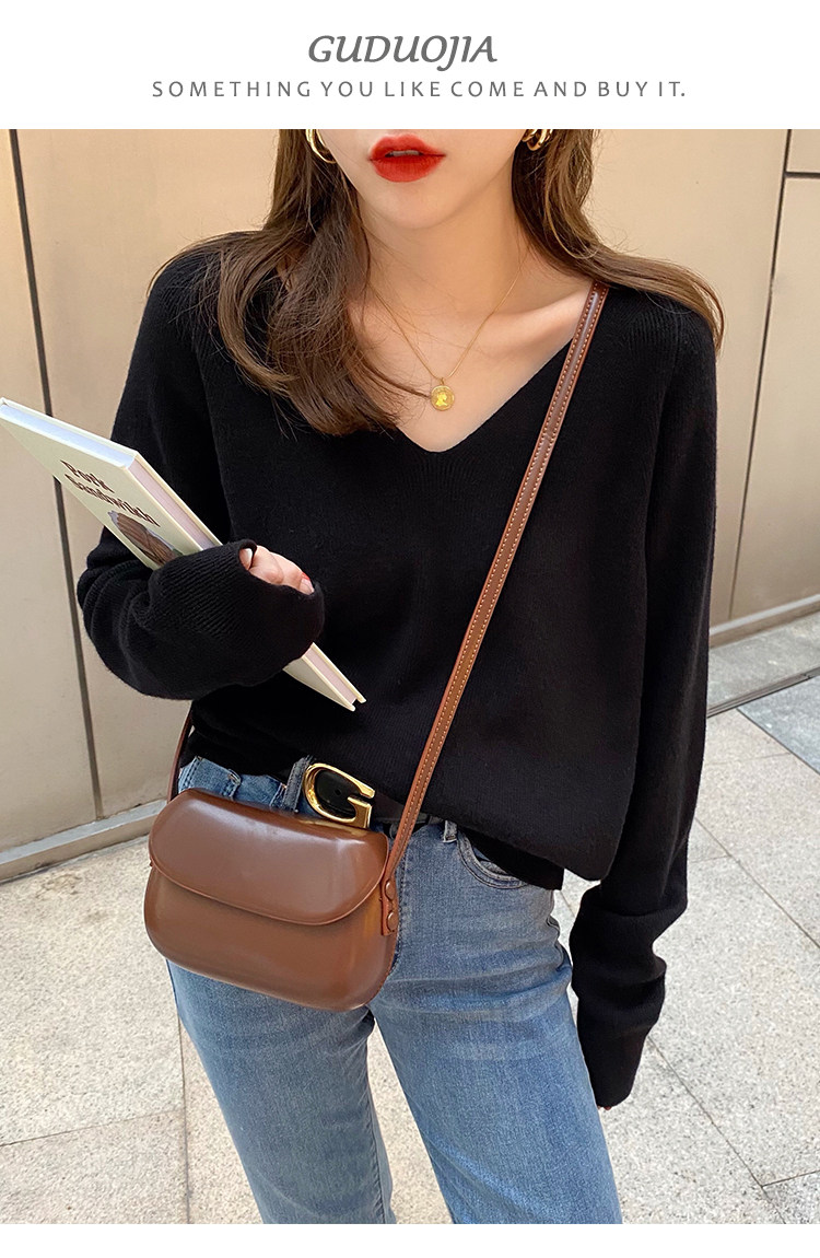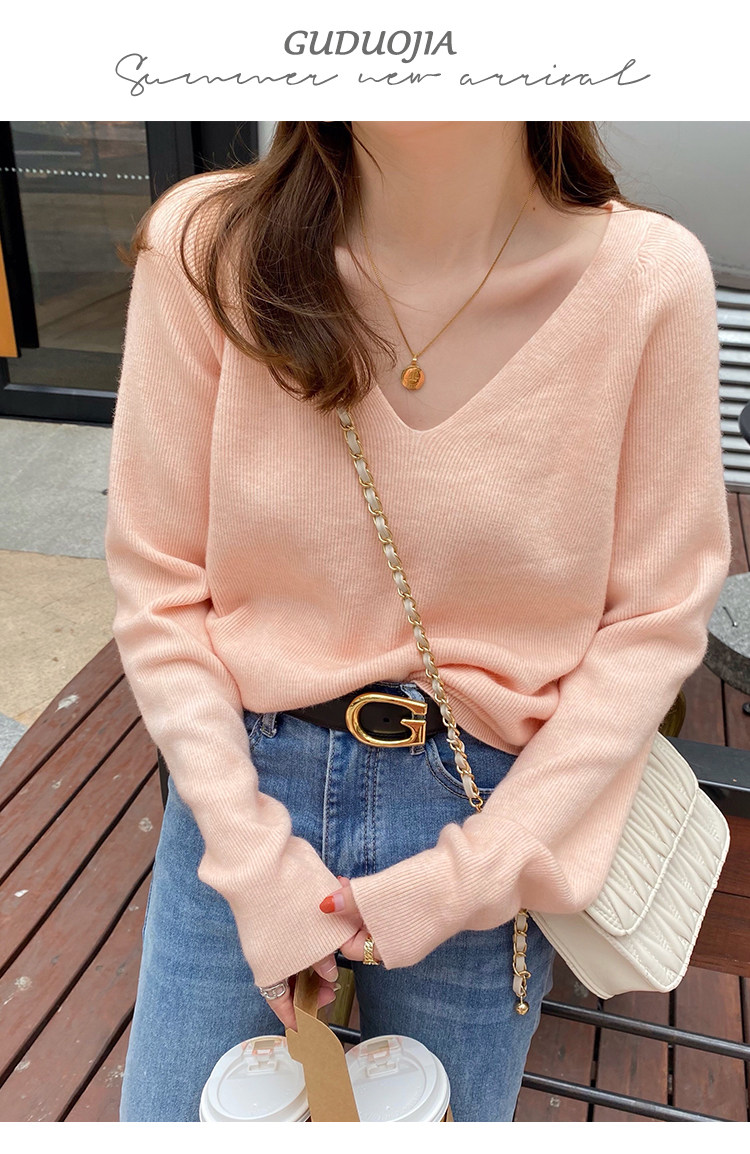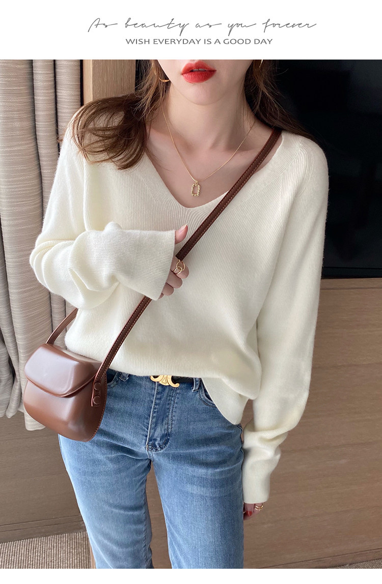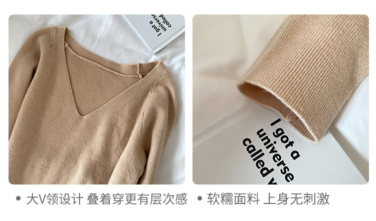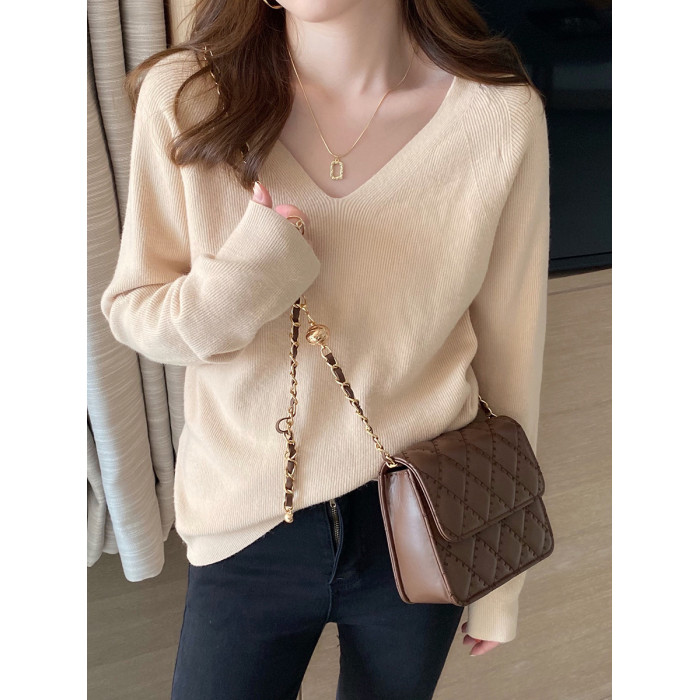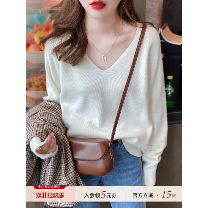 v領毛衣女秋冬高級感寬松針織衫2025新款打底衫內搭早秋黑色上衣