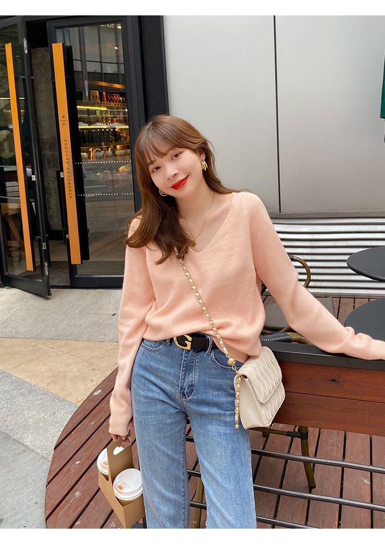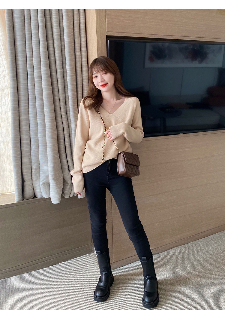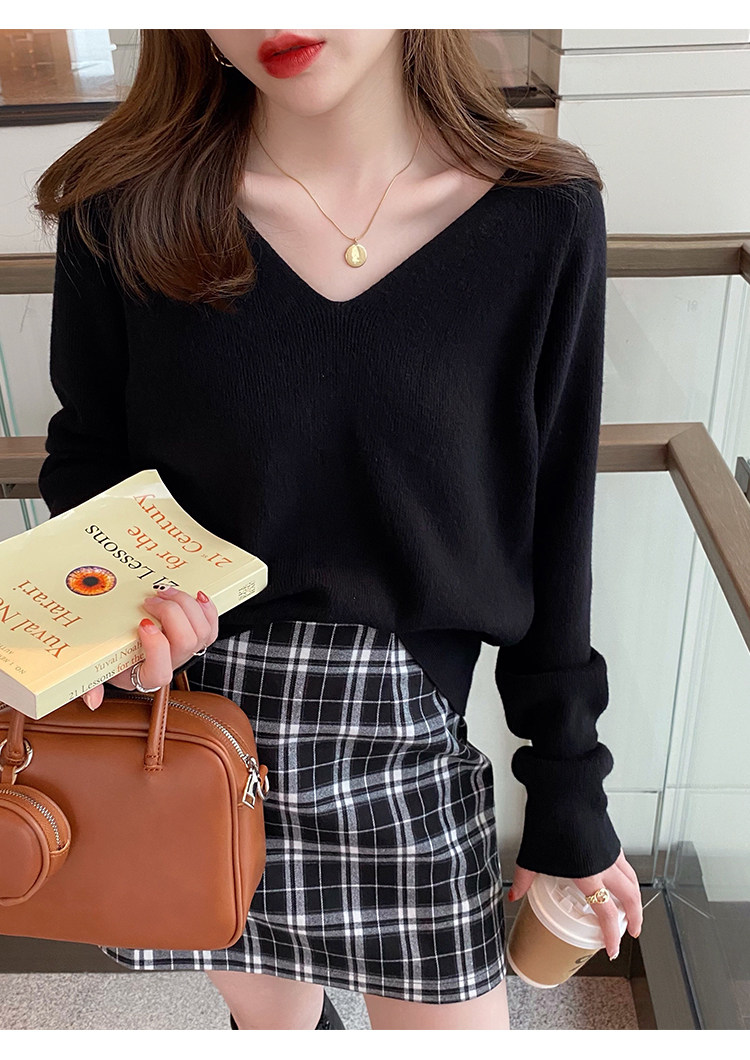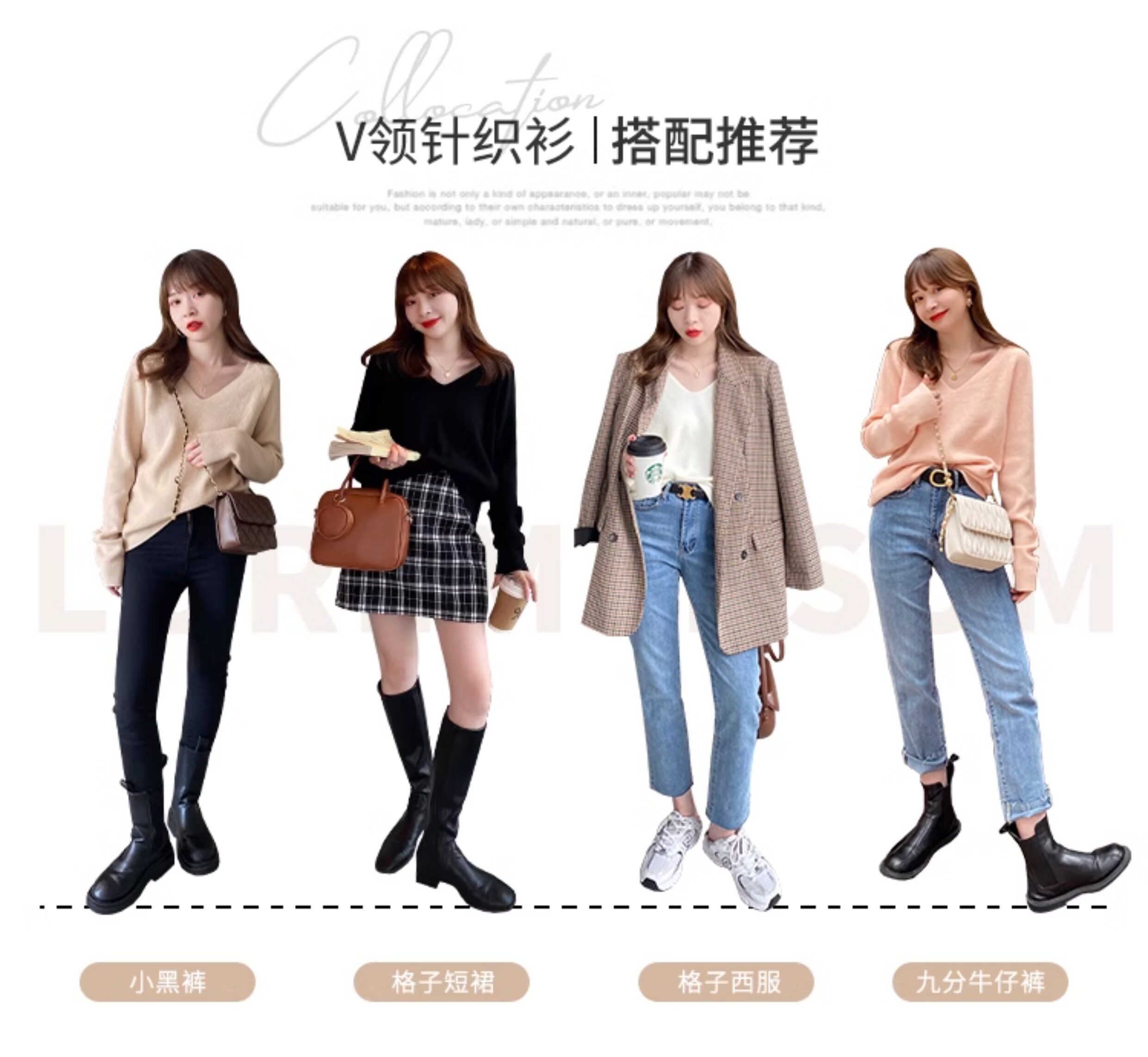 v領毛衣女秋冬高級感寬松針織衫2025新款打底衫內搭早秋黑色上衣