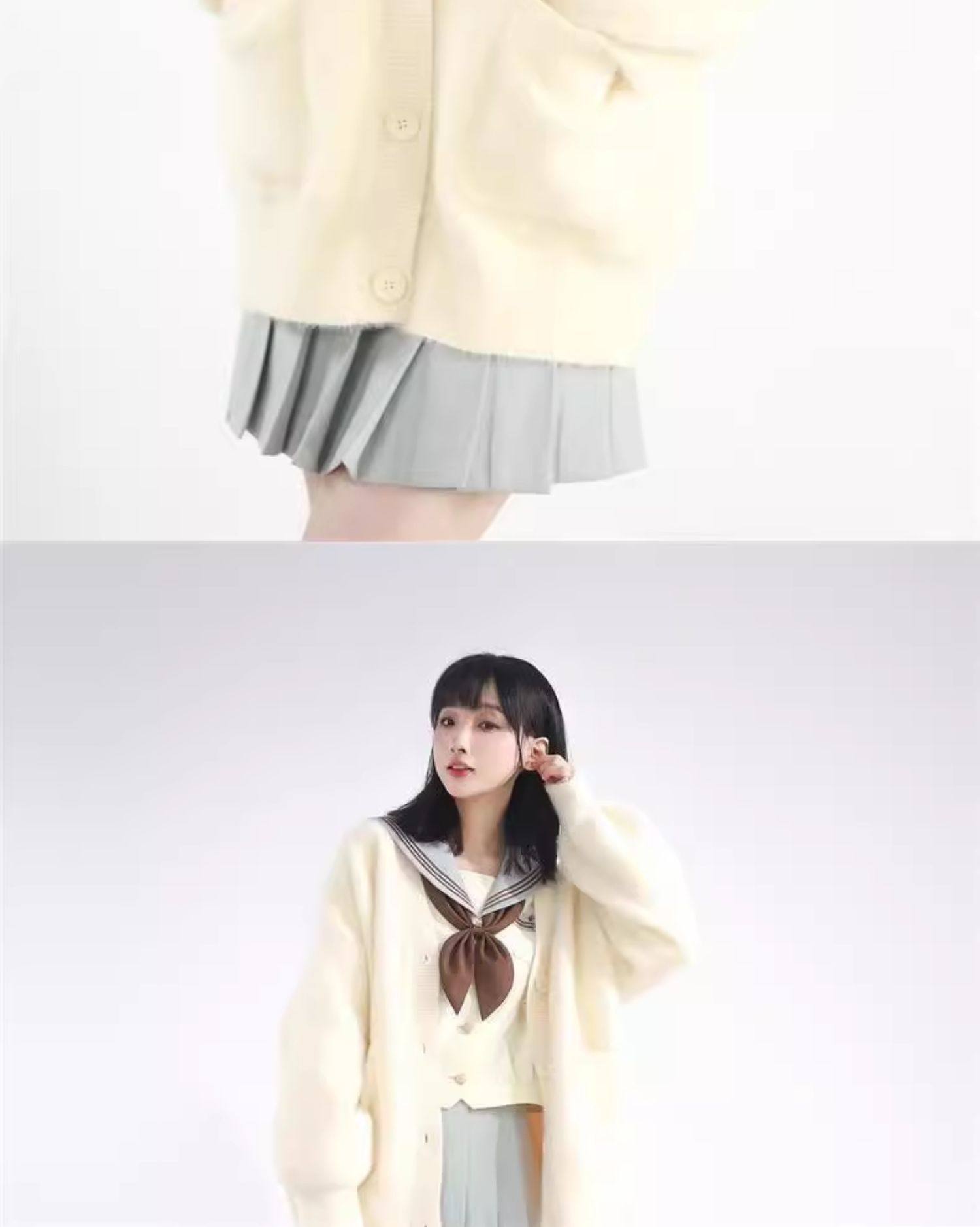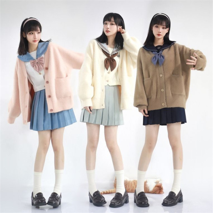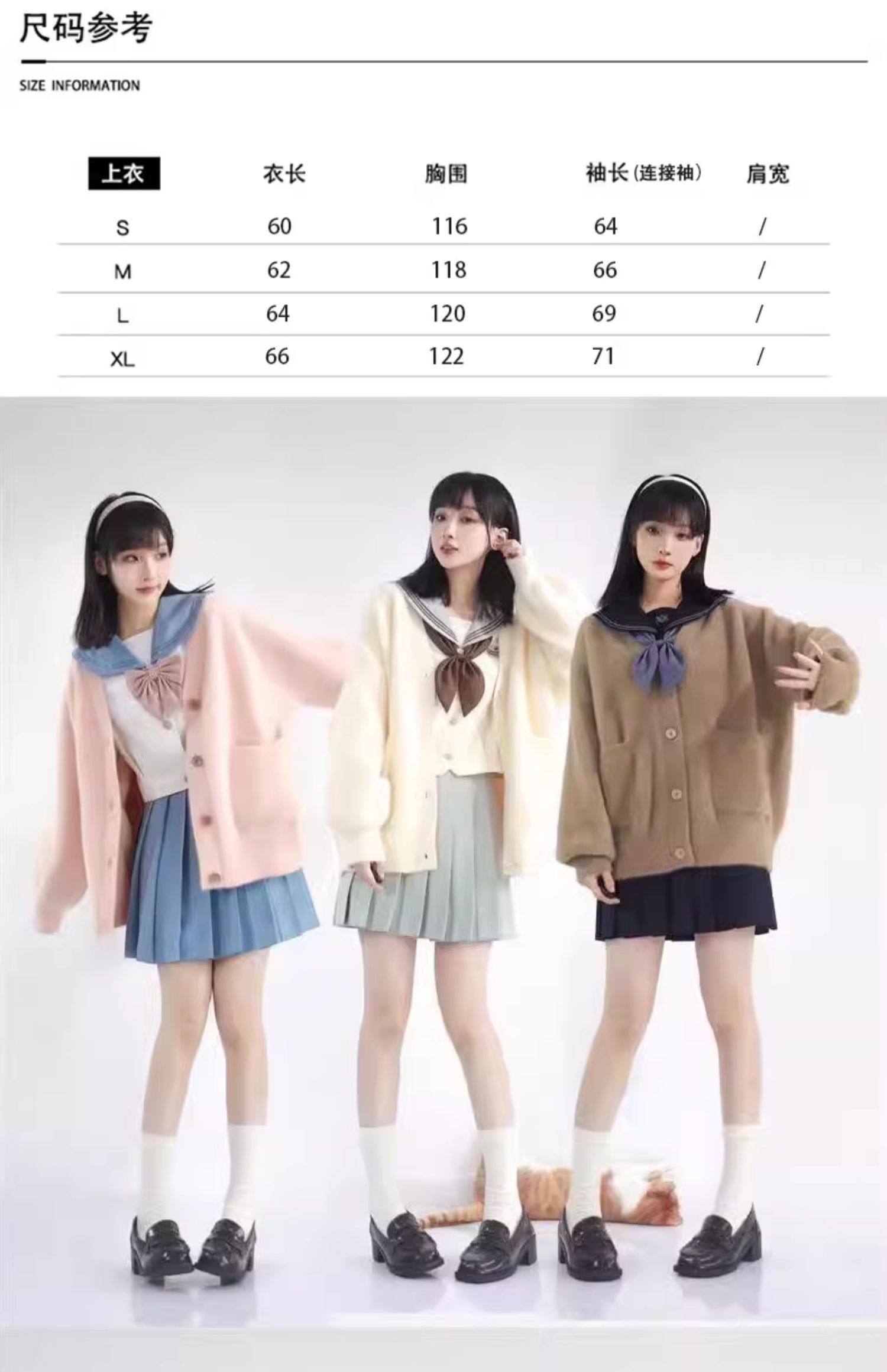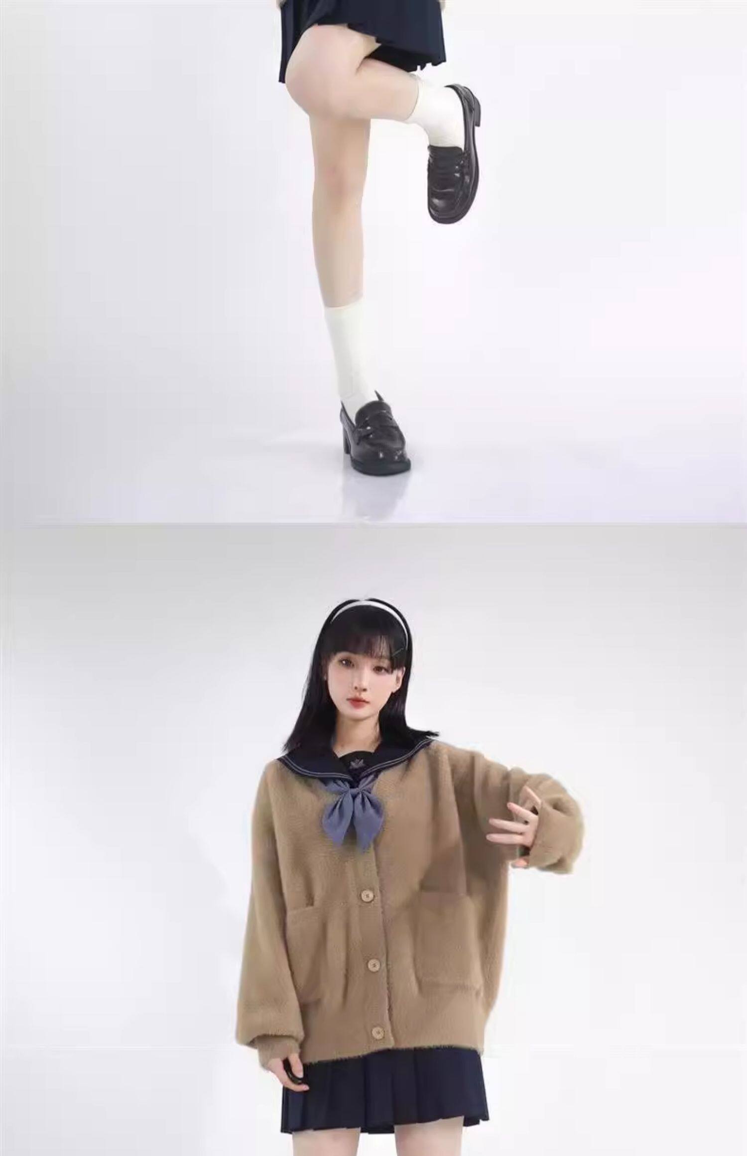 學院風JK製服開衫針織衫女秋冬款寬松百搭長袖外穿仿貂絨毛衣外套