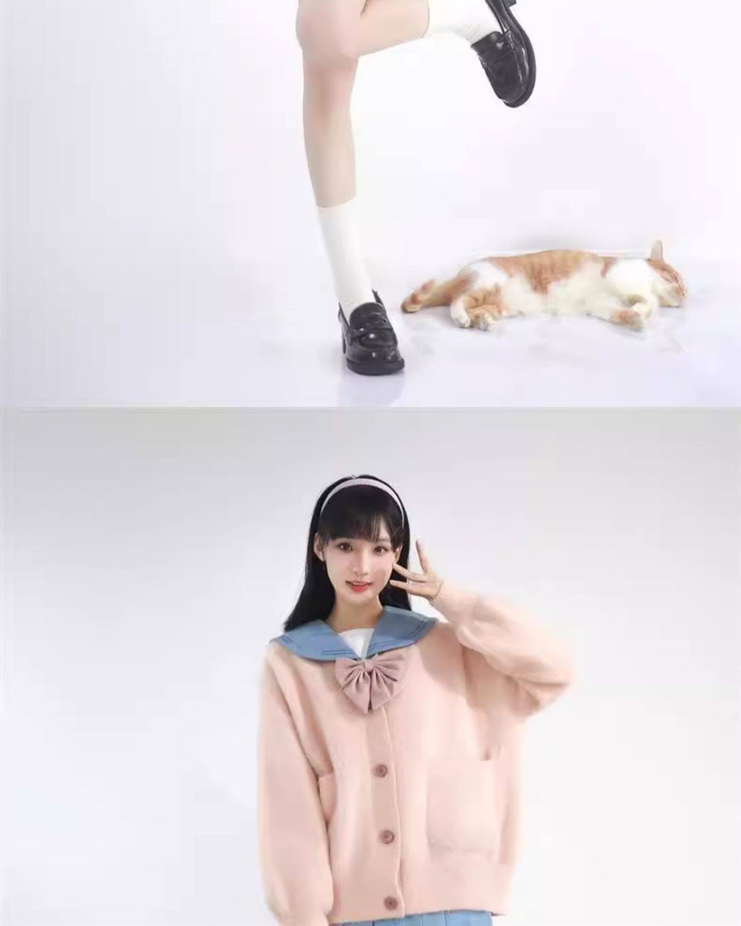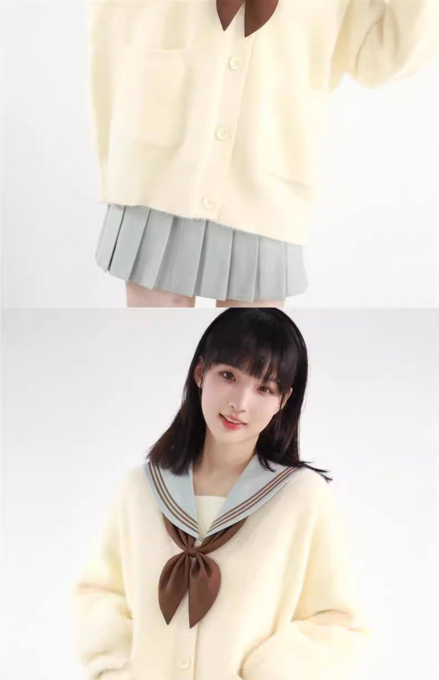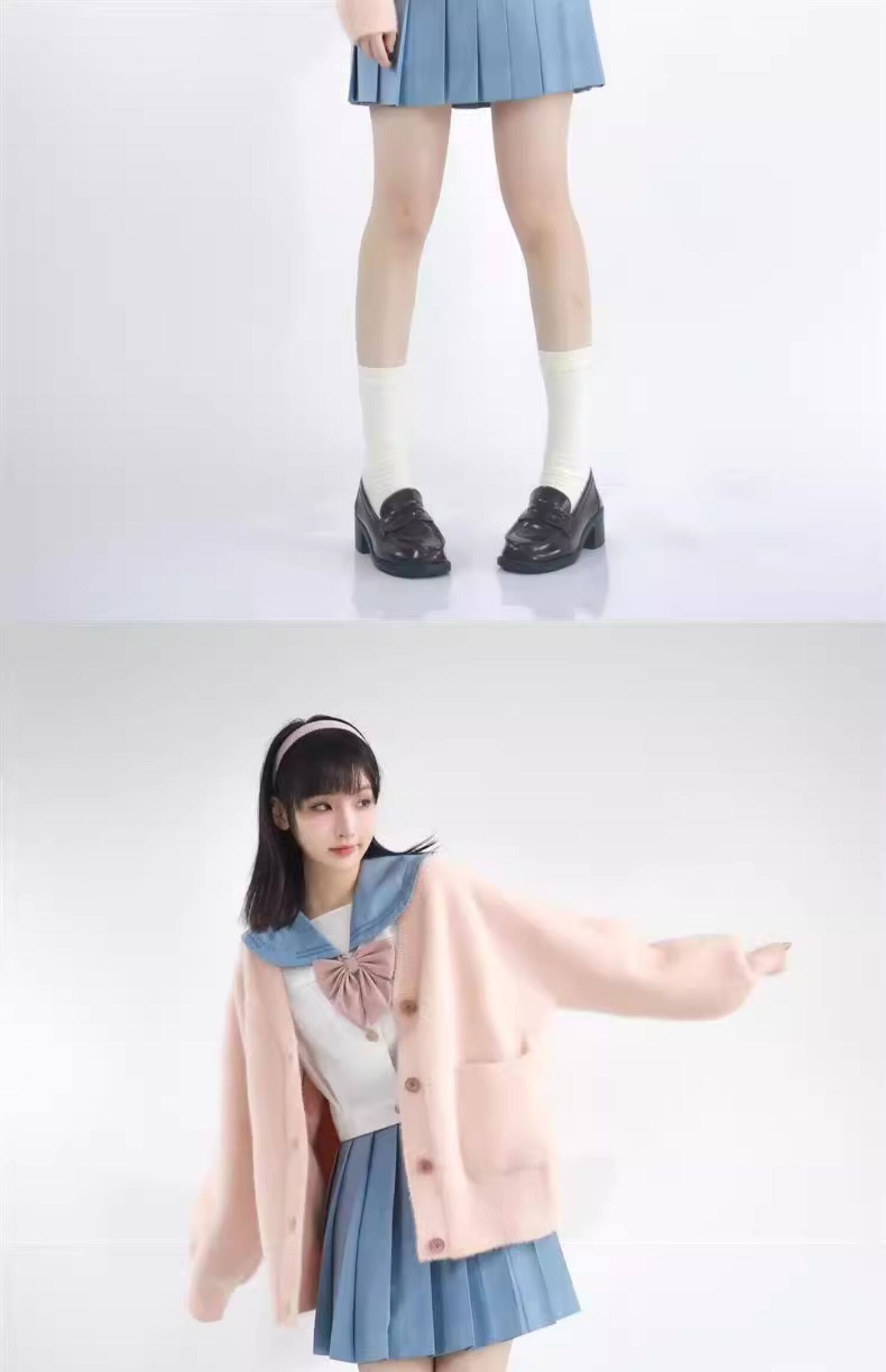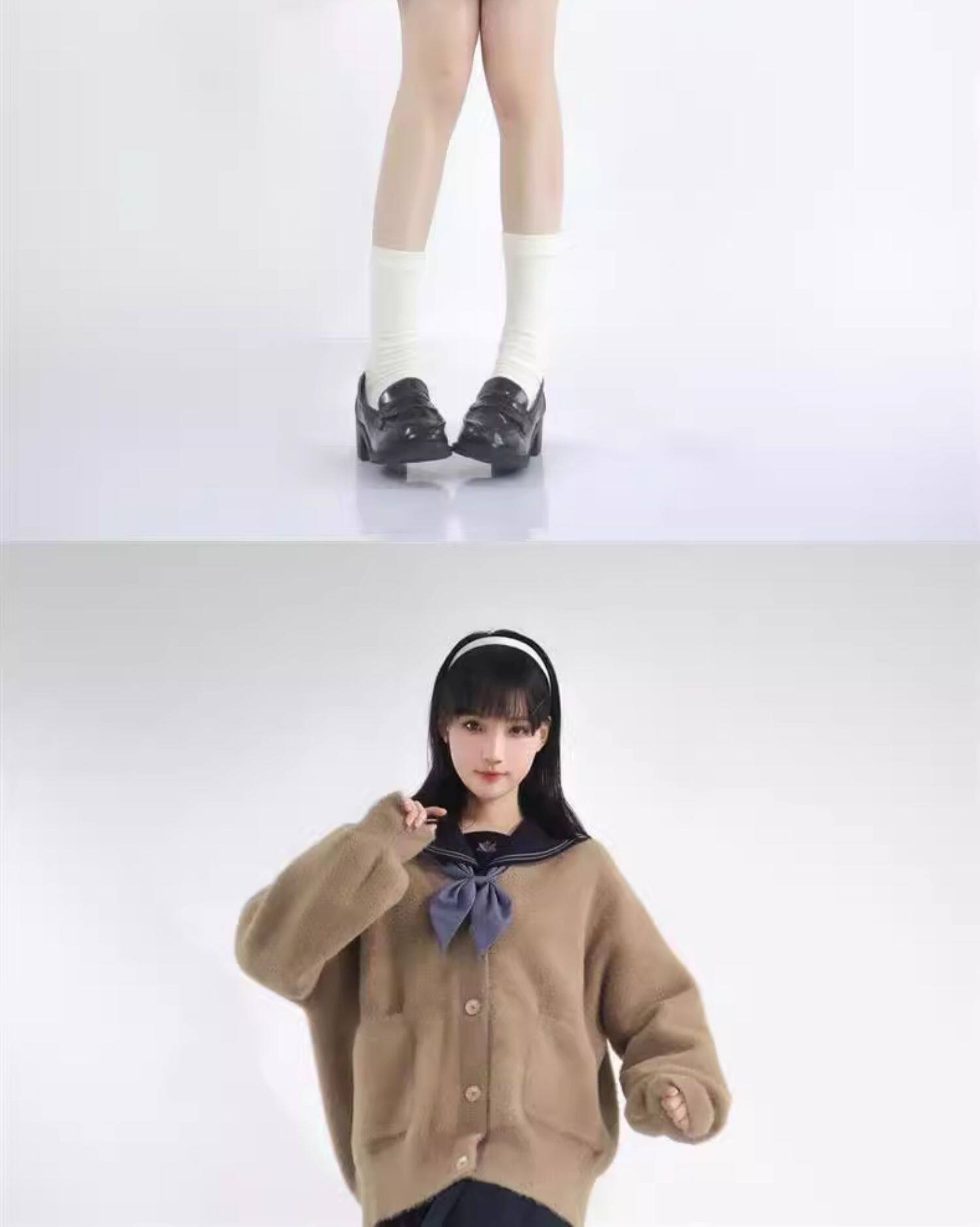 學院風JK製服開衫針織衫女秋冬款寬松百搭長袖外穿仿貂絨毛衣外套