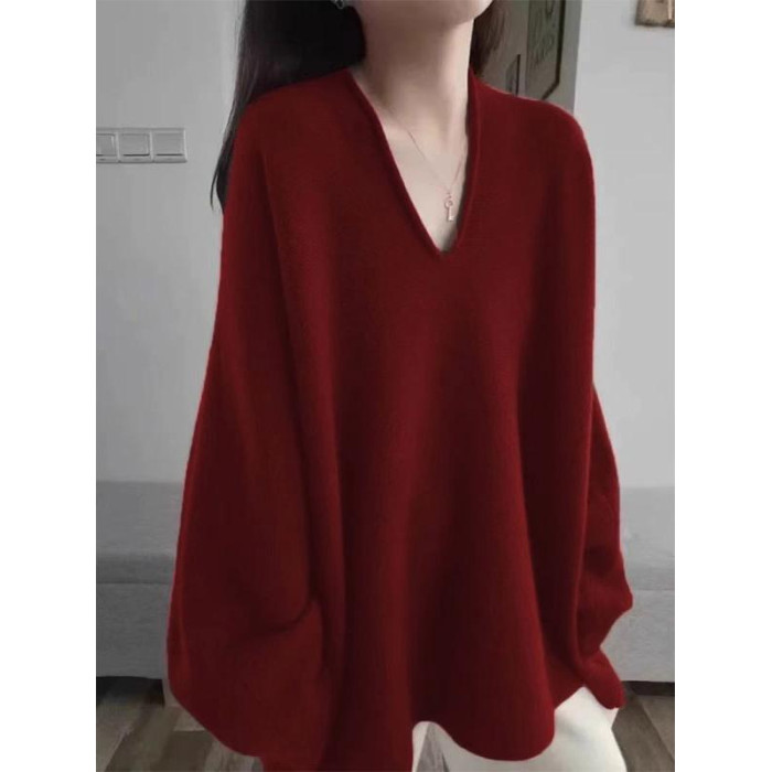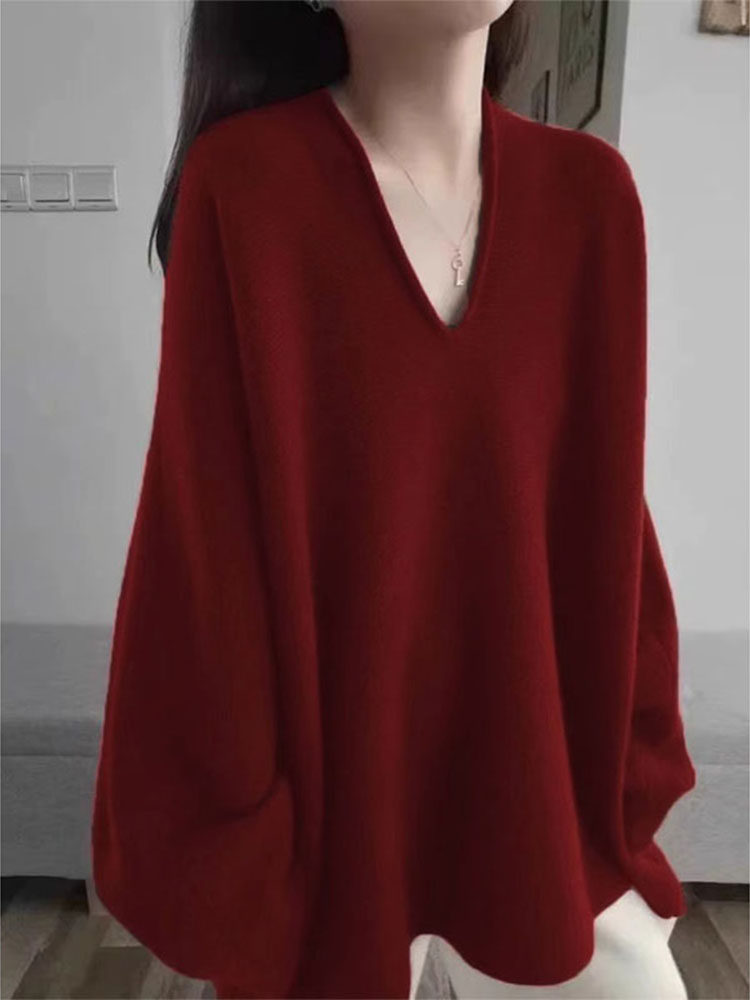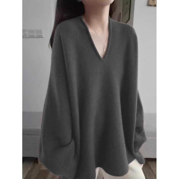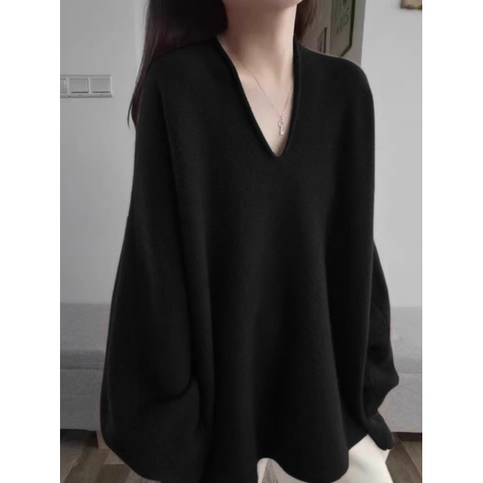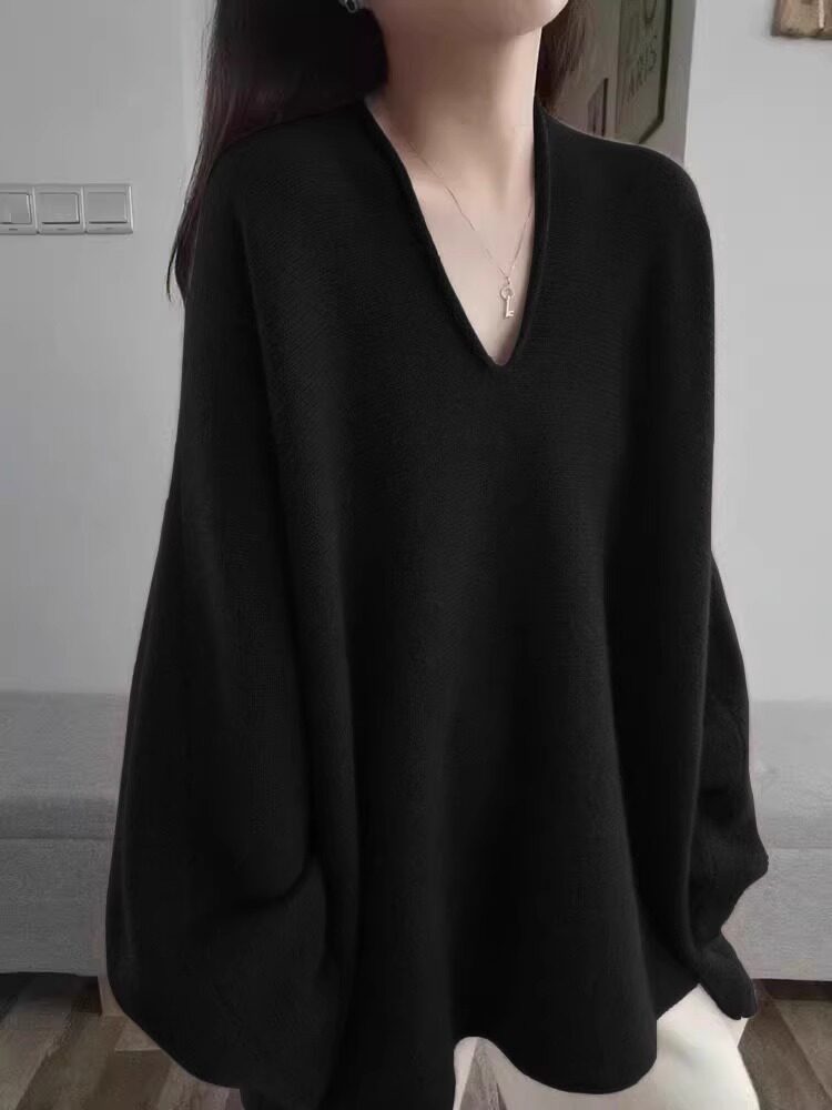 法式黑色V領高級感套頭針織衫毛衣女秋冬季2025新款慵懶寬松上衣