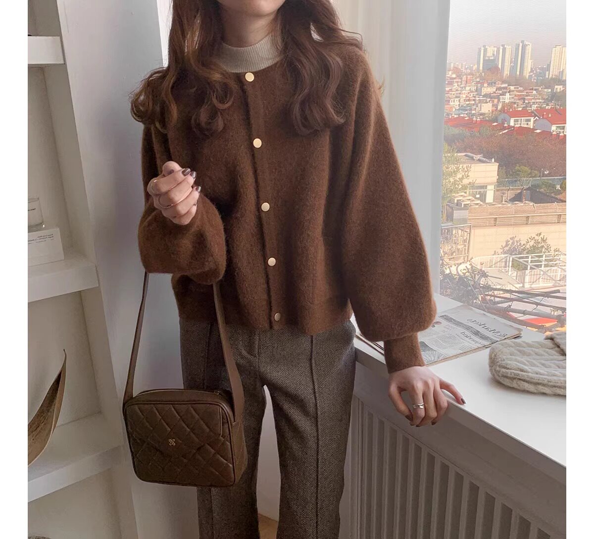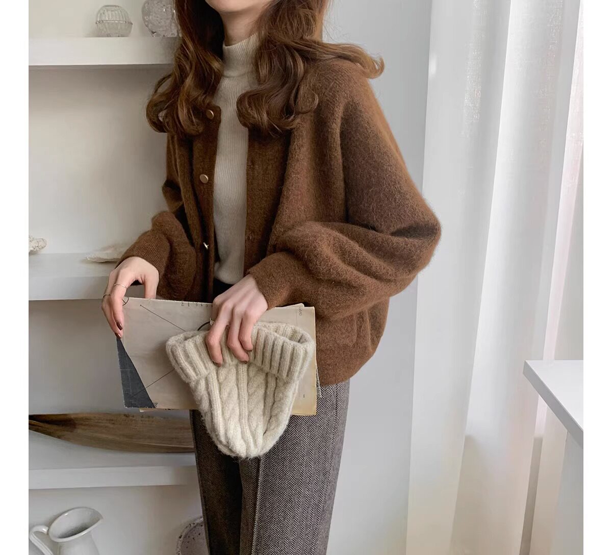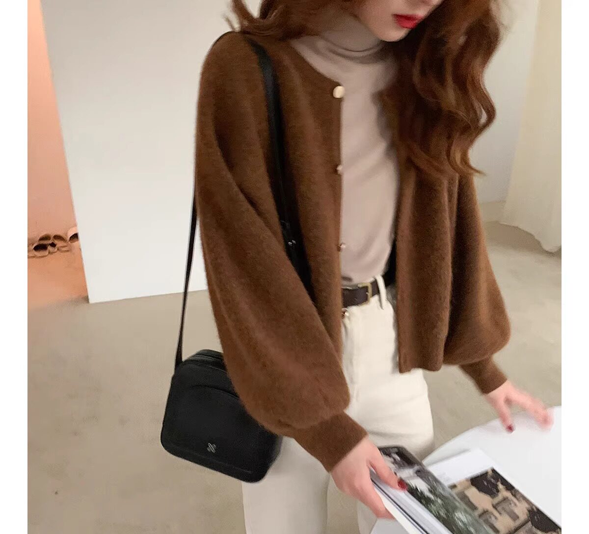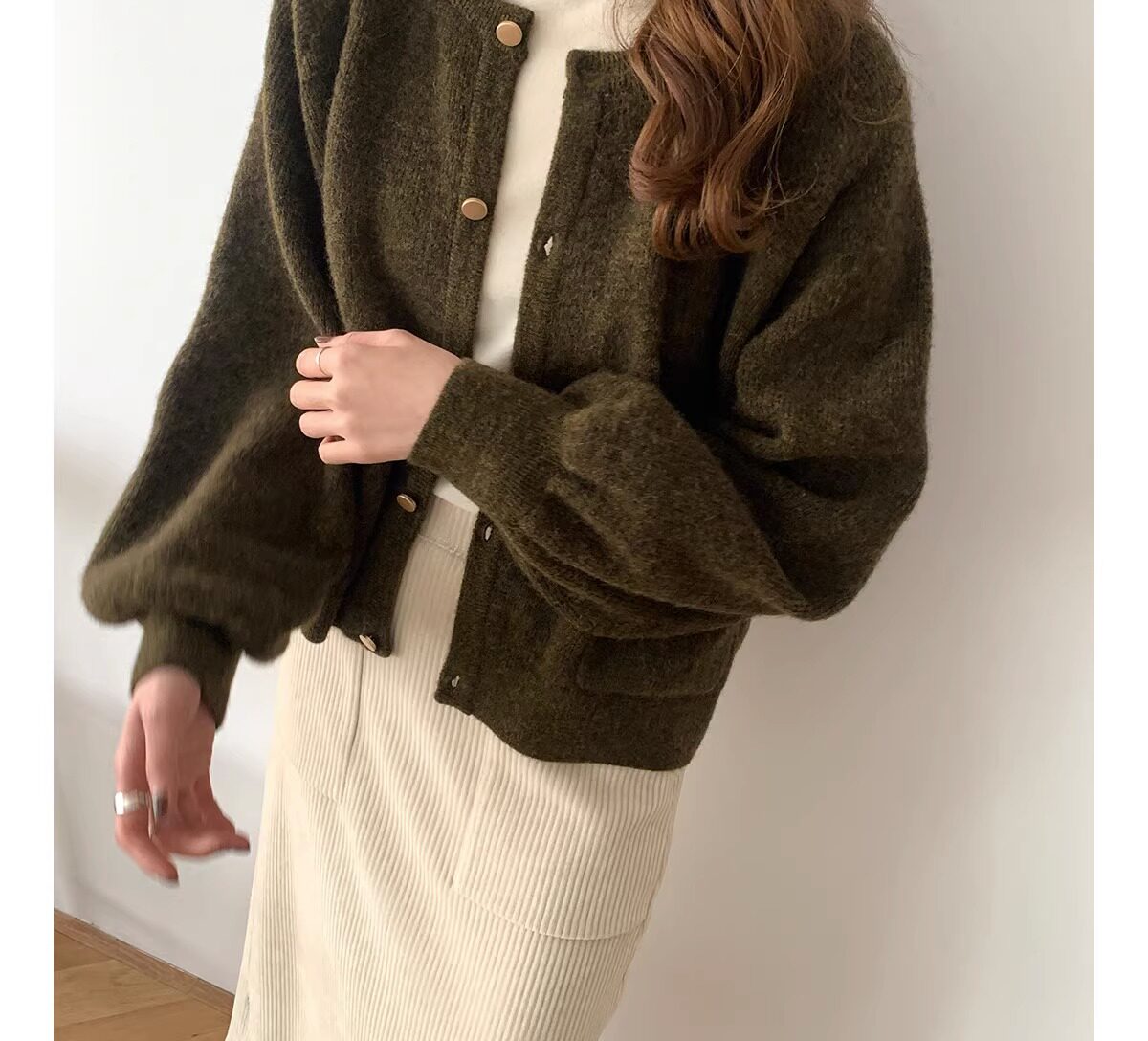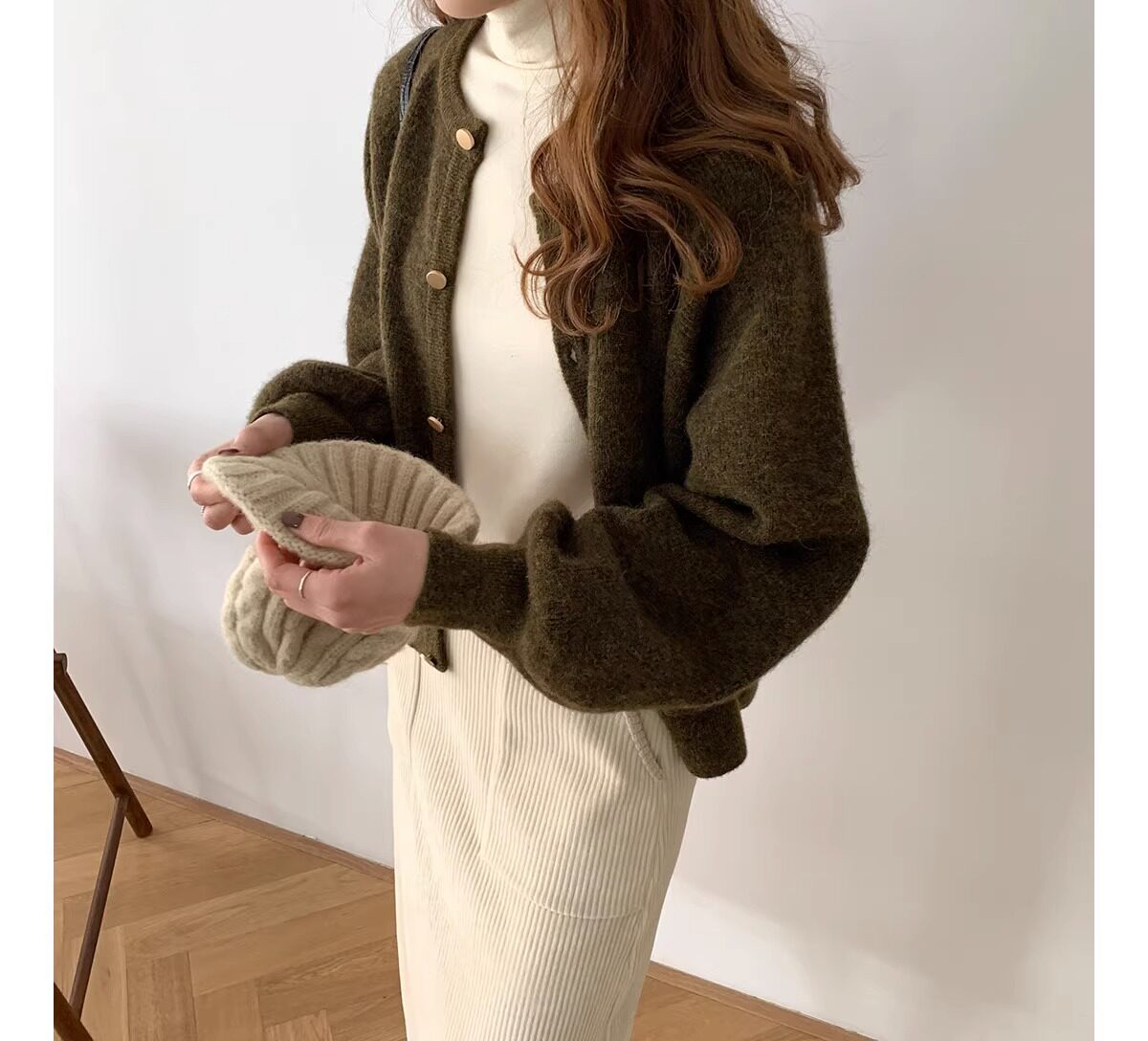 燈籠袖圓領毛衣外套女款秋冬新款日系復古寬松軟糯小香風針織開衫
