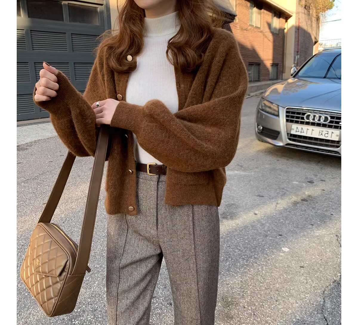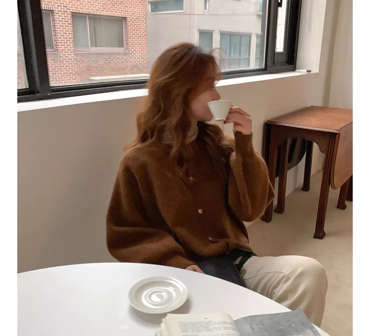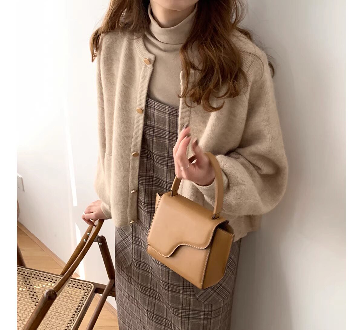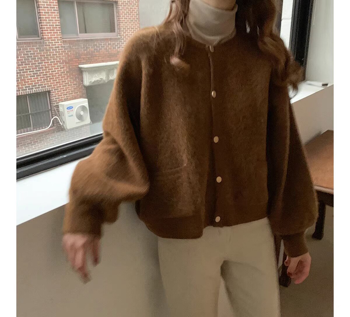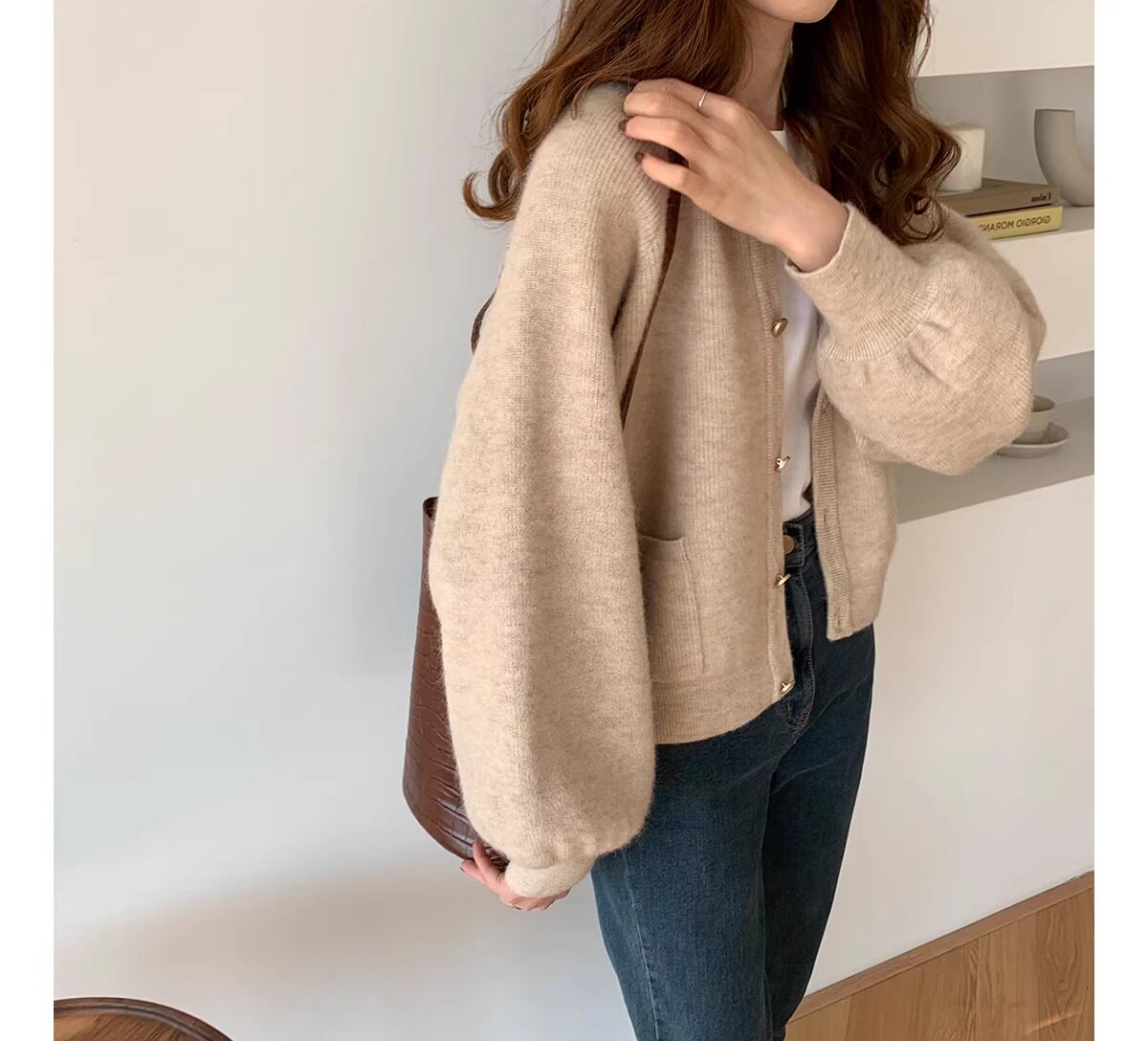燈籠袖圓領毛衣外套女款秋冬新款日系復古寬松軟糯小香風針織開衫