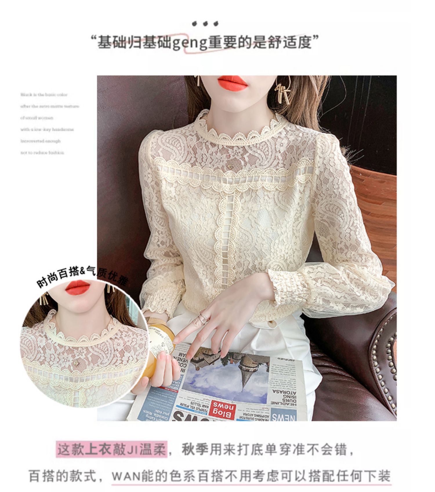 加絨蕾絲打底衫女長袖秋冬季新款高級感大碼女裝百搭上衣氣質小衫