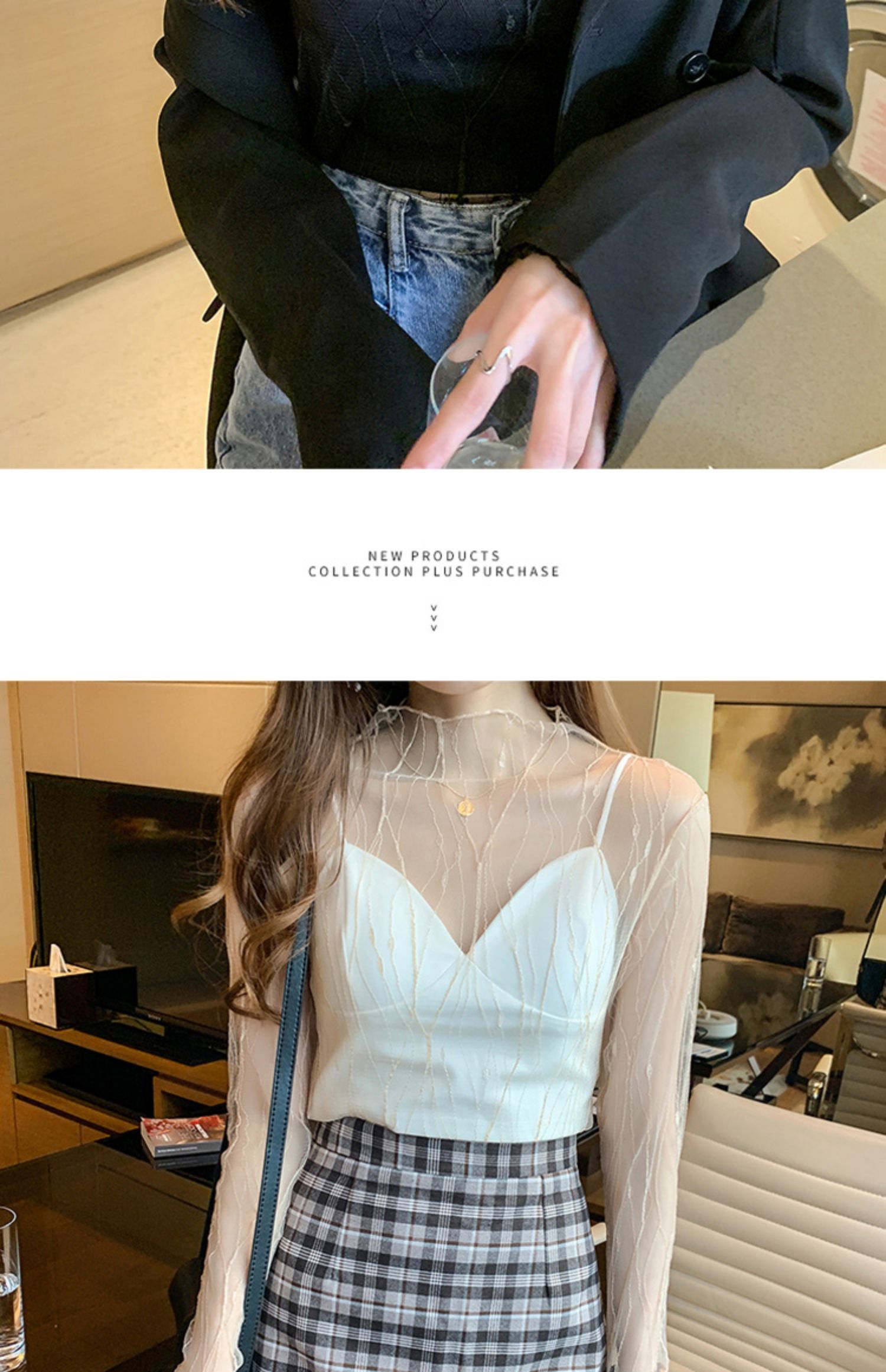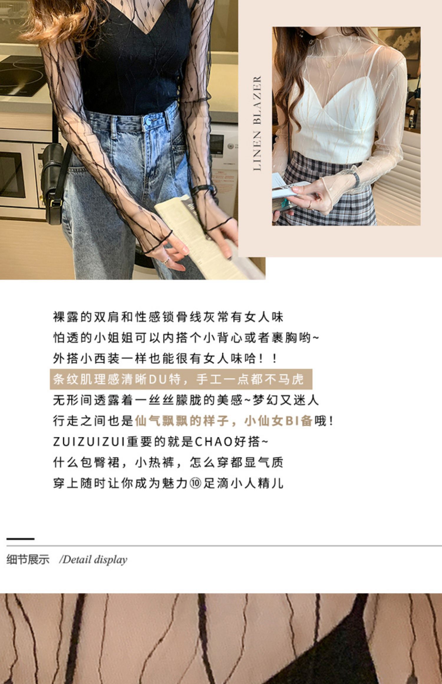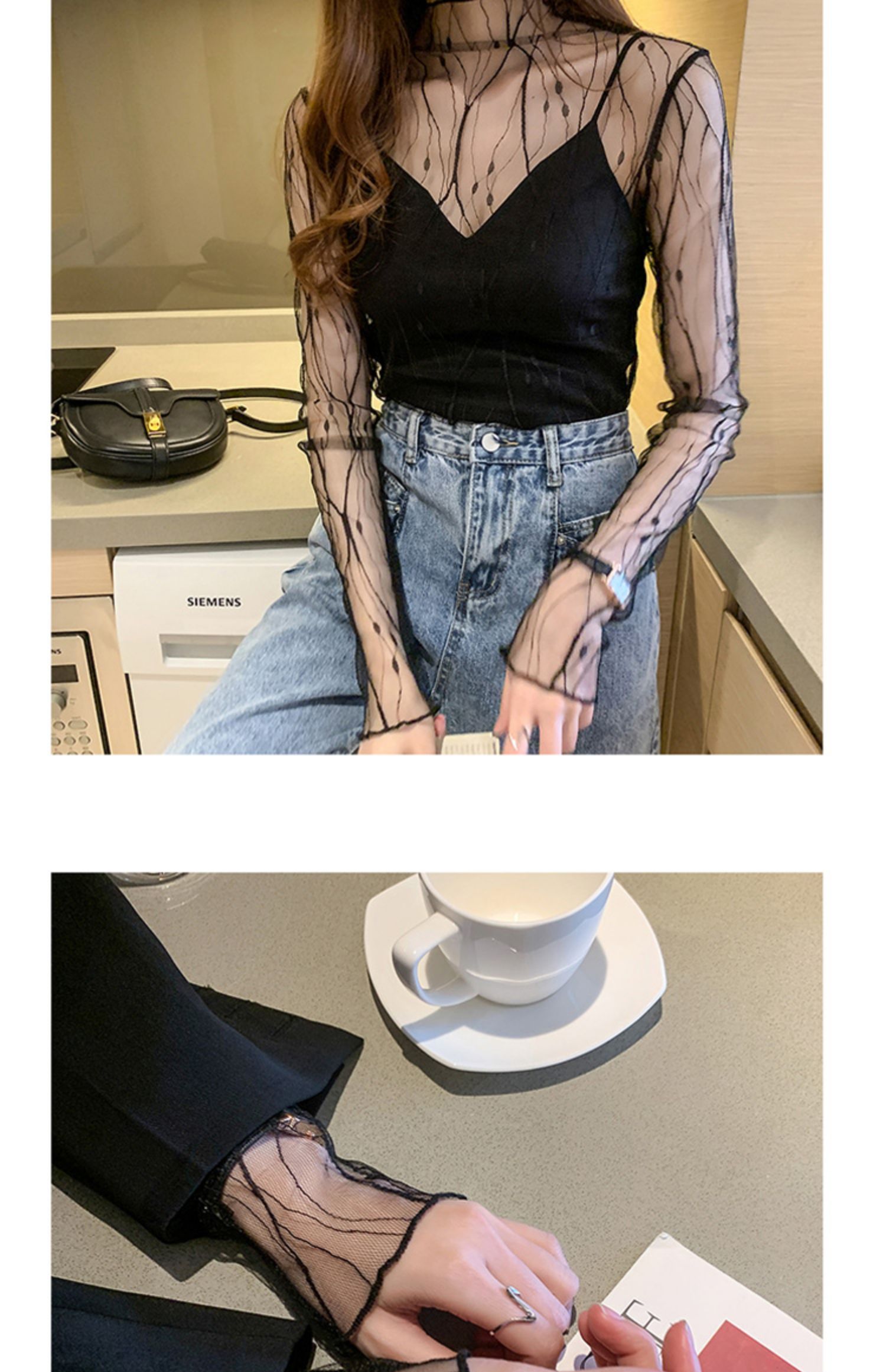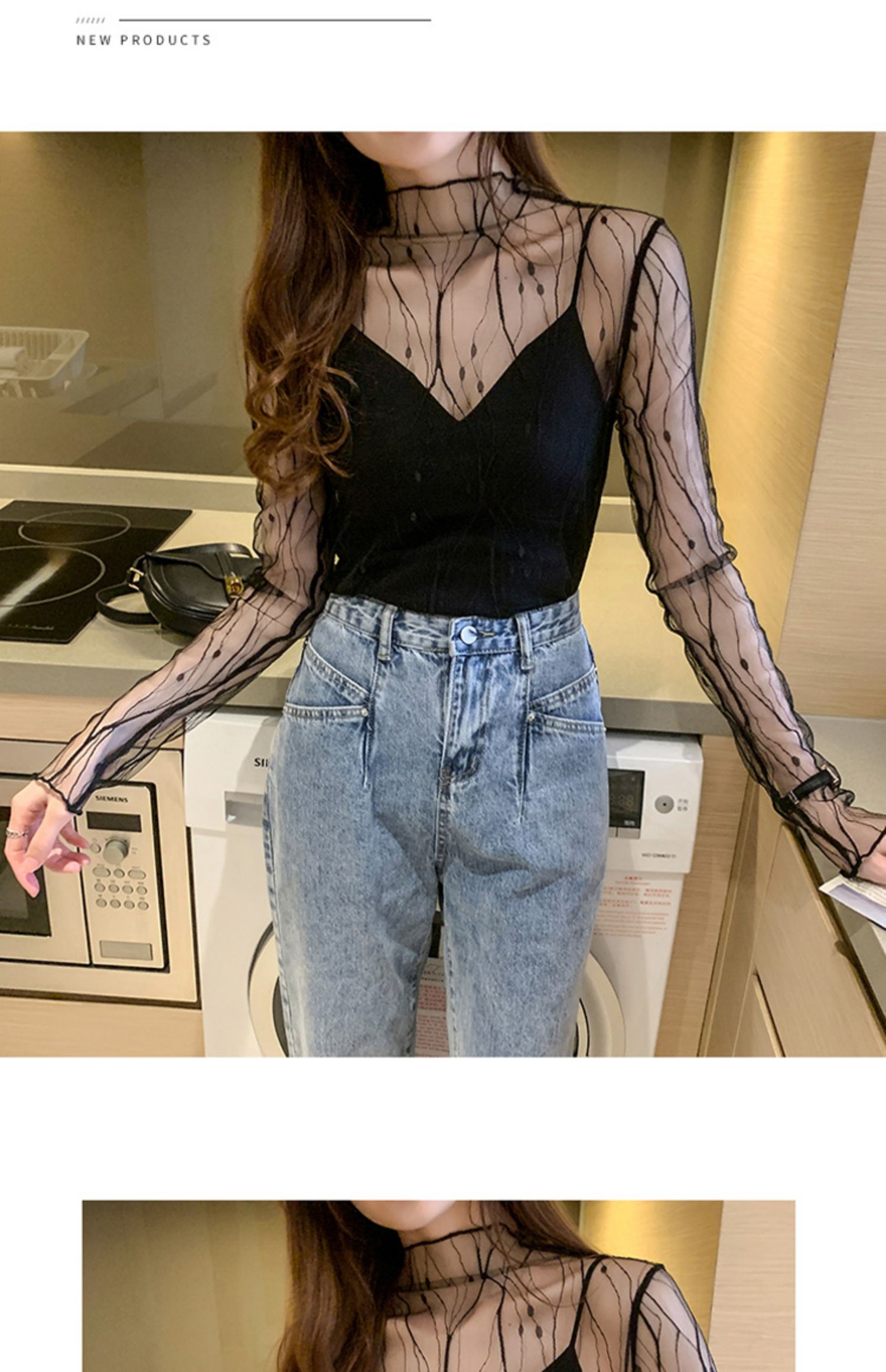 加絨蕾絲打底衫女網紗2024新款長袖高領毛衣內搭紗衣秋季洋氣上衣