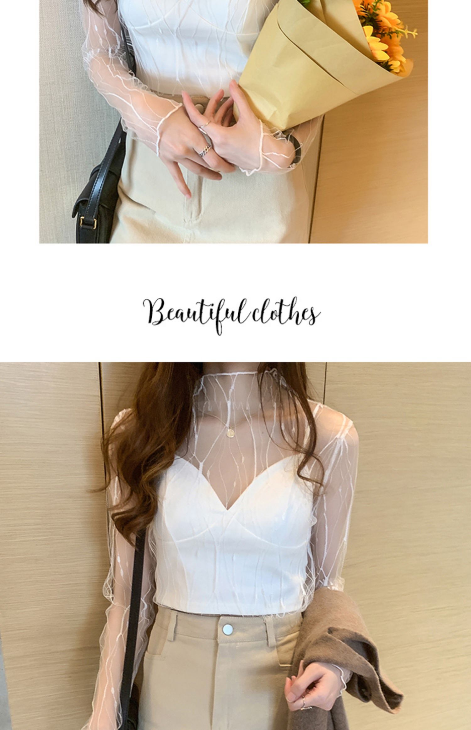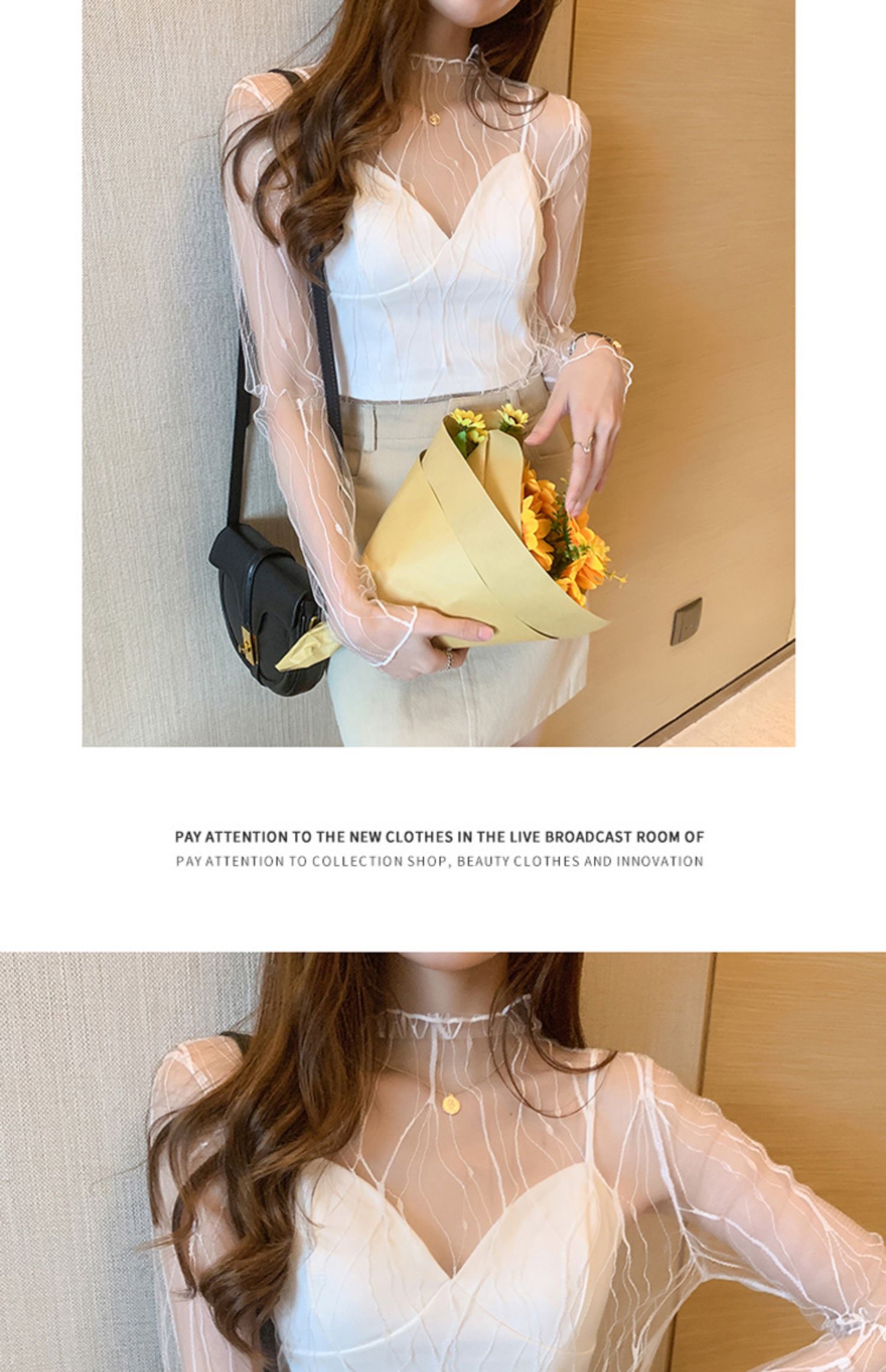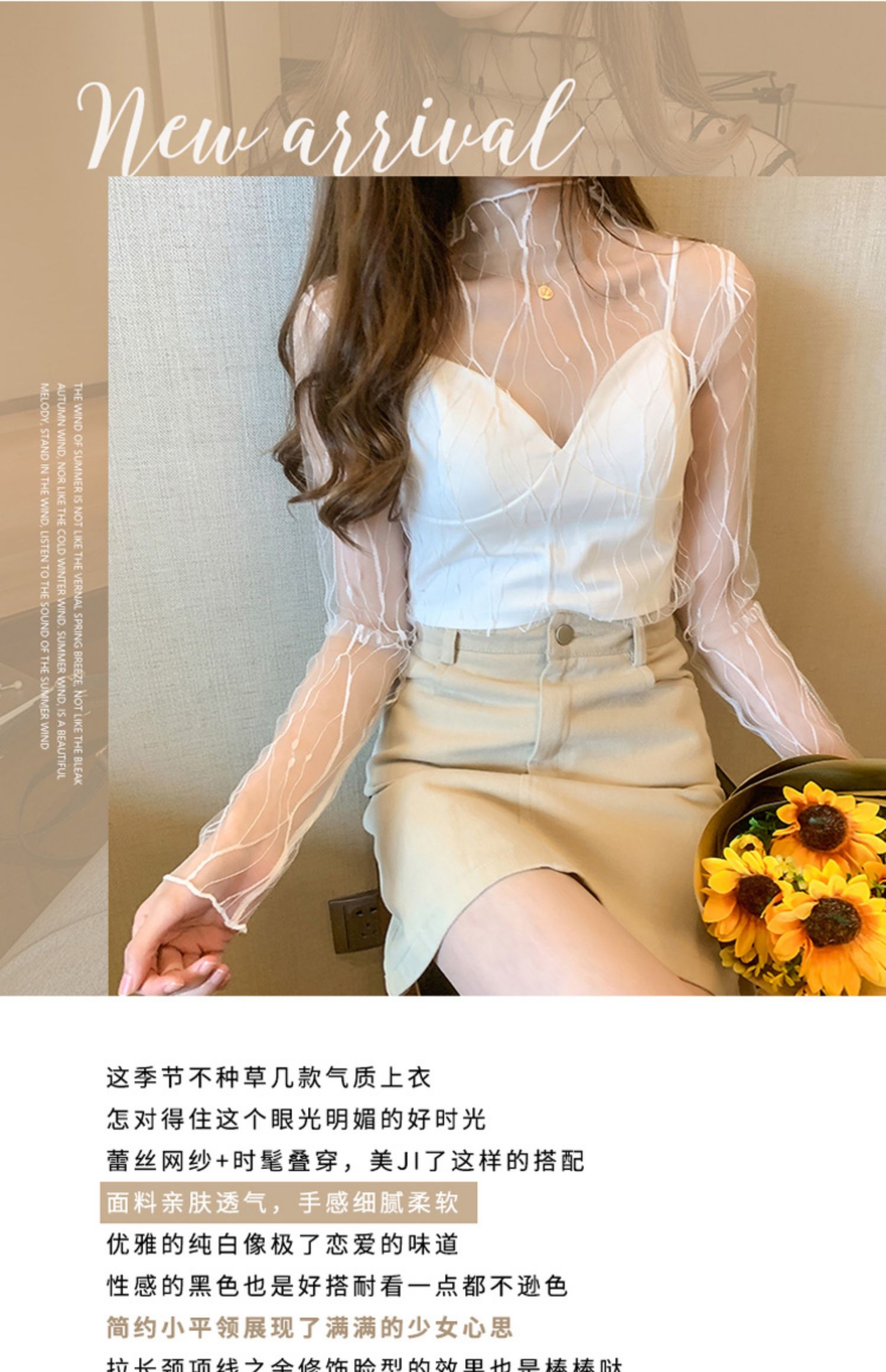 加絨蕾絲打底衫女網紗2024新款長袖高領毛衣內搭紗衣秋季洋氣上衣